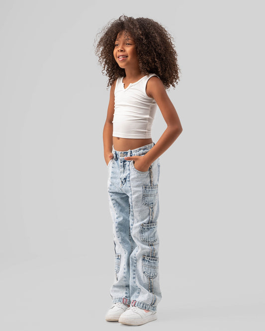 Designed for the active kid, these durable cargo denim pants feature a comfortable, relaxed fit that's perfect for all-day wear. With roomy pockets, this versatile bottoms can handle your little girl's daily adventures with ease.- LE 449.00