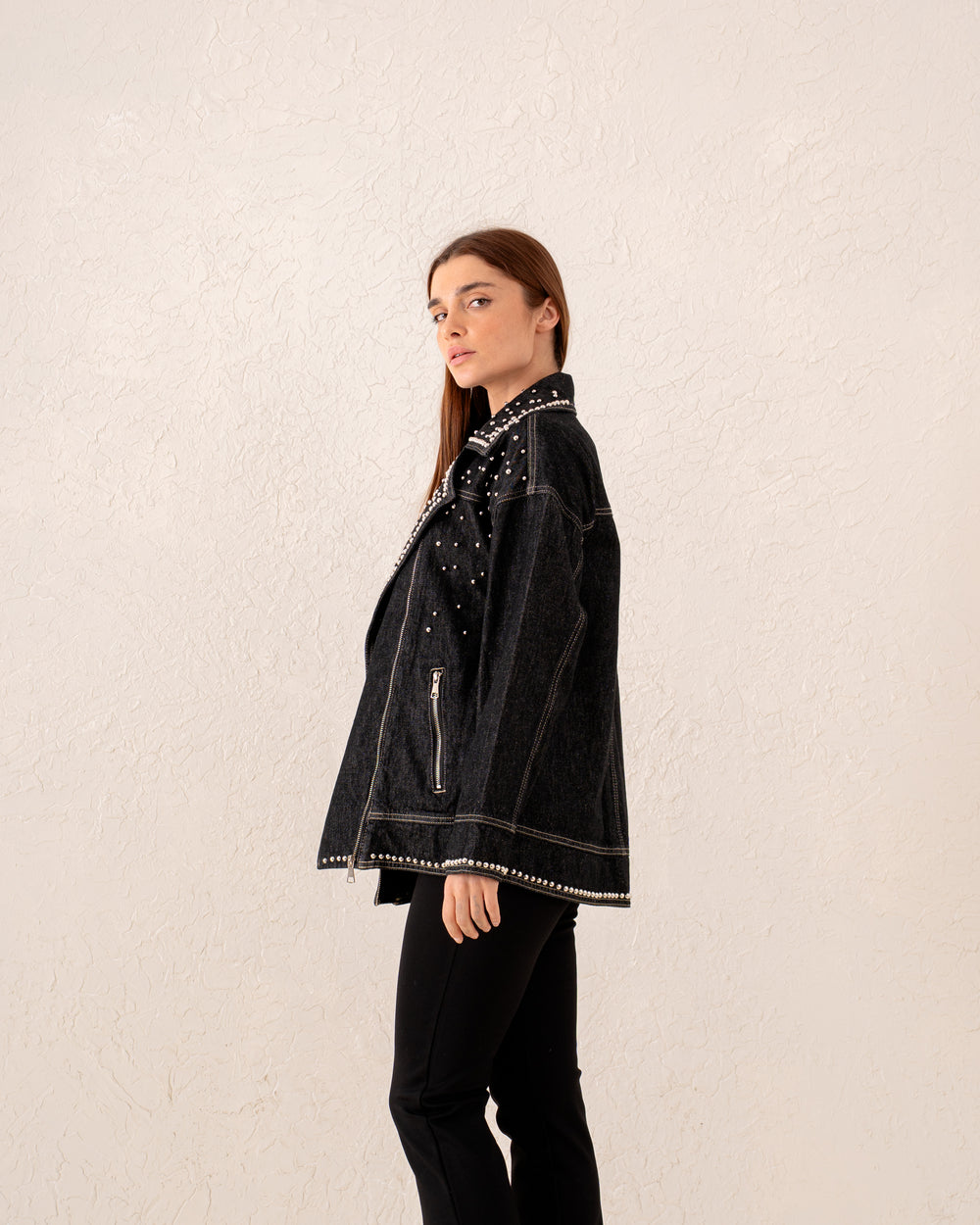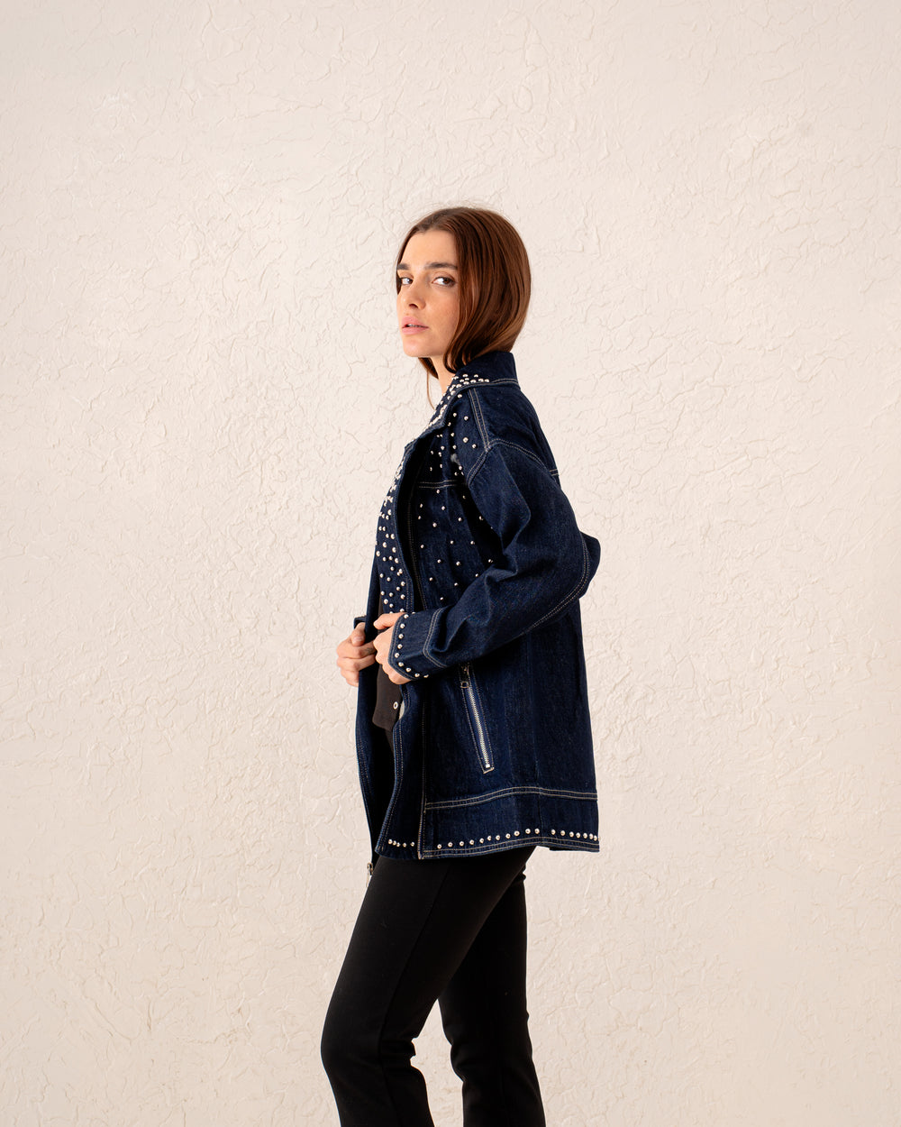 Women studded biker denim Jacket