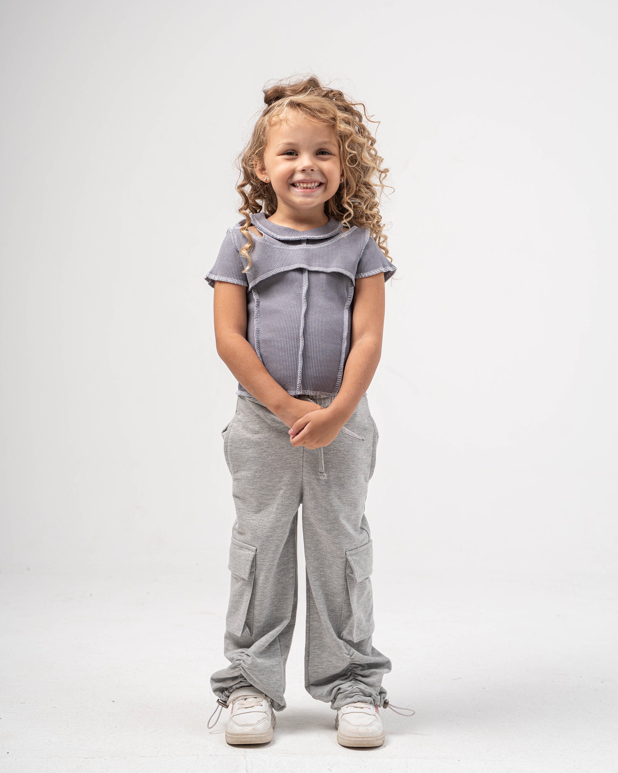 Embrace effortless sophistication with the G Ribbed Two-Piece Contrast Stitch Set in Grey. This coordinated top and bottom combo features a chic contrast stitch detail that adds a modern, elevated touch. The soft, stretchy ribbed fabric and fitted silhouette create a flattering, figure-hugging effect, while the versatile coloration allows you to easily dress this set up or down for any occasion.