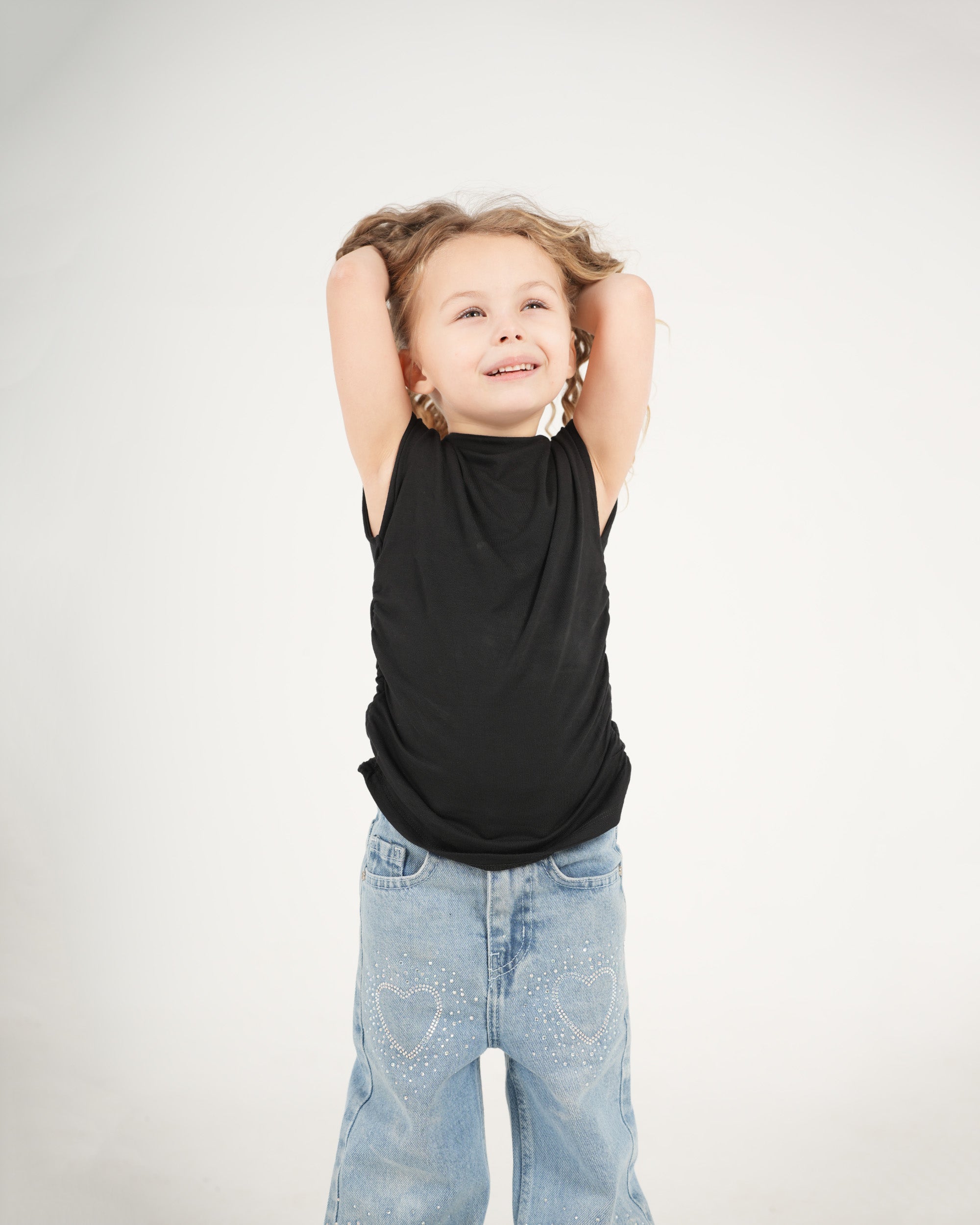 Ditch the basic black! This black top takes a classic and injects it with edgy cool. Ruching on the sides sculpts your figure while adding a touch of unexpected detail. Dress it up or down - it's your new go-to for effortless style.