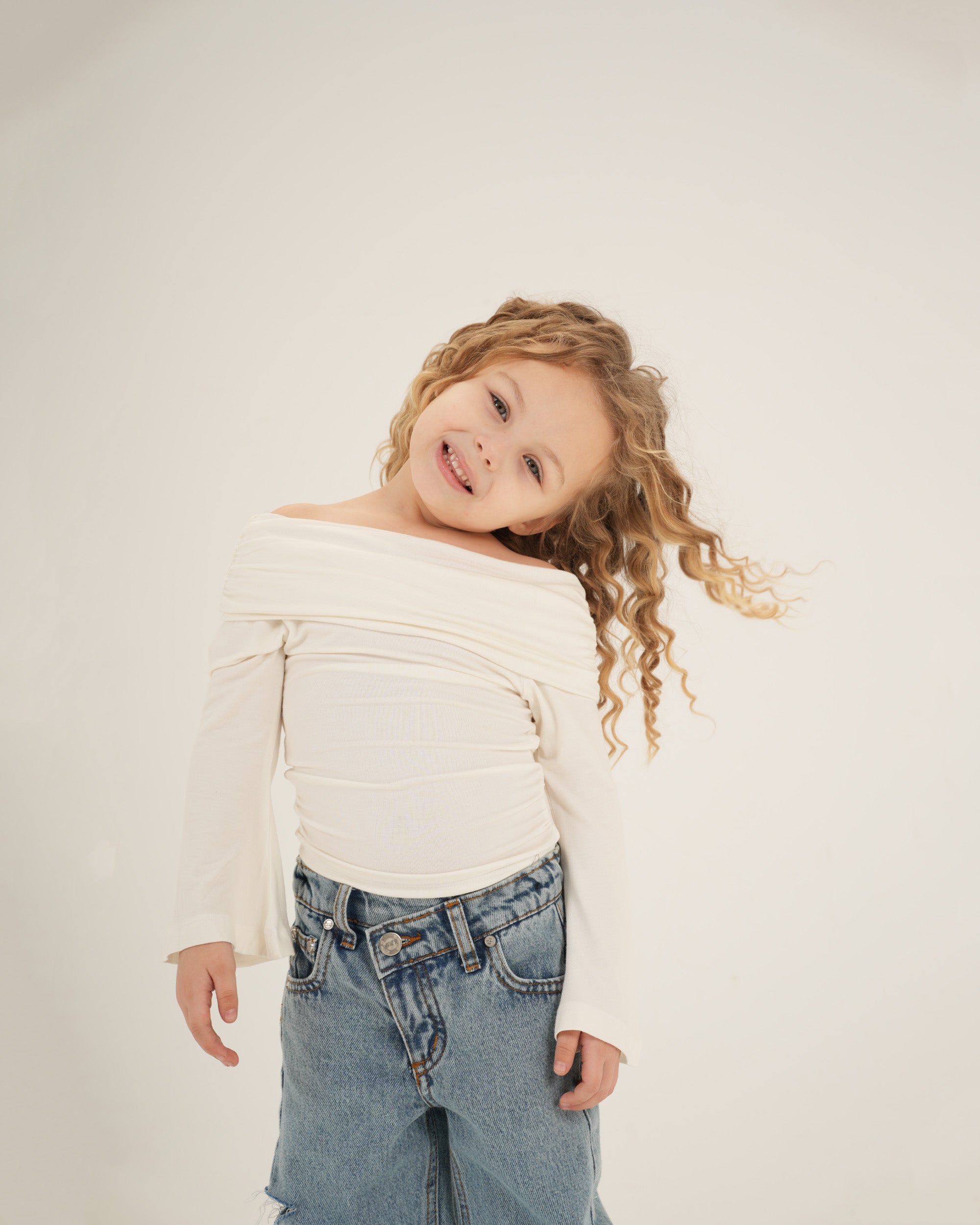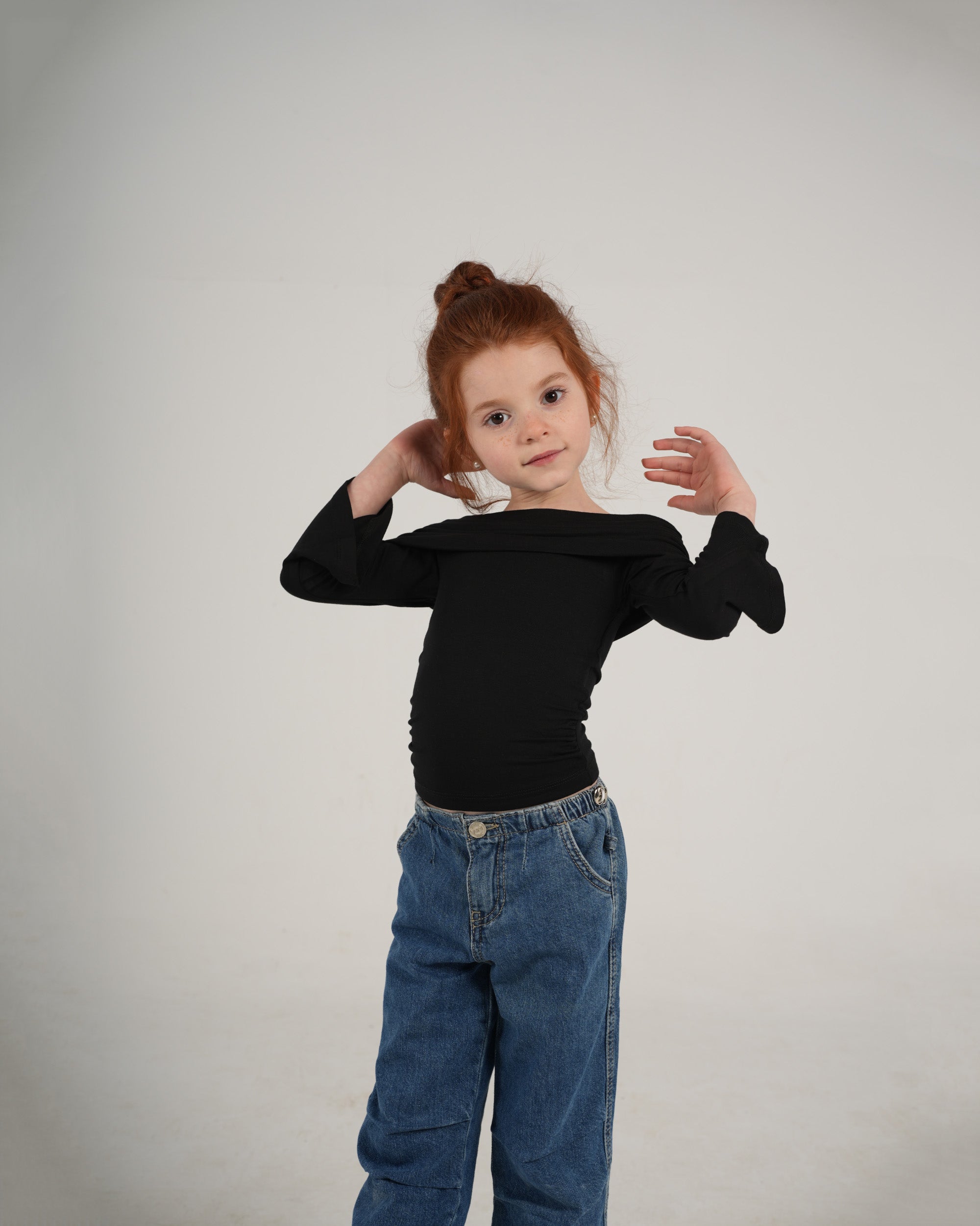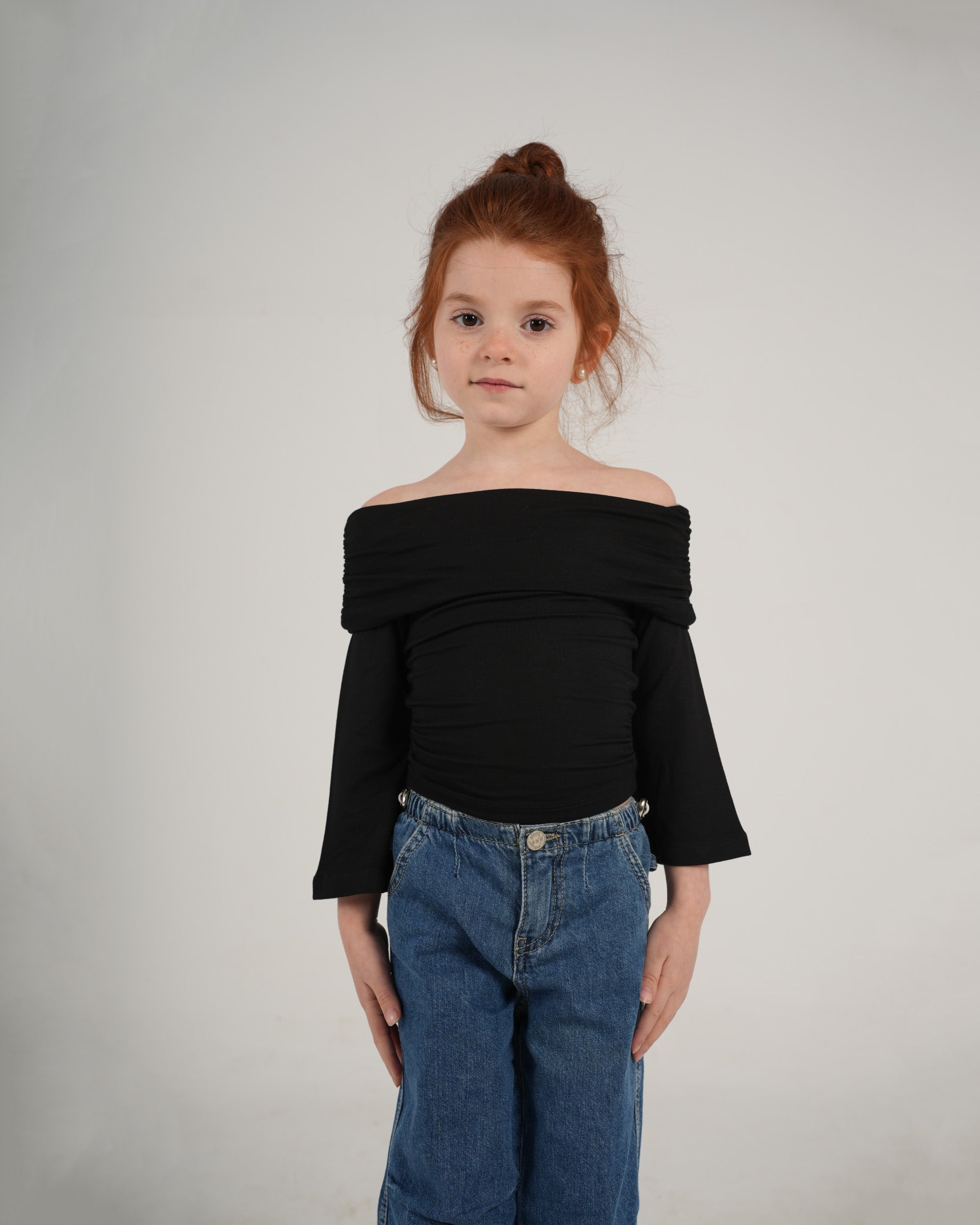 Calling all little trendsetters! The G Black Off-Shoulder Bell Sleeve Top adds a touch of edgy fun to your girl's wardrobe. Soft, breathable fabric keeps her cool and comfy as she twirls the day away. This versatile top lets her rock a casual look with jeans or add a touch of Halloween spirit with a skirt. The off-the-shoulder design keeps things playful, while flowy bell sleeves add a touch of drama, making her feel like a little rockstar ready to conquer any adventure