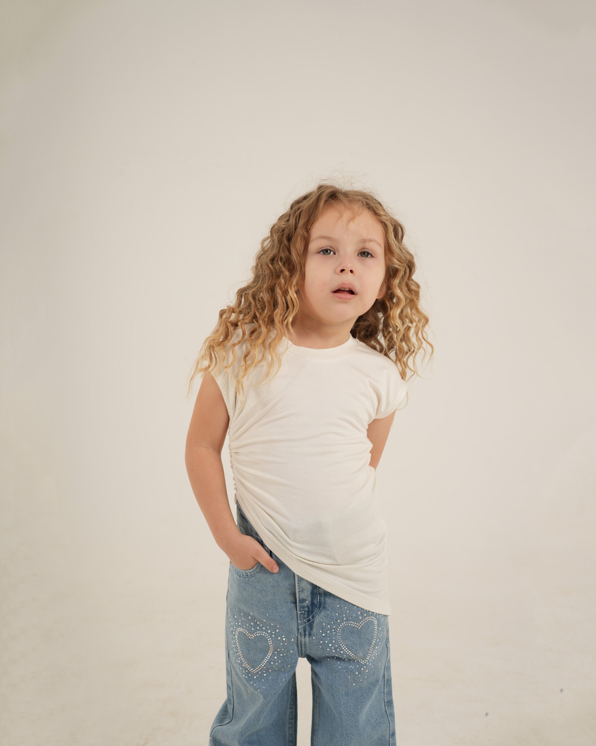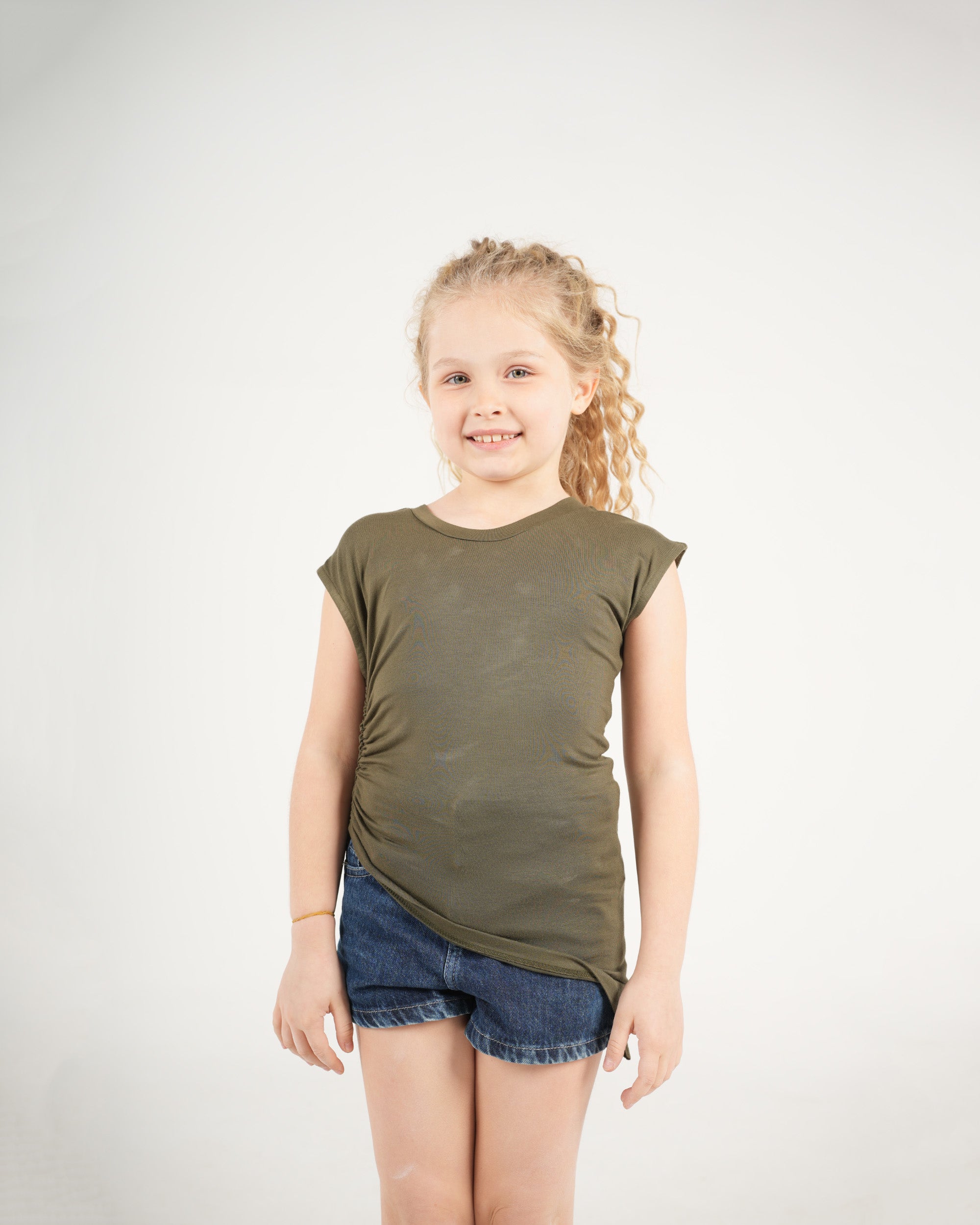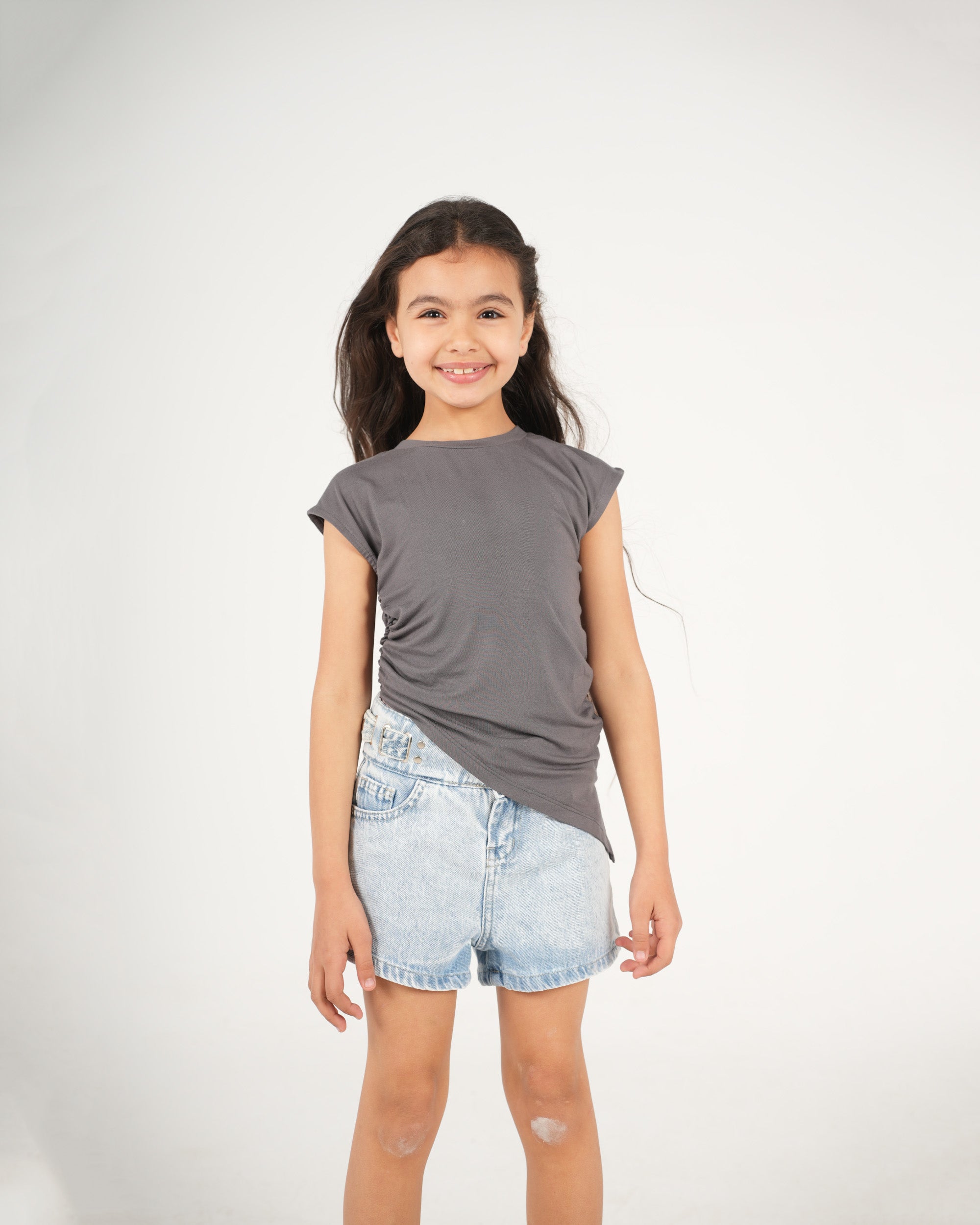 Make a lasting impression in the G Ruched Side Asymmetric Top in Off-White. This eye-catching design features a ruched, asymmetric silhouette that flatters the figure and creates a visually interesting, one-of-a-kind effect. The soft, stretchy material and relaxed fit ensure you'll look and feel your best, whether you're dressing it up for a night out or keeping it casual for a day of errands.