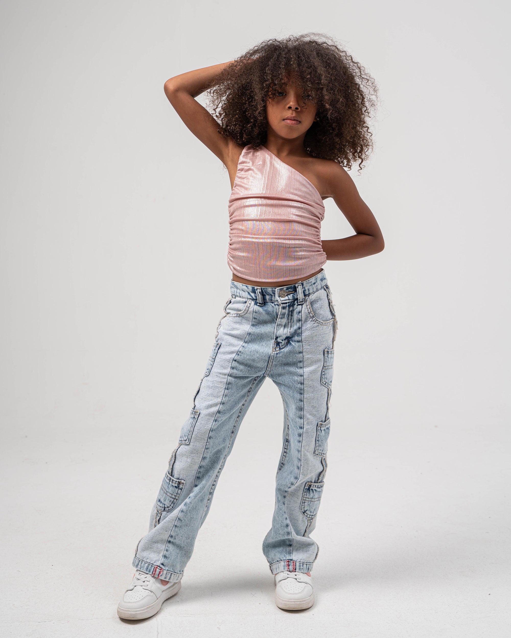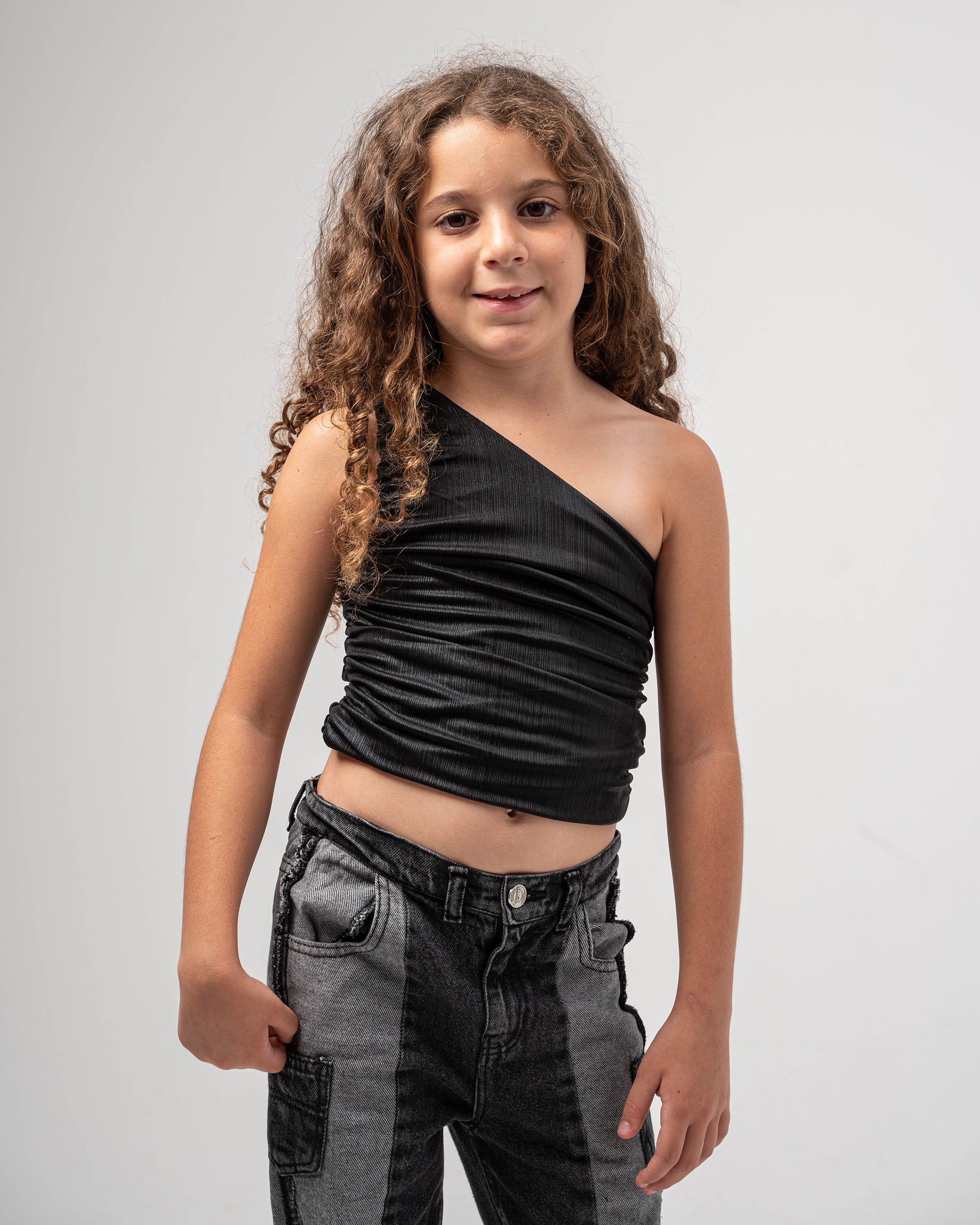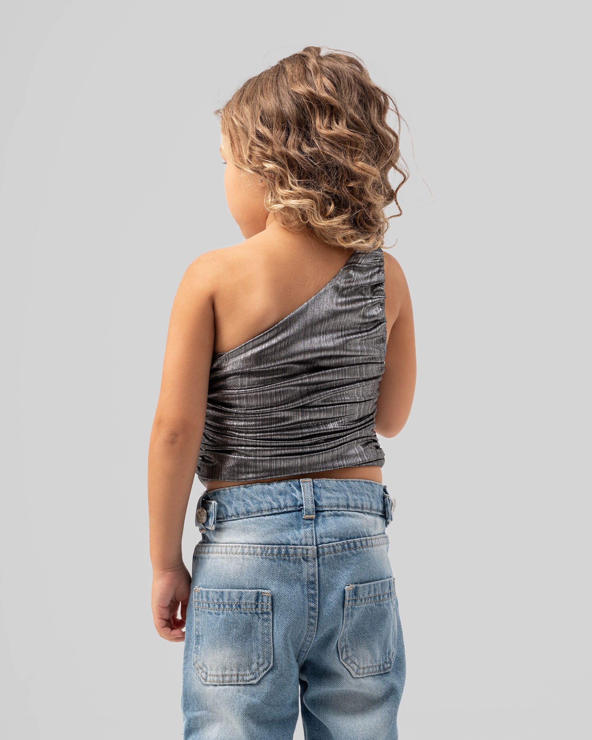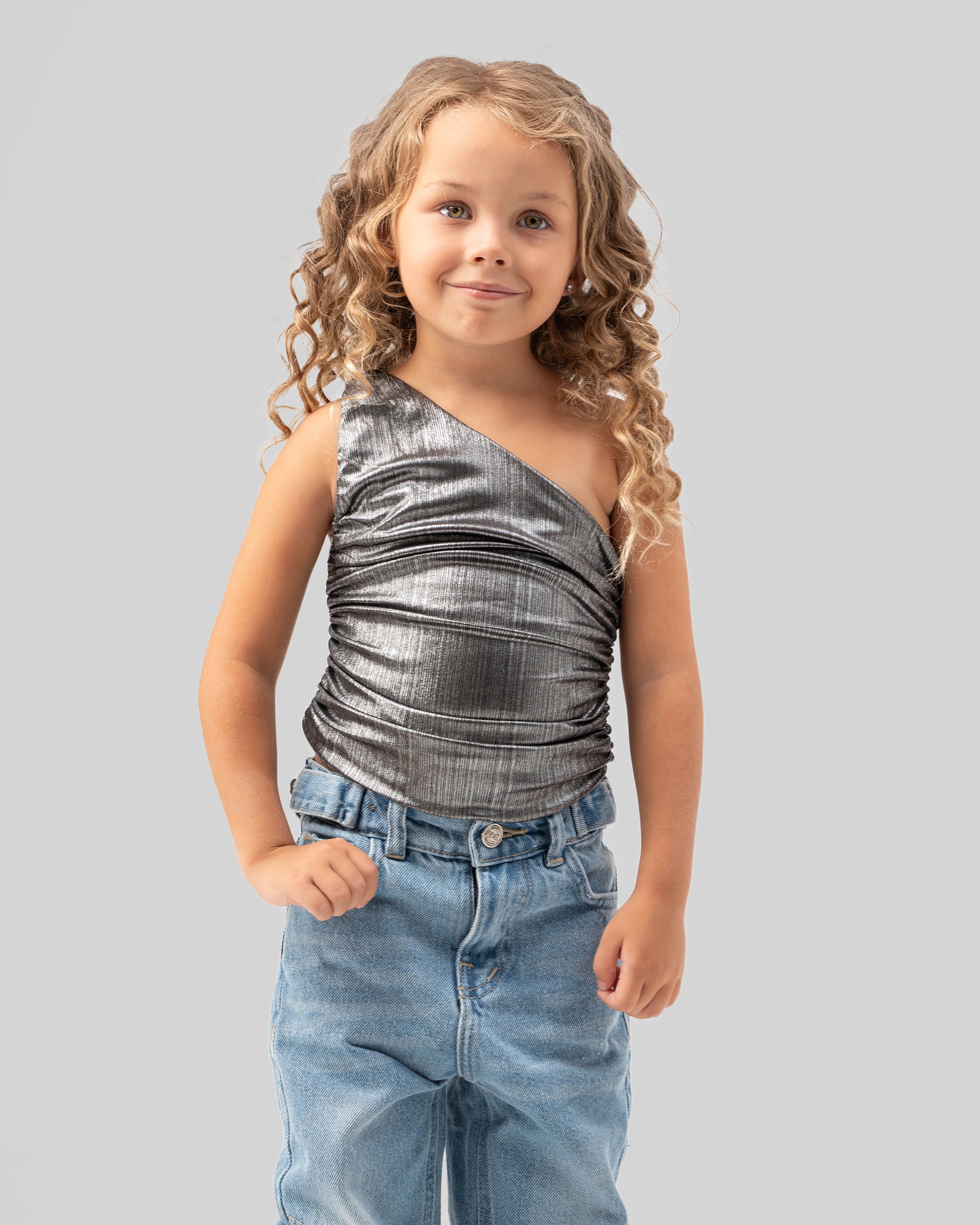 Calling all little fashion stars! Get ready to shine with the G Silver Off-Shoulder Top! This dazzling top lets your little one sparkle like a disco ball wherever she goes. Made with a soft, shimmering silver fabric, it keeps her cool and comfortable all day long. The trendy off-the-shoulder design adds a touch of grown-up flair, perfect for twirling adventures or special occasions.