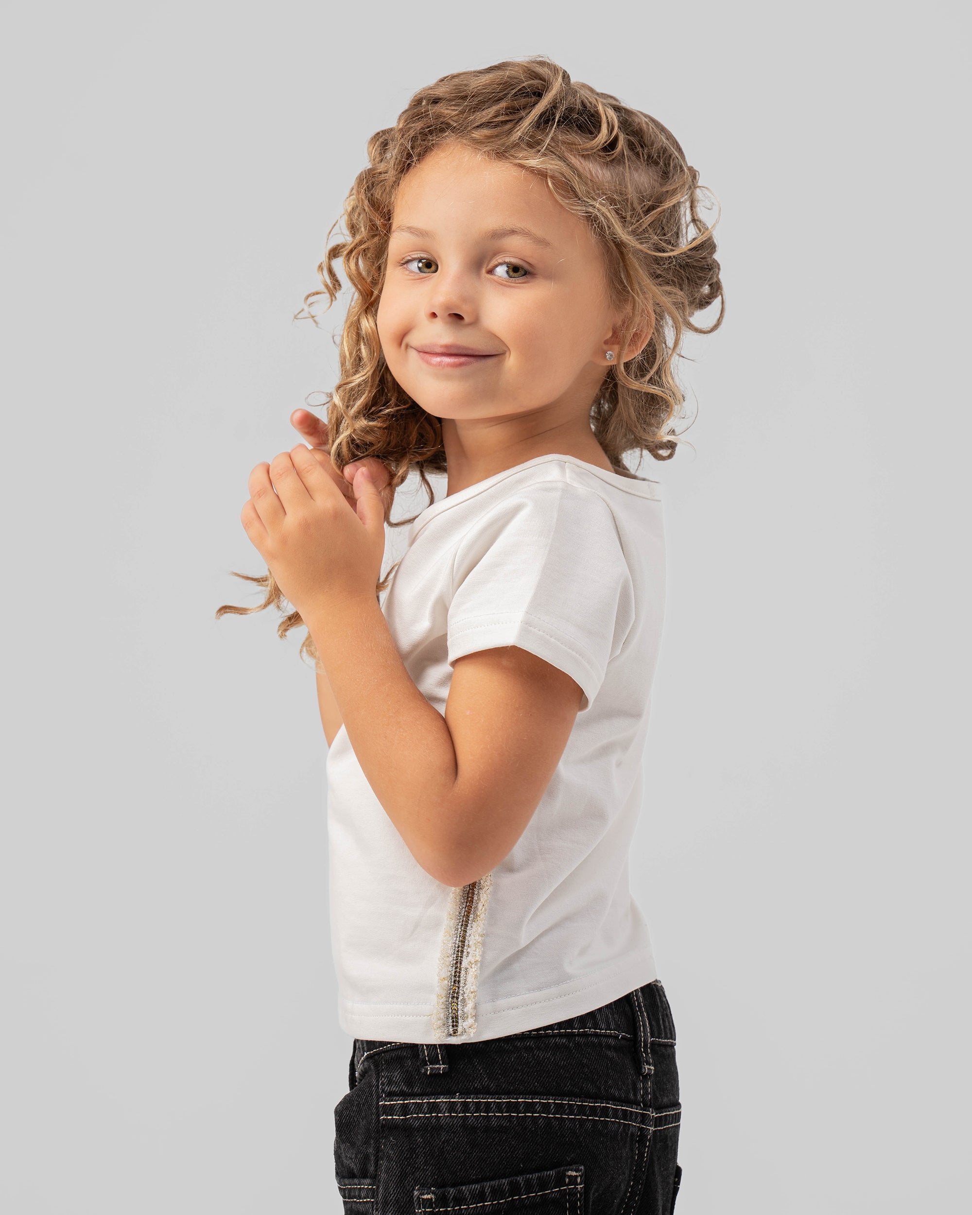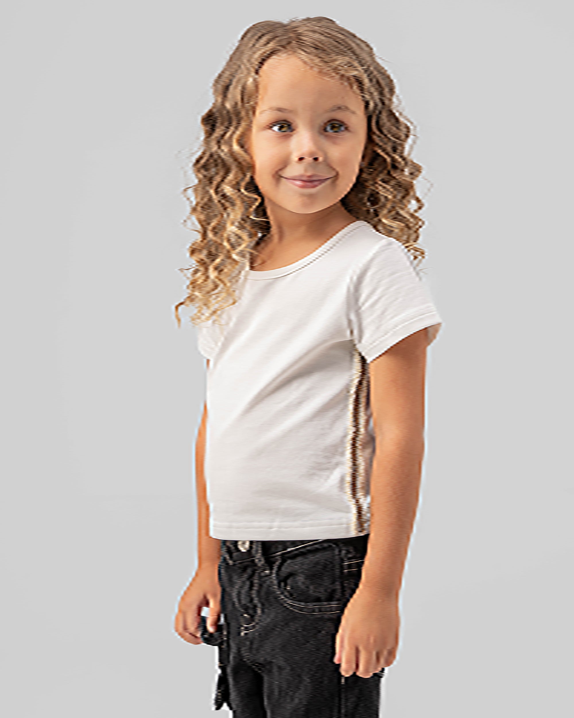 Elevate your everyday style with the Girls Top with Side Tape in a sleek Off-White hue. This modern, minimalist top features a clean, streamlined silhouette with a subtle side tape detail that adds a touch of contemporary edge. The soft, stretchy fabric ensures all-day comfort, while the versatile coloration allows you to easily pair it with everything from classic denim to tailored trousers for a polished, put-together look.