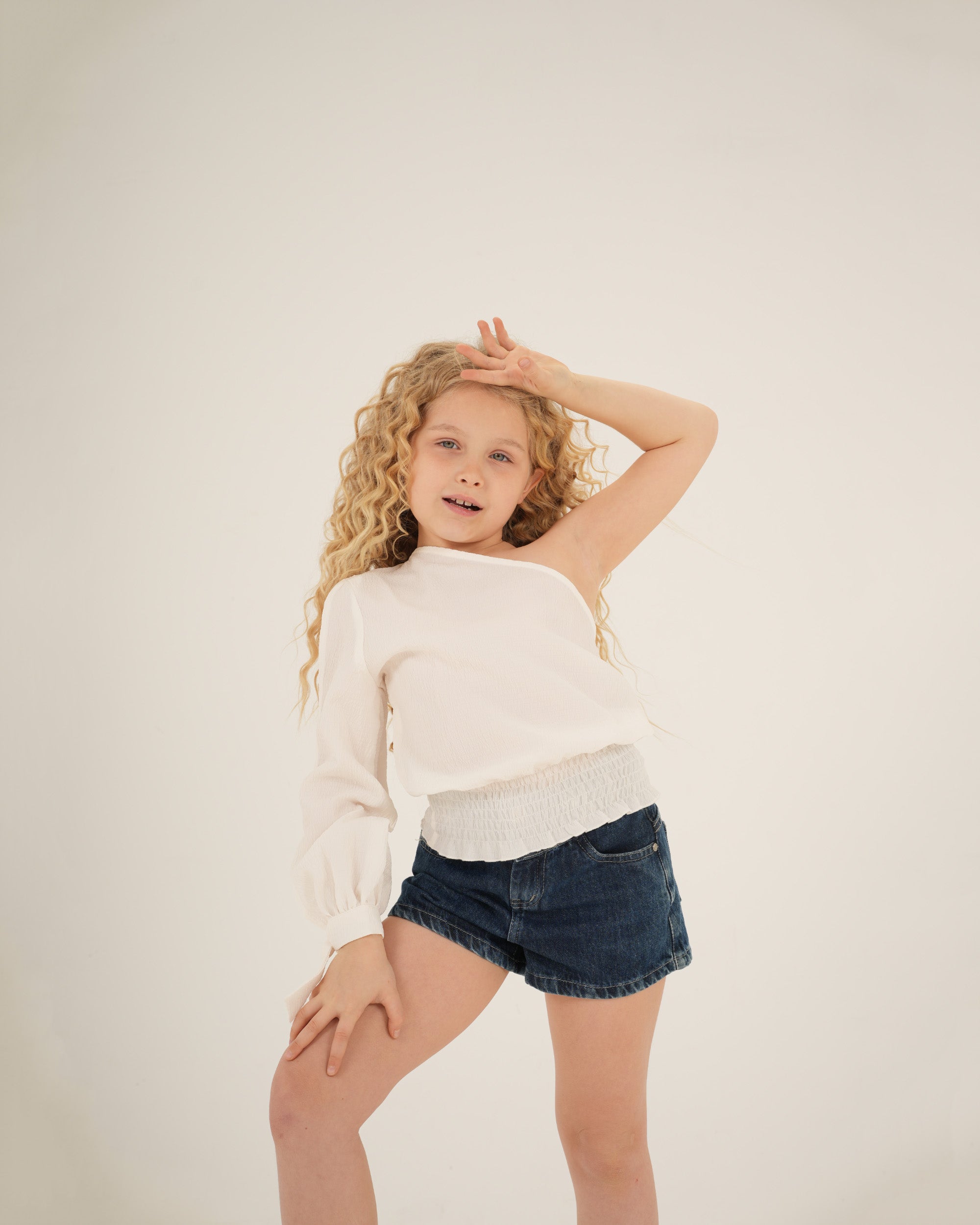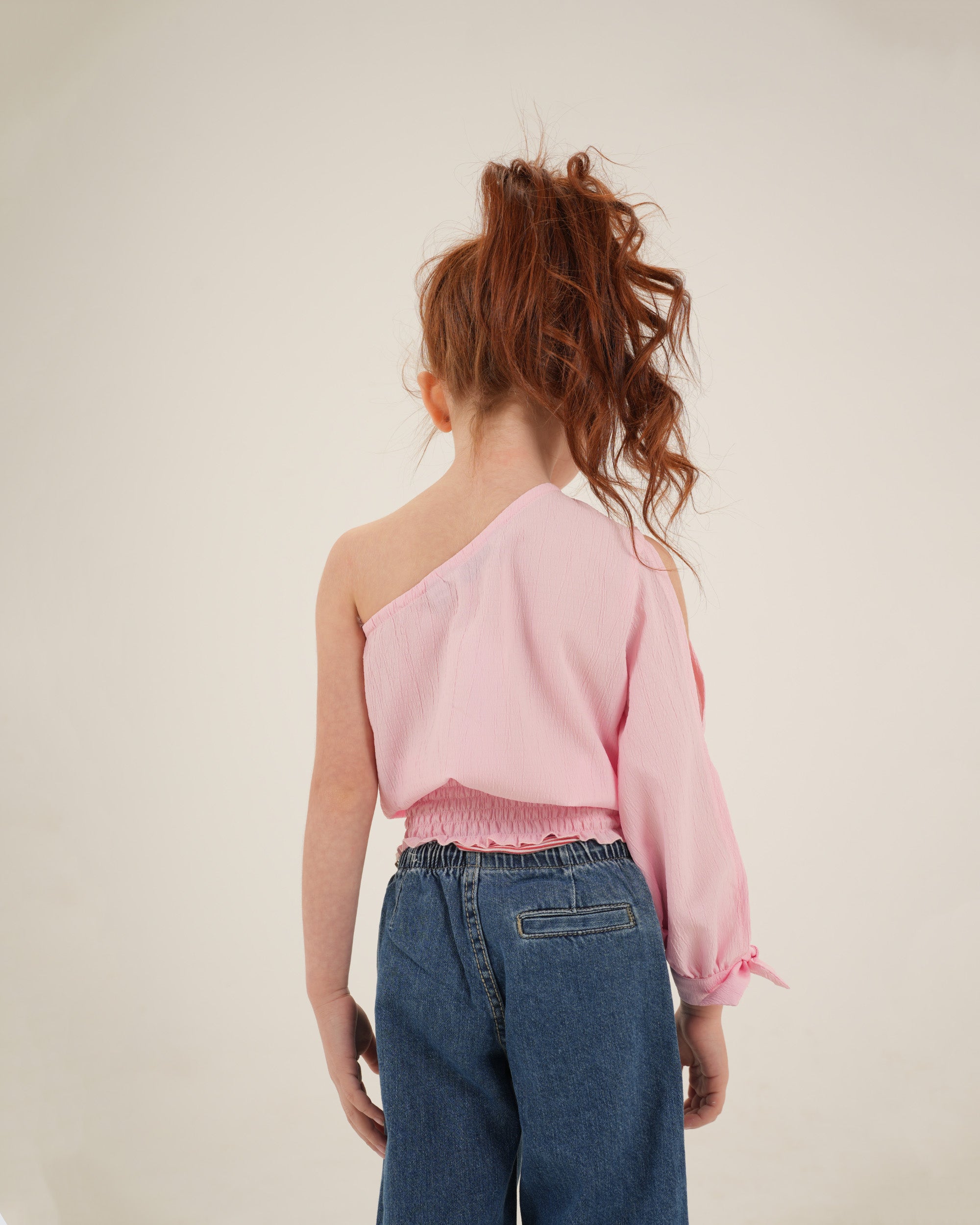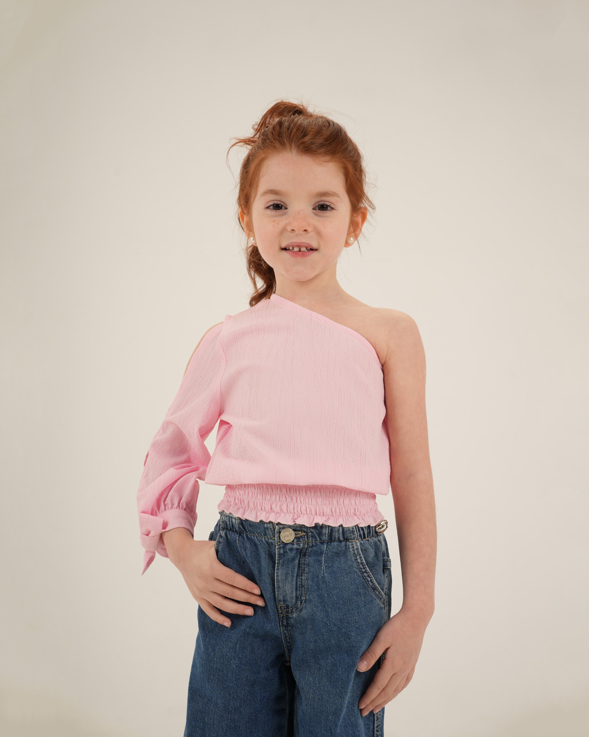 This One Shoulder Blouse in Rose is a romantic and feminine top. Designed in a delicate rose...