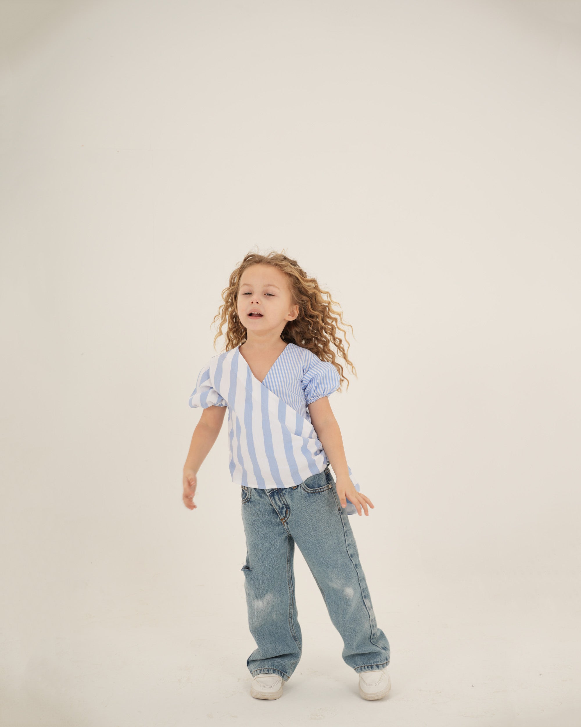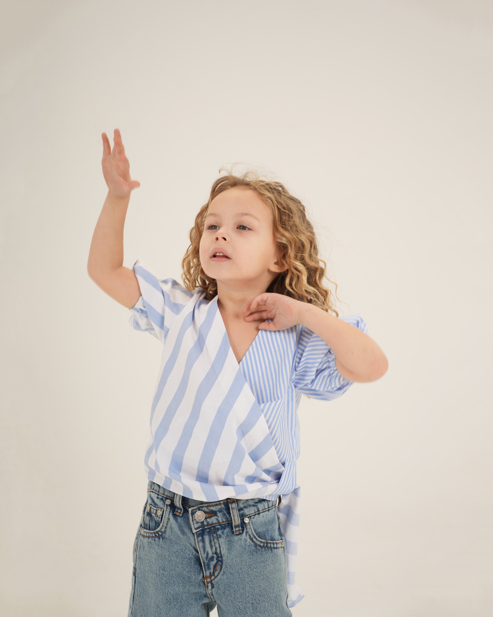 The Girl Contrast Strip Wrap Blouse in Striped has a vibrant, eye-catching striped pattern that adds a contemporary, sporty-chic flair. The wrap-style silhouette with its flattering, feminine shape makes this blouse a versatile, effortless choice for a variety of settings.