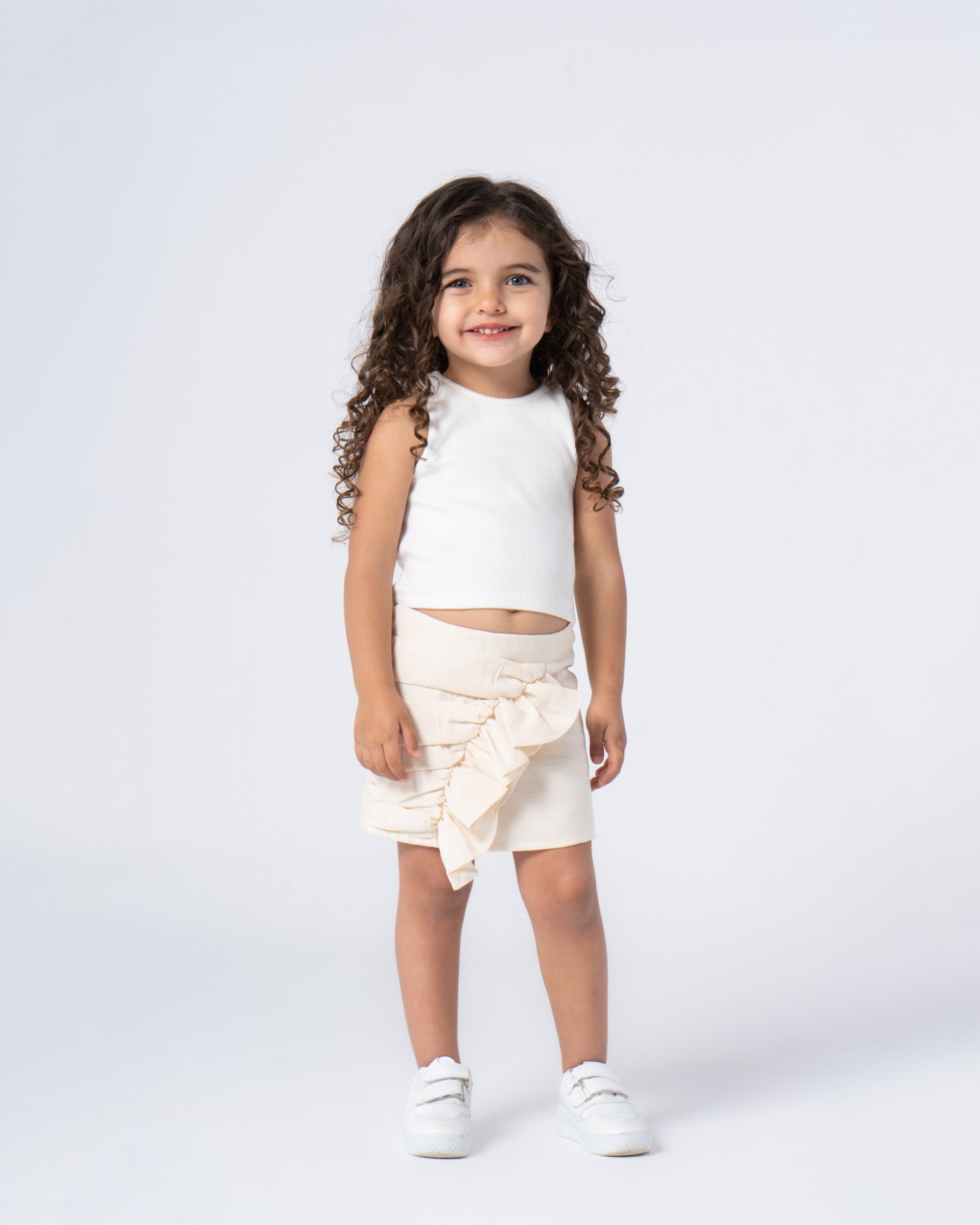 Double the fun, double the style! This twirl-worthy mini skirt features diagonal ruffles in both crisp white and cool black. It's perfect for mixing and matching with all her favorite tops. Get ready for compliments and playground pirouettes!