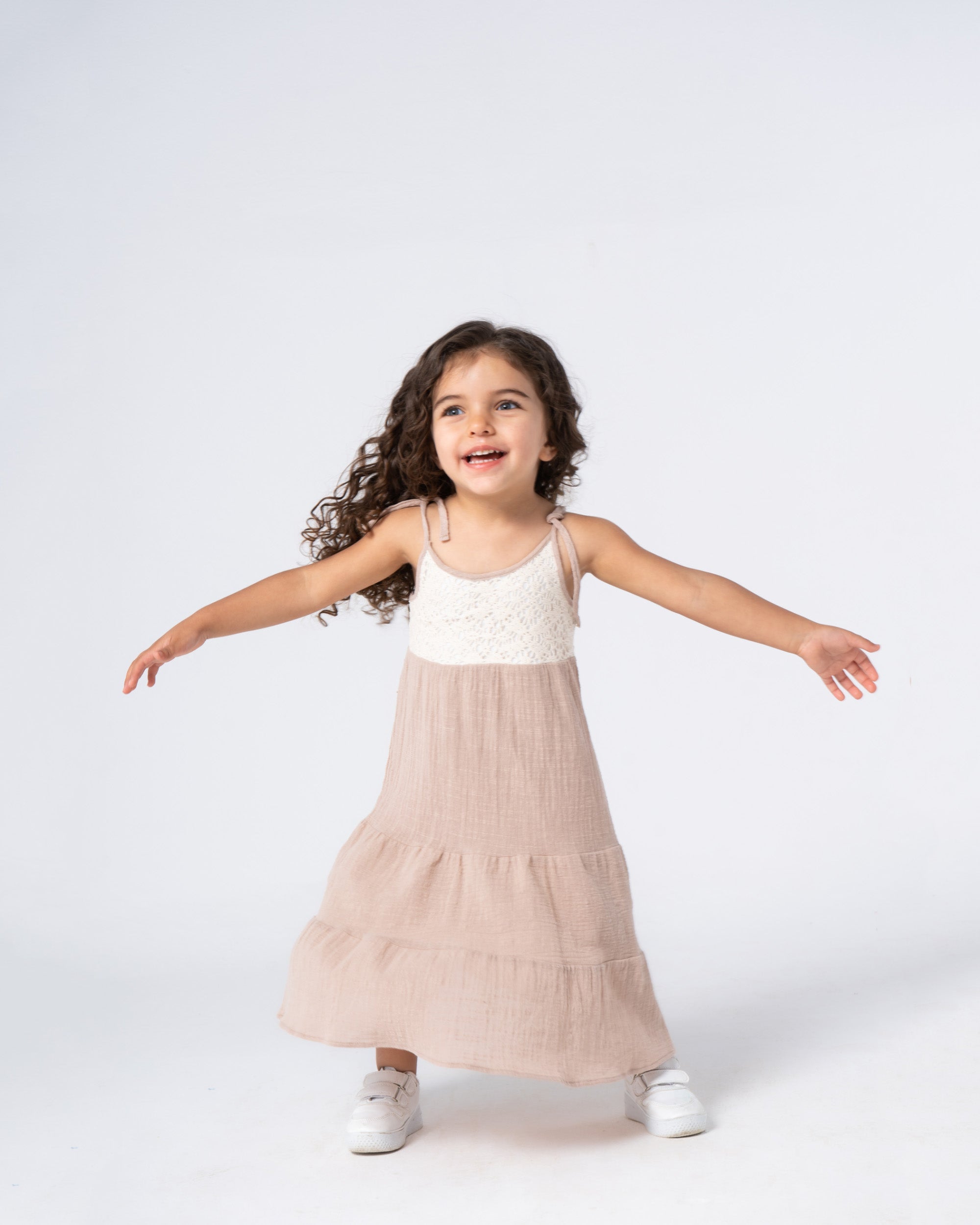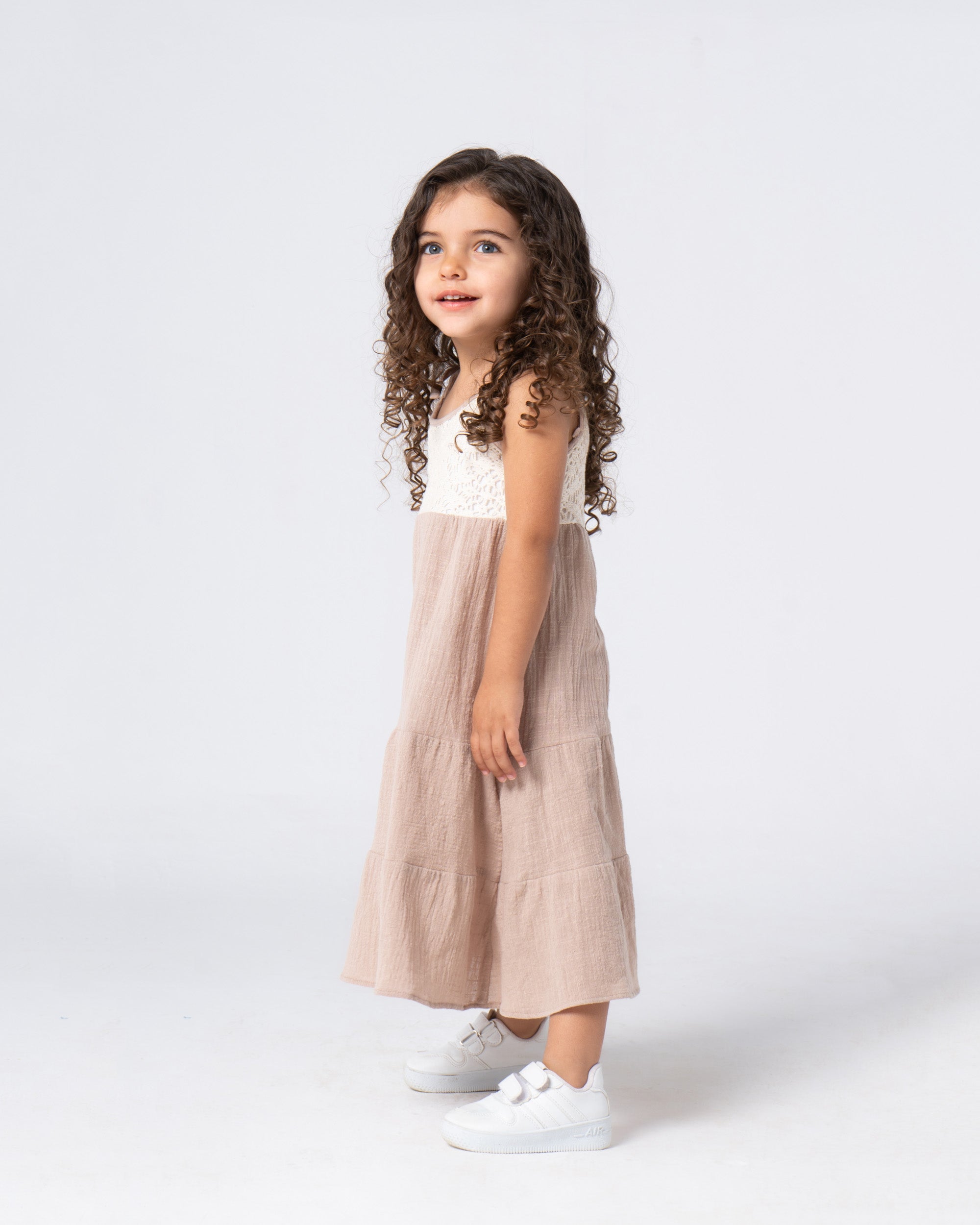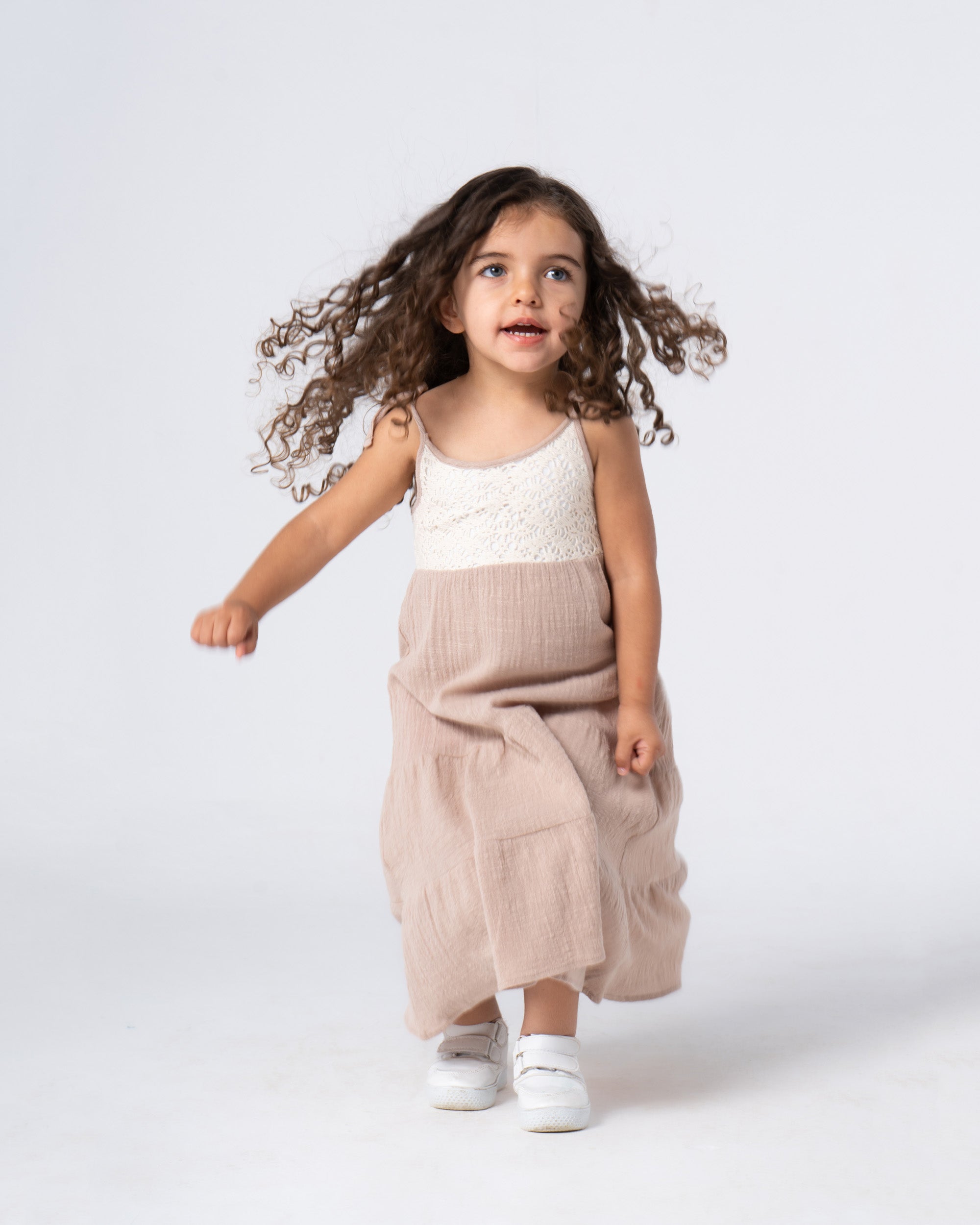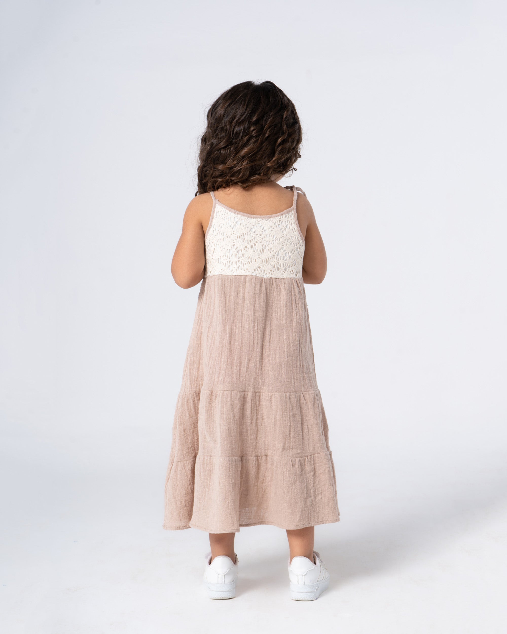 Every little princess deserves a fairytale dress! This enchanting beige crochet block dress, made with soft, textured squares, is a dream come true. The long, flowing silhouette lets her twirl and dance like royalty, while the comfy crochet keeps her feeling like her most playful self.