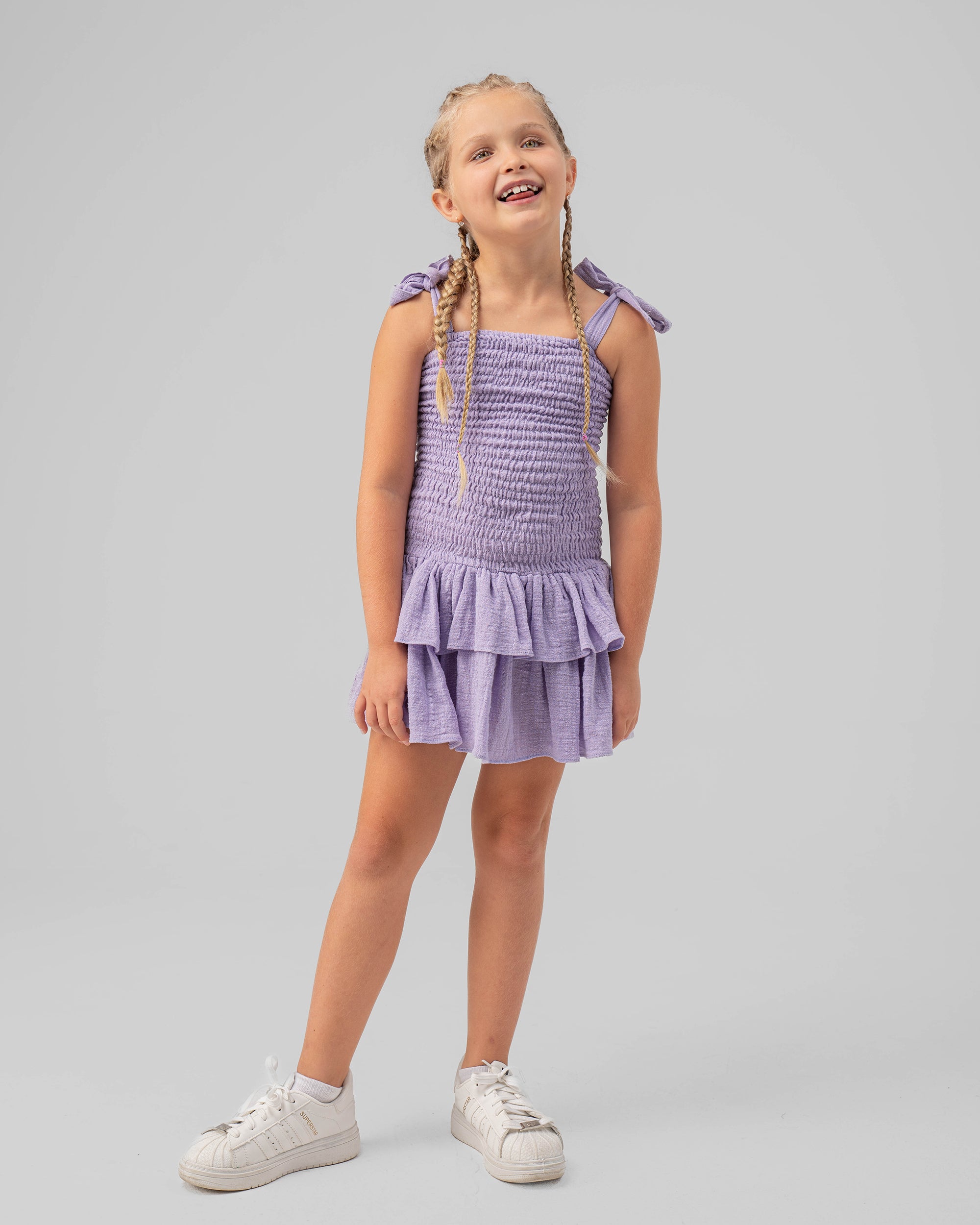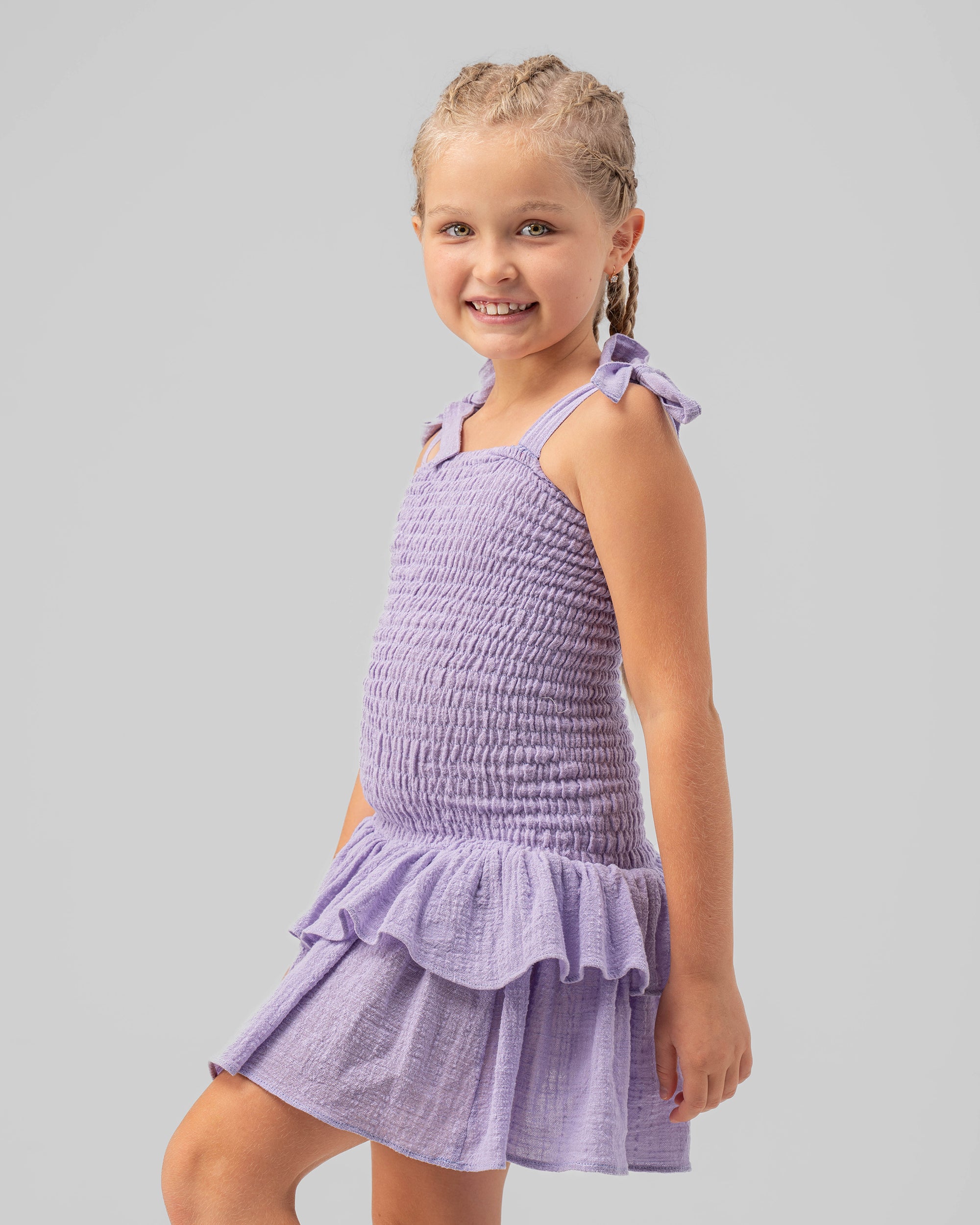 Twirling dreams in purple! This long crochet dress lets your little one embrace her inner princess. Soft, breathable yarn keeps her comfy all day, while the intricate crochet details add a touch of whimsical charm. Perfect for summer adventures, picnics in the park, or twirling under the sunshine.