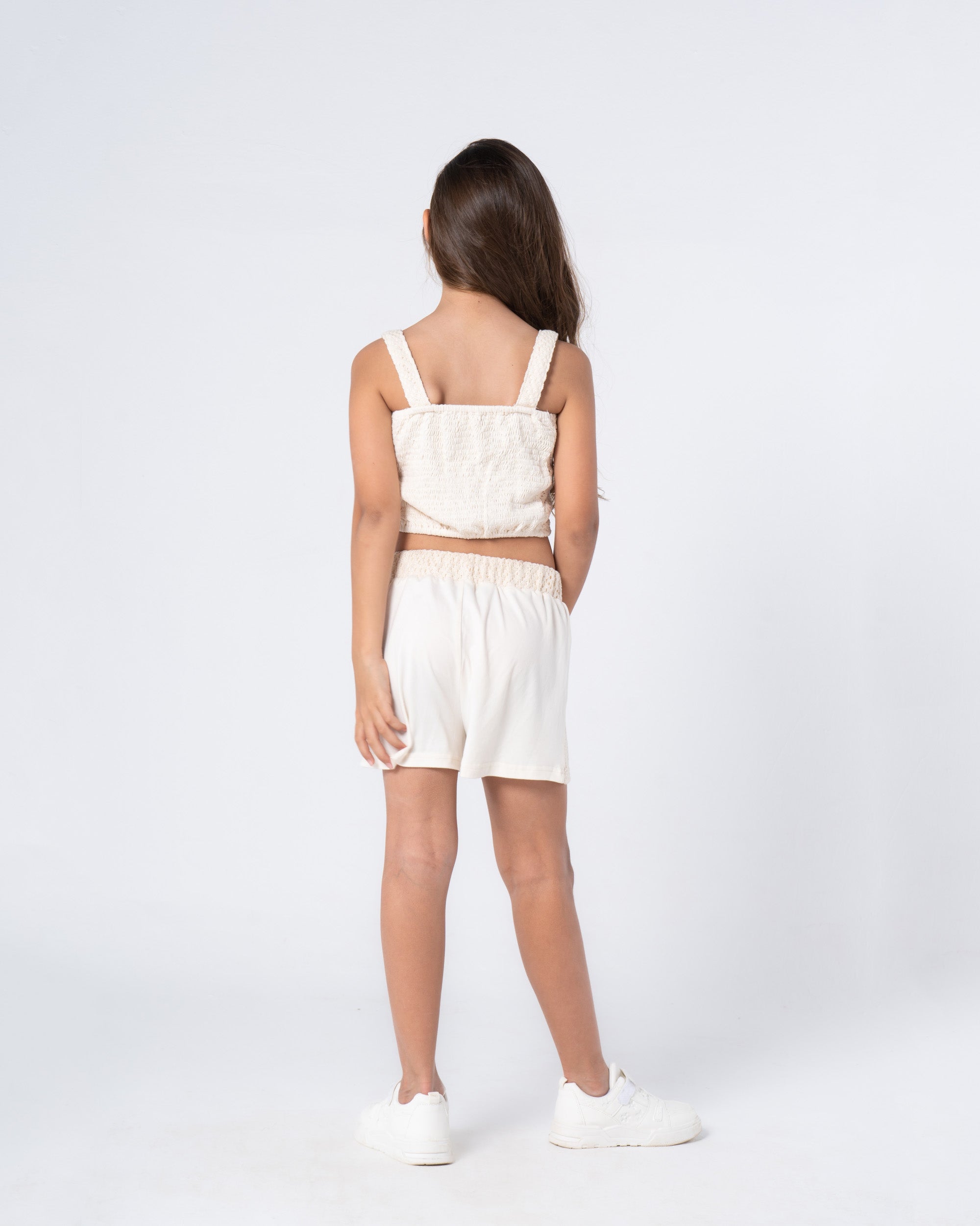 Bohemian vibes, breezy style. This off-white crochet set lets her twirl into summer with playful charm. Get this set for your little princess now