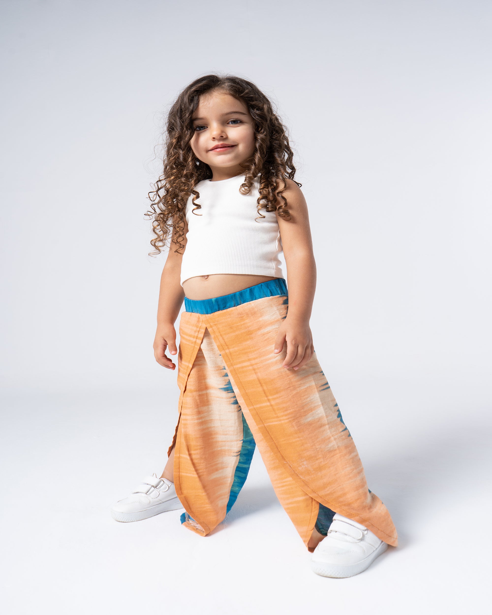 These breezy open-leg pants are crafted from comfy, breathable Lenin fabric in a stunning fuchsia hue. The relaxed fit lets your little one move freely, while the unique texture of the Lenin adds a touch of eco-friendly style.