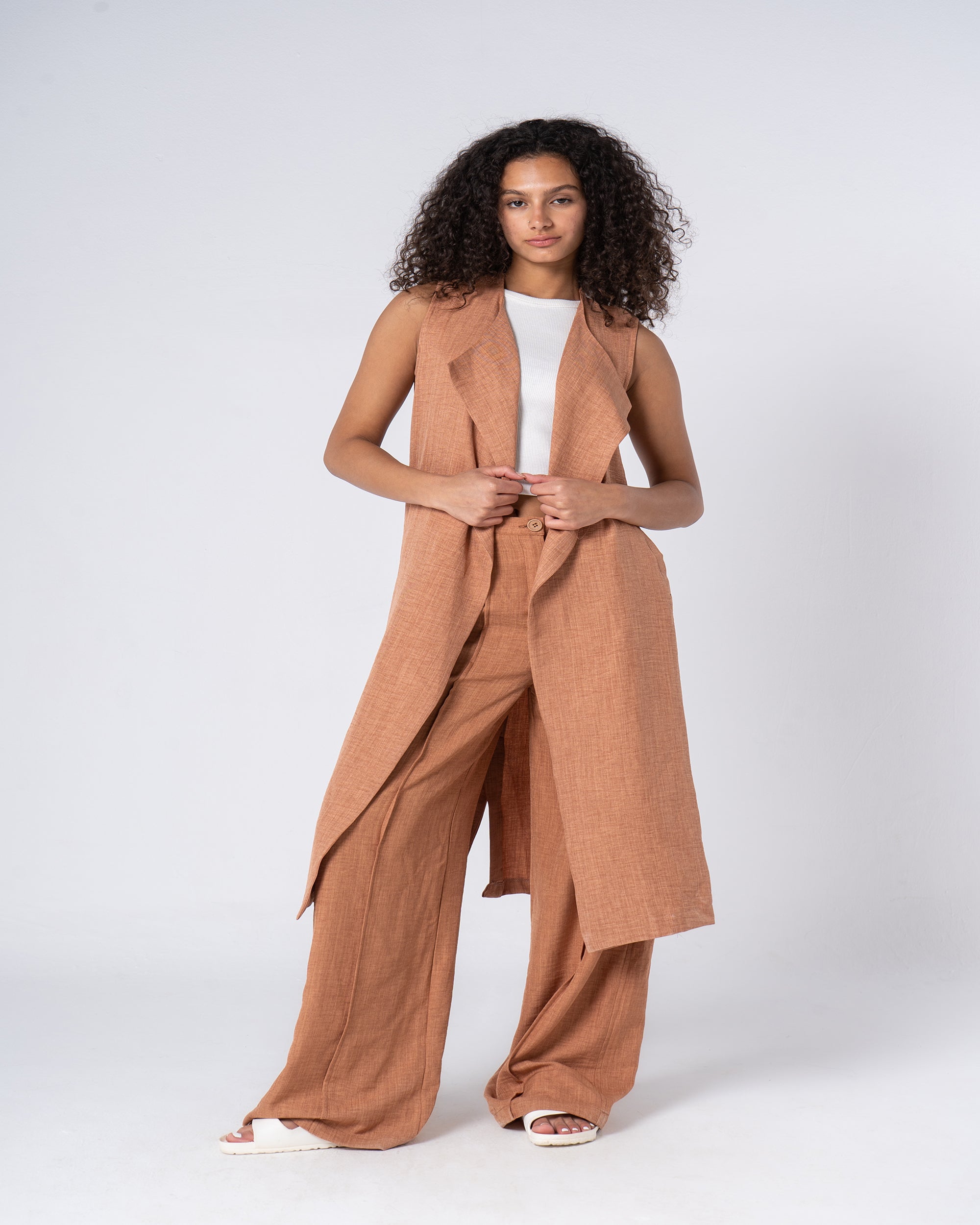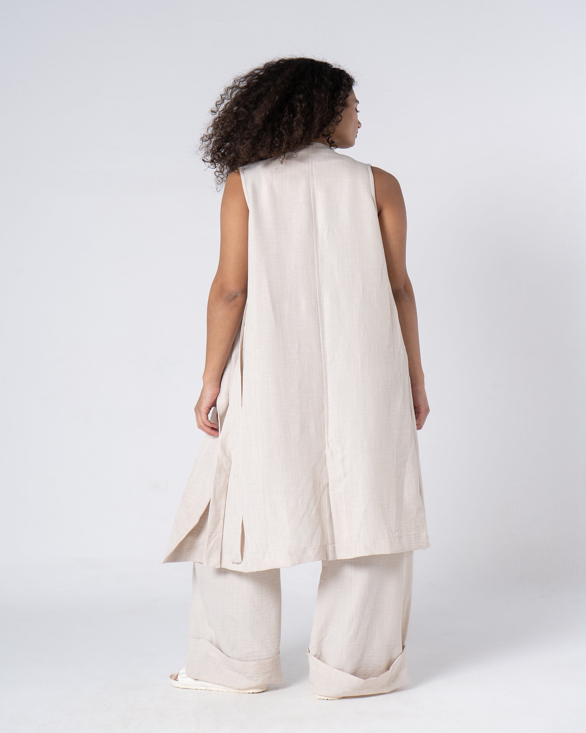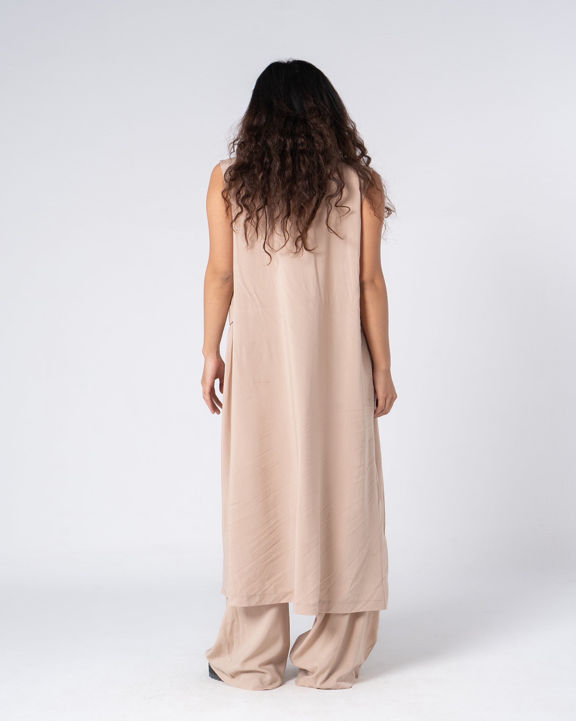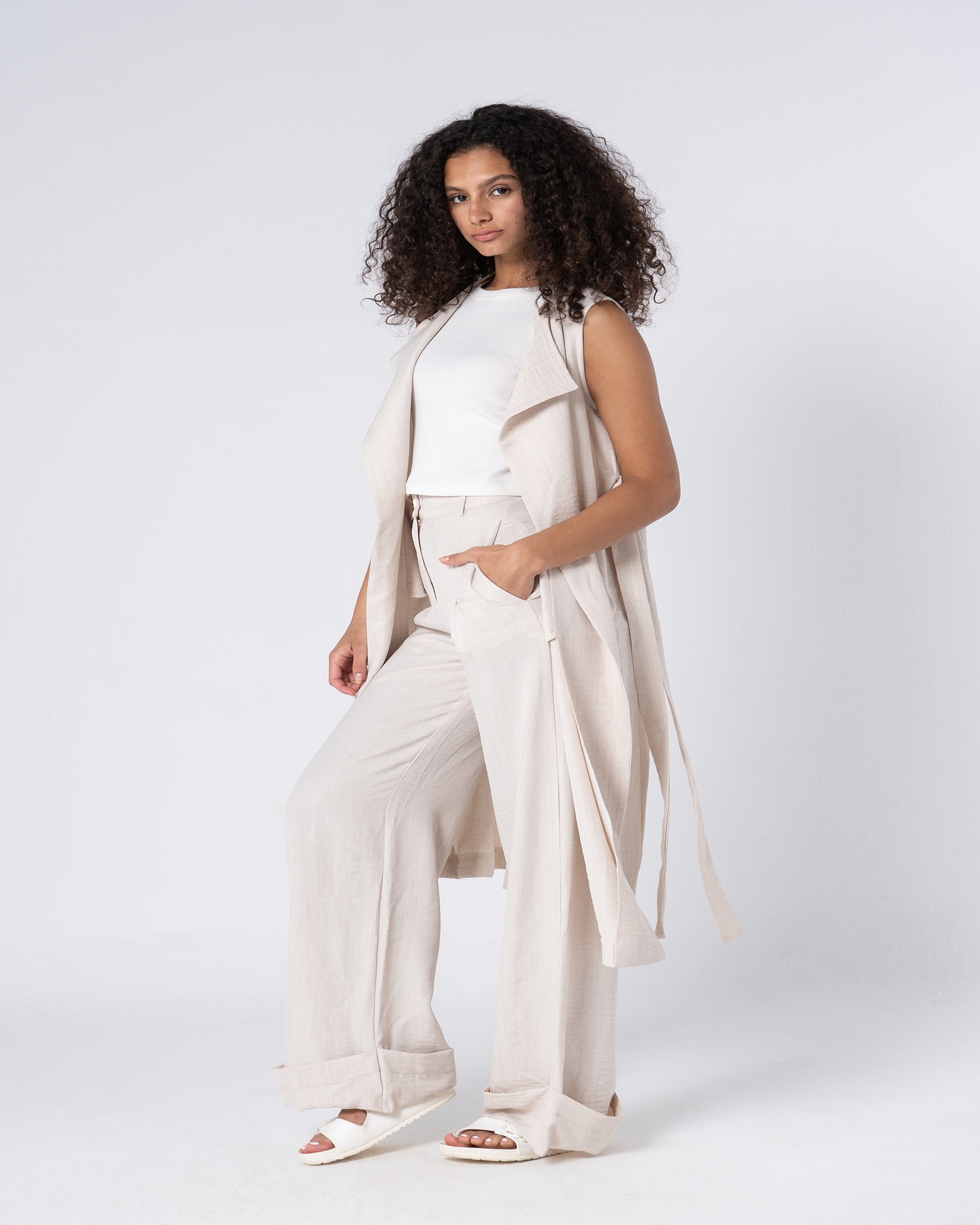 Stay stylishly warm and dry this season in our Women Two-Piece Trench Coat Set in classic Beige. This coordinated ensemble includes a longline trench coat with a waist-cinching belt, as well as a cropped, collarless jacket, allowing you to layer up or wear them separately for a versatile, transitional look. The soft, supple fabric and tailored silhouette create a sleek, sophisticated aesthetic perfect for the modern woman on the go.