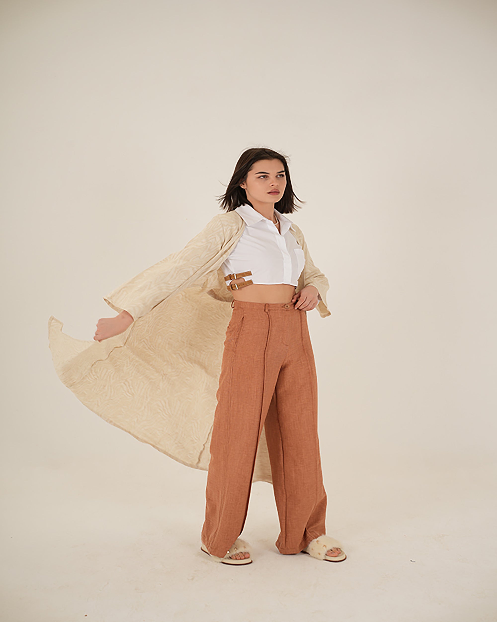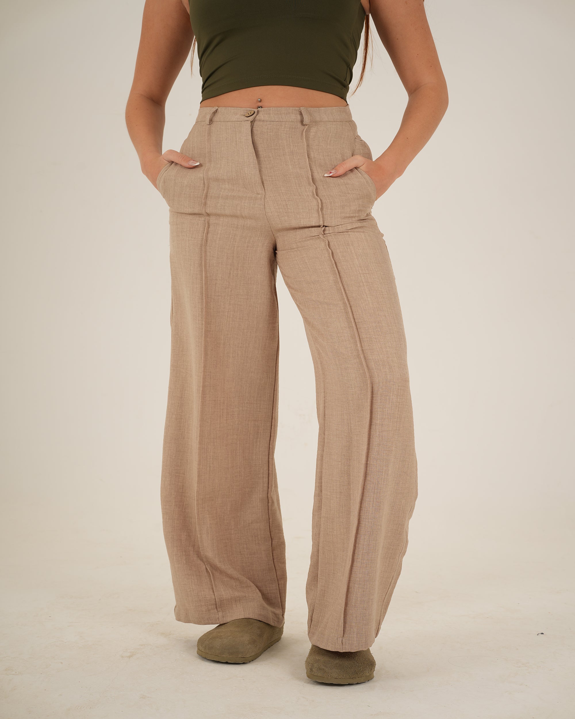 Desert luxe. Sink into effortless style with these flowing camel Lenin palazzo pants.