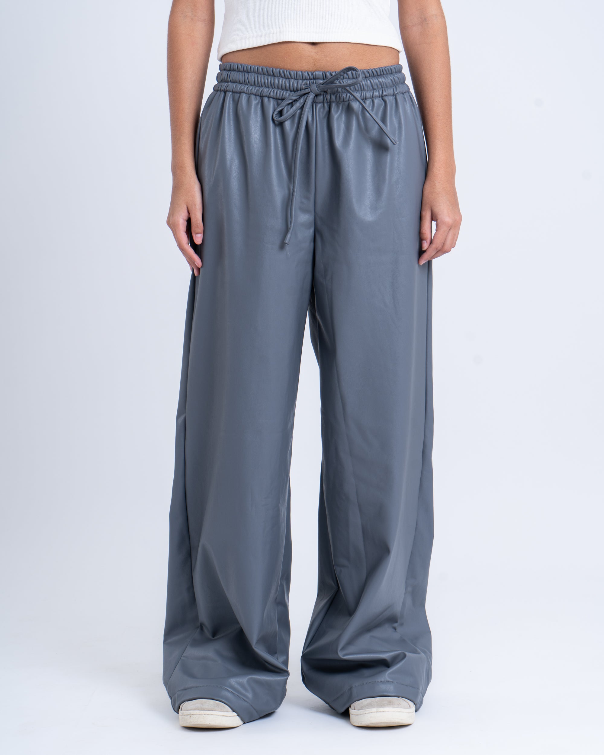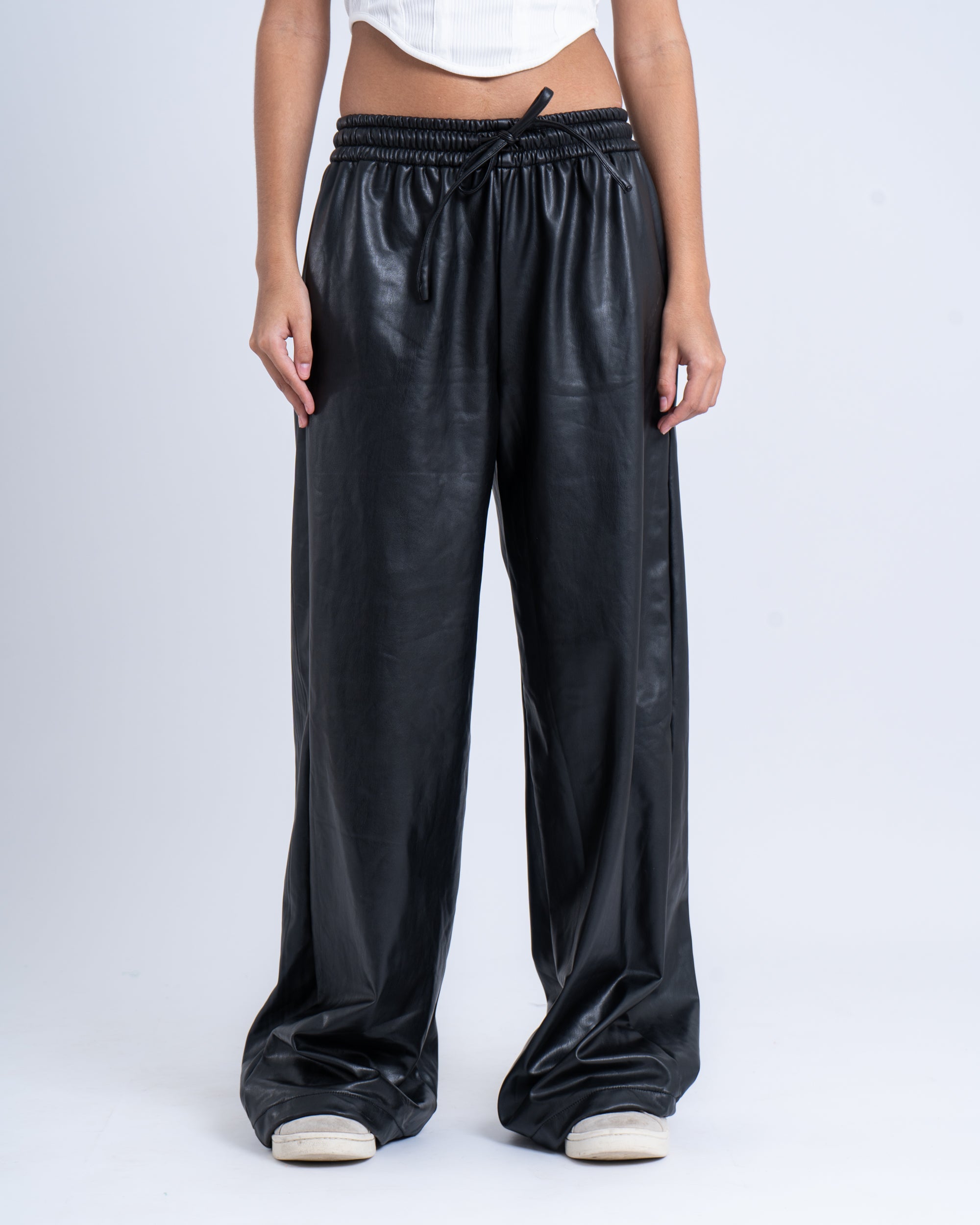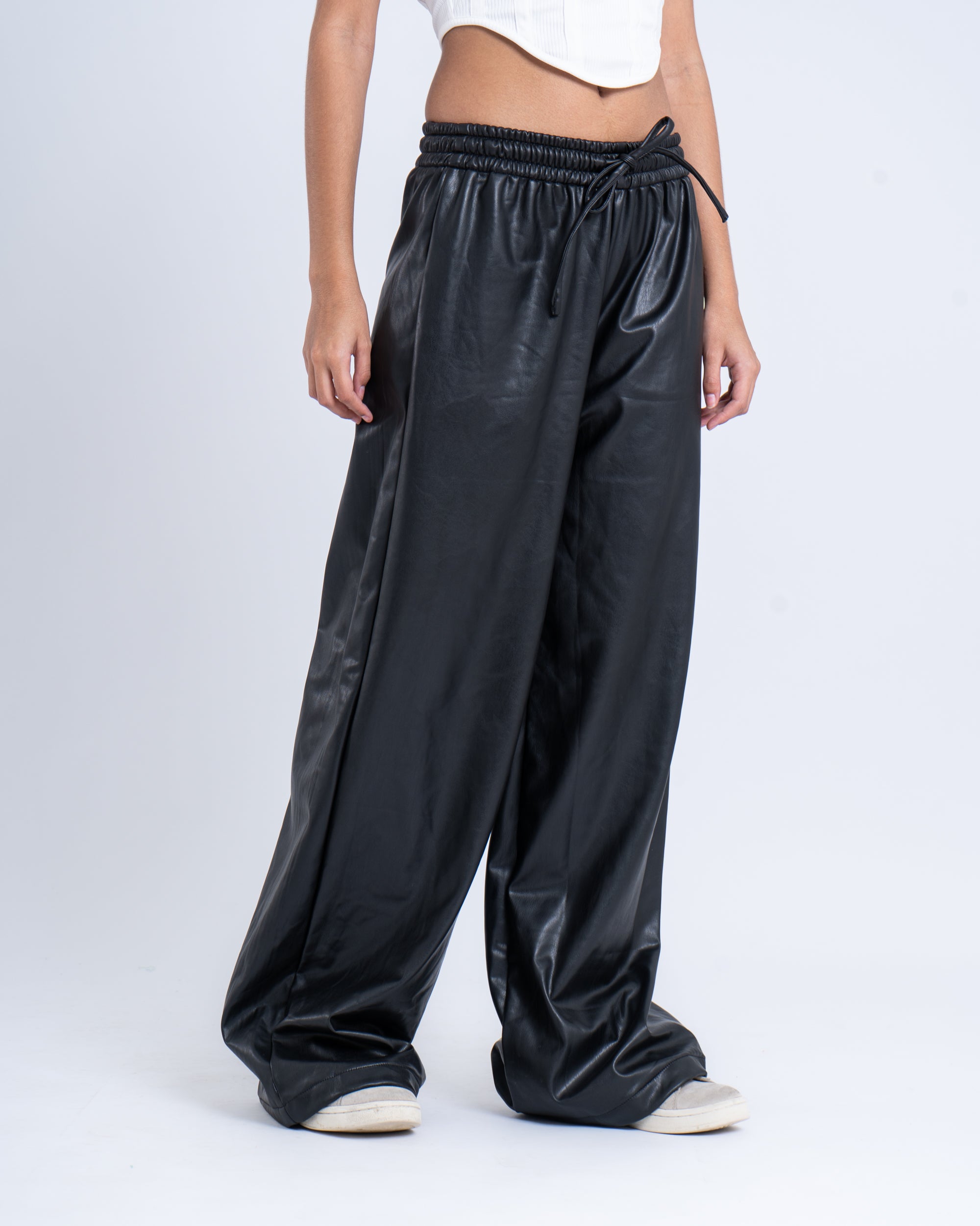 • Fabric & Fit: Made from soft faux leather for a sleek, polished look. The wide-leg fit offers relaxed comfort, and the elastic drawstring waistband provides an adjustable fit.