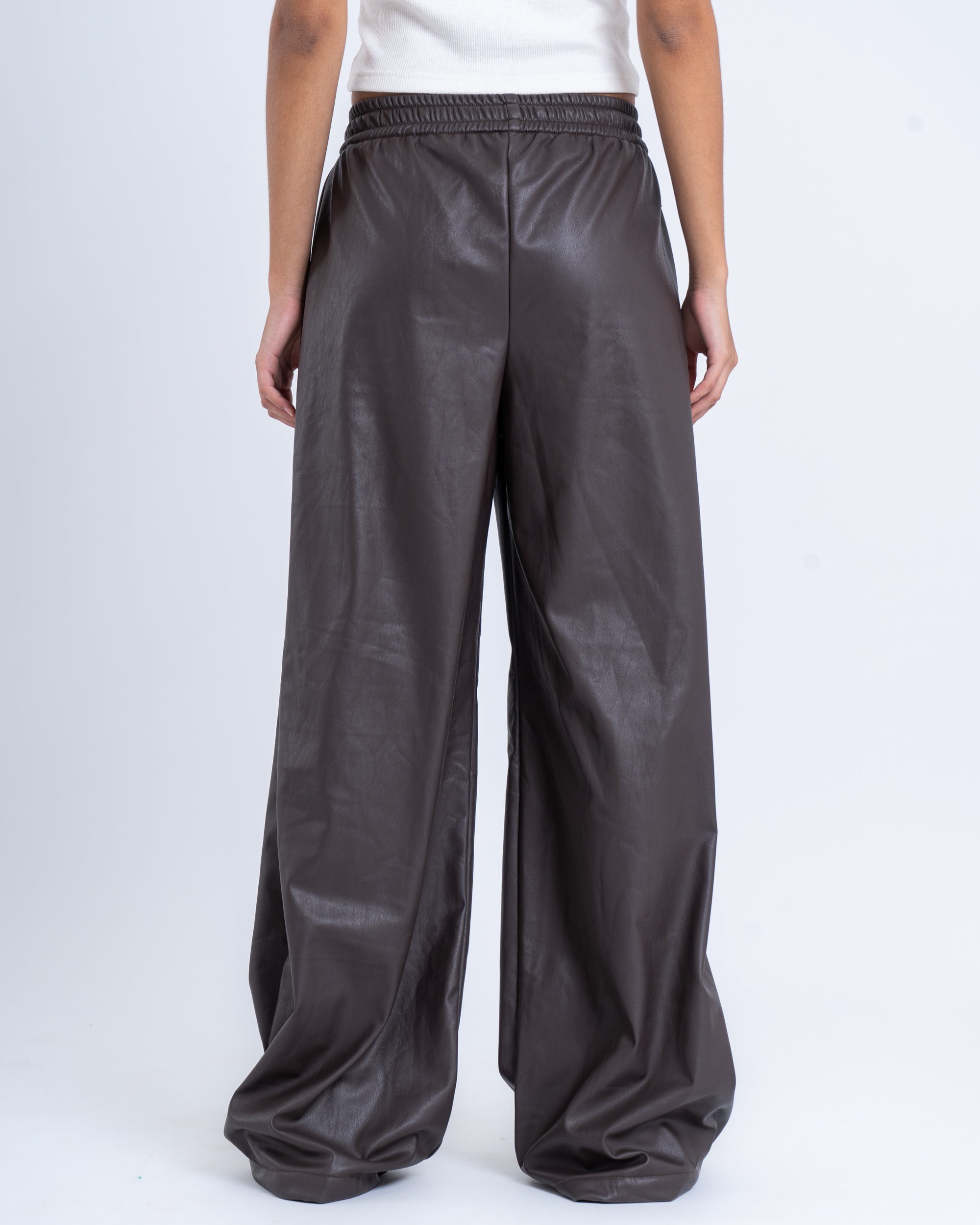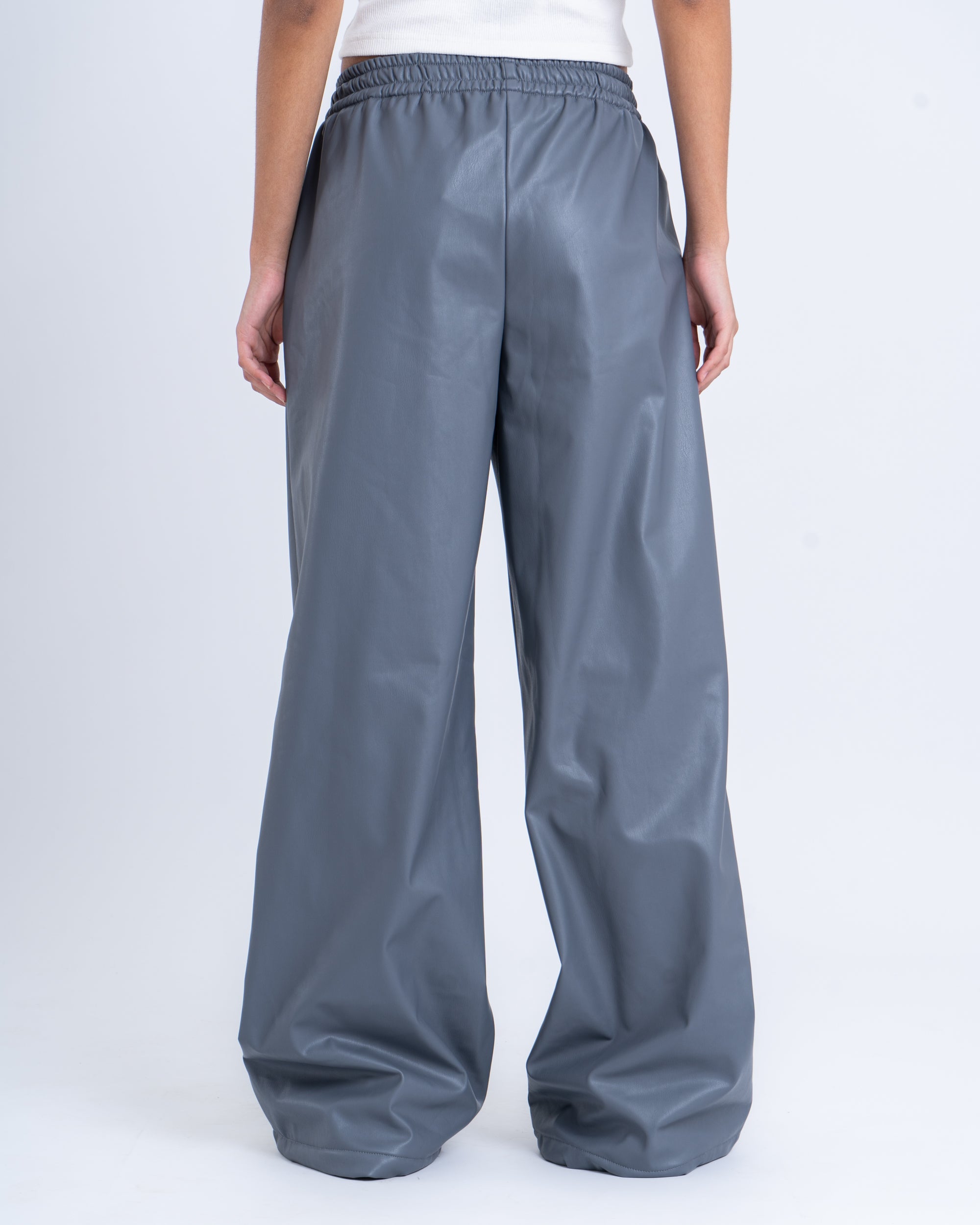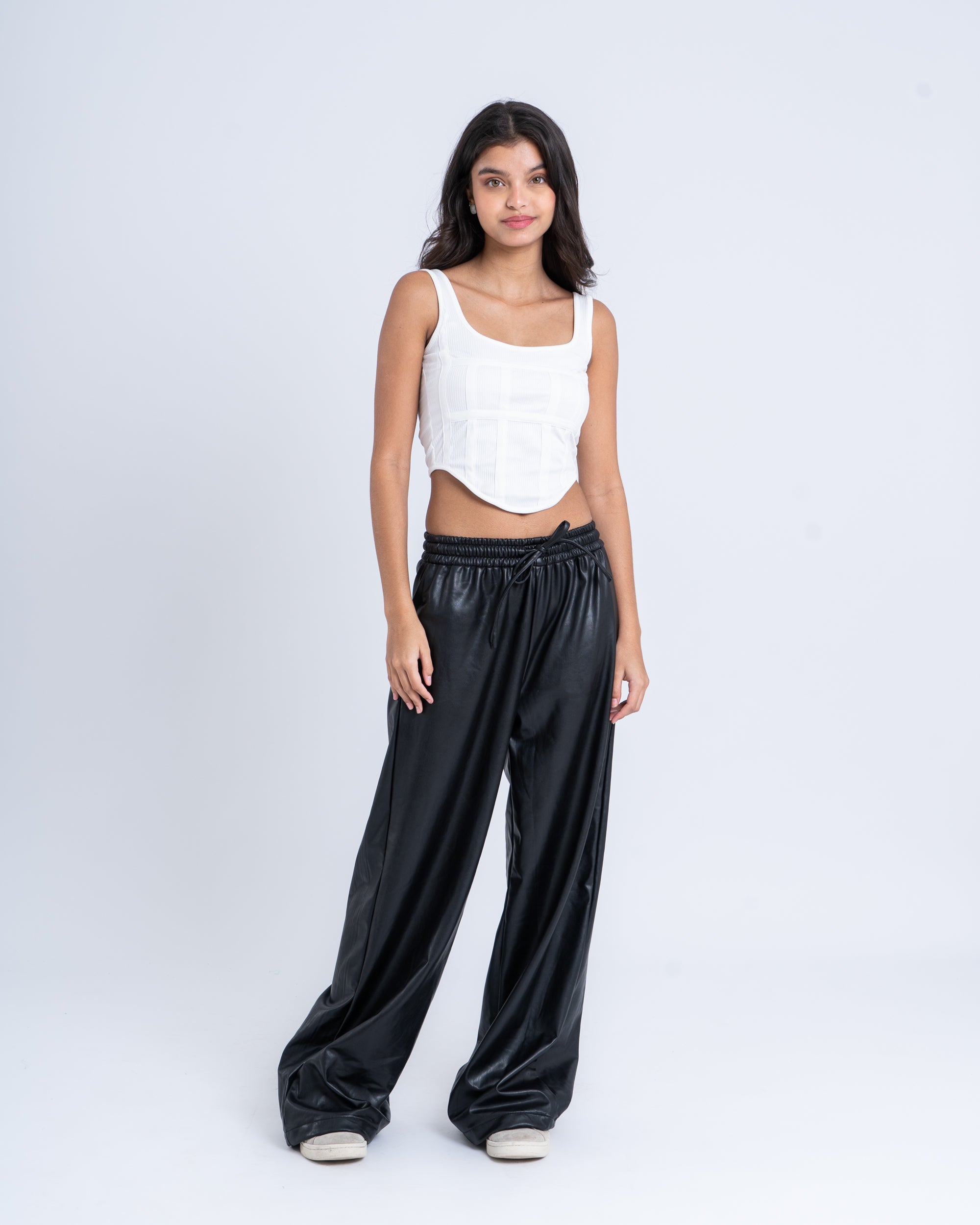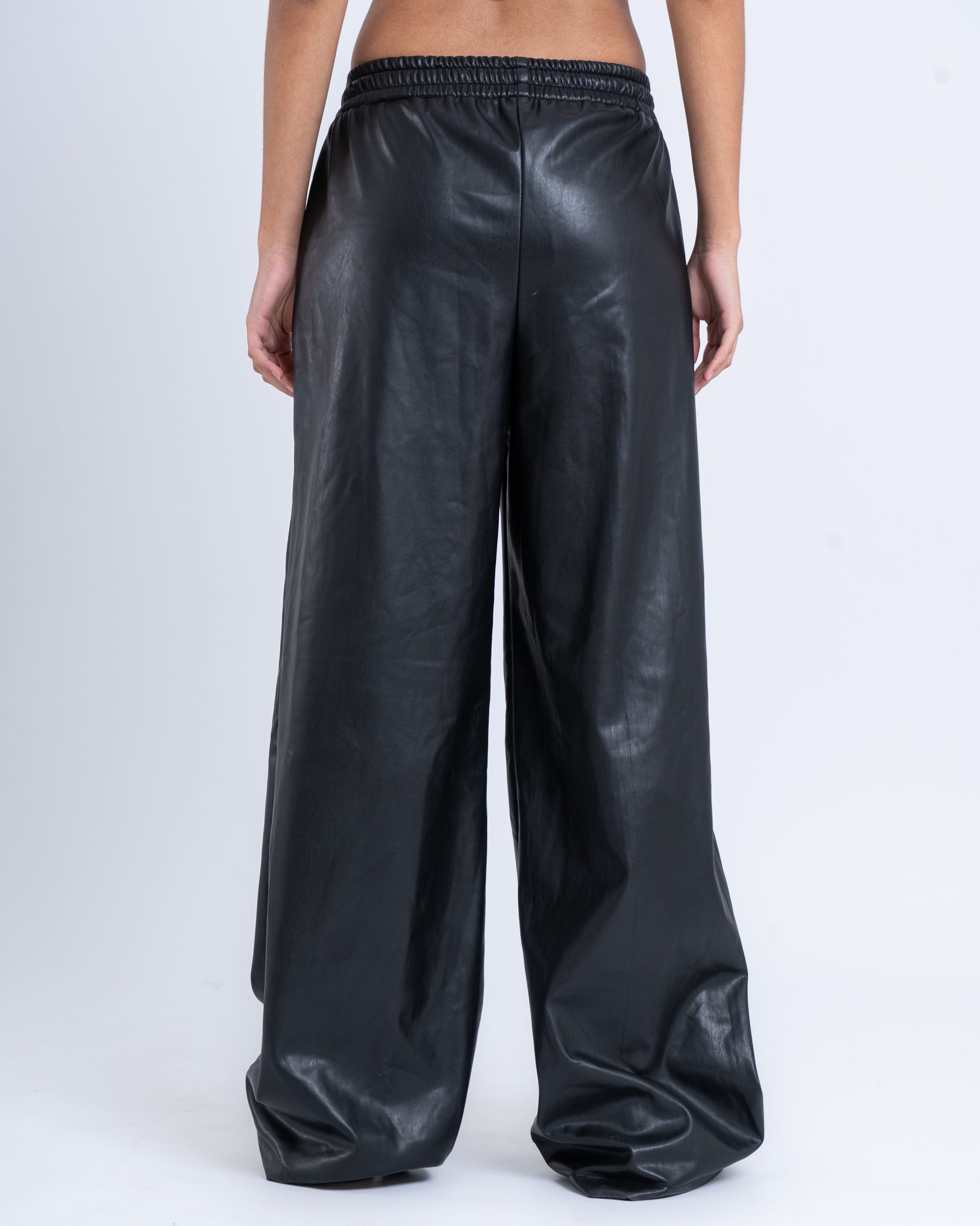 • Fabric & Fit: Made from soft faux leather for a sleek, polished look. The wide-leg fit offers relaxed comfort, and the elastic drawstring waistband provides an adjustable fit.