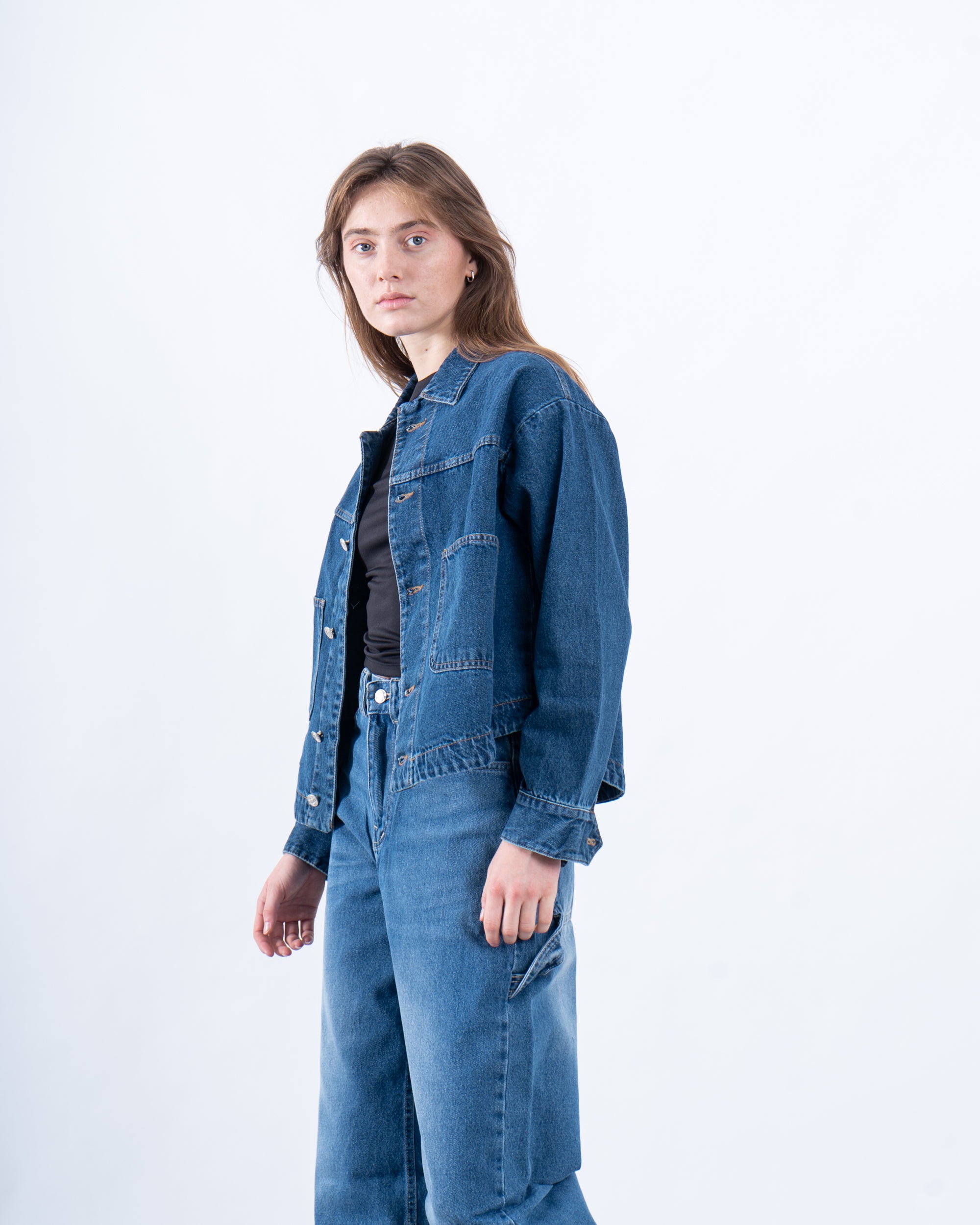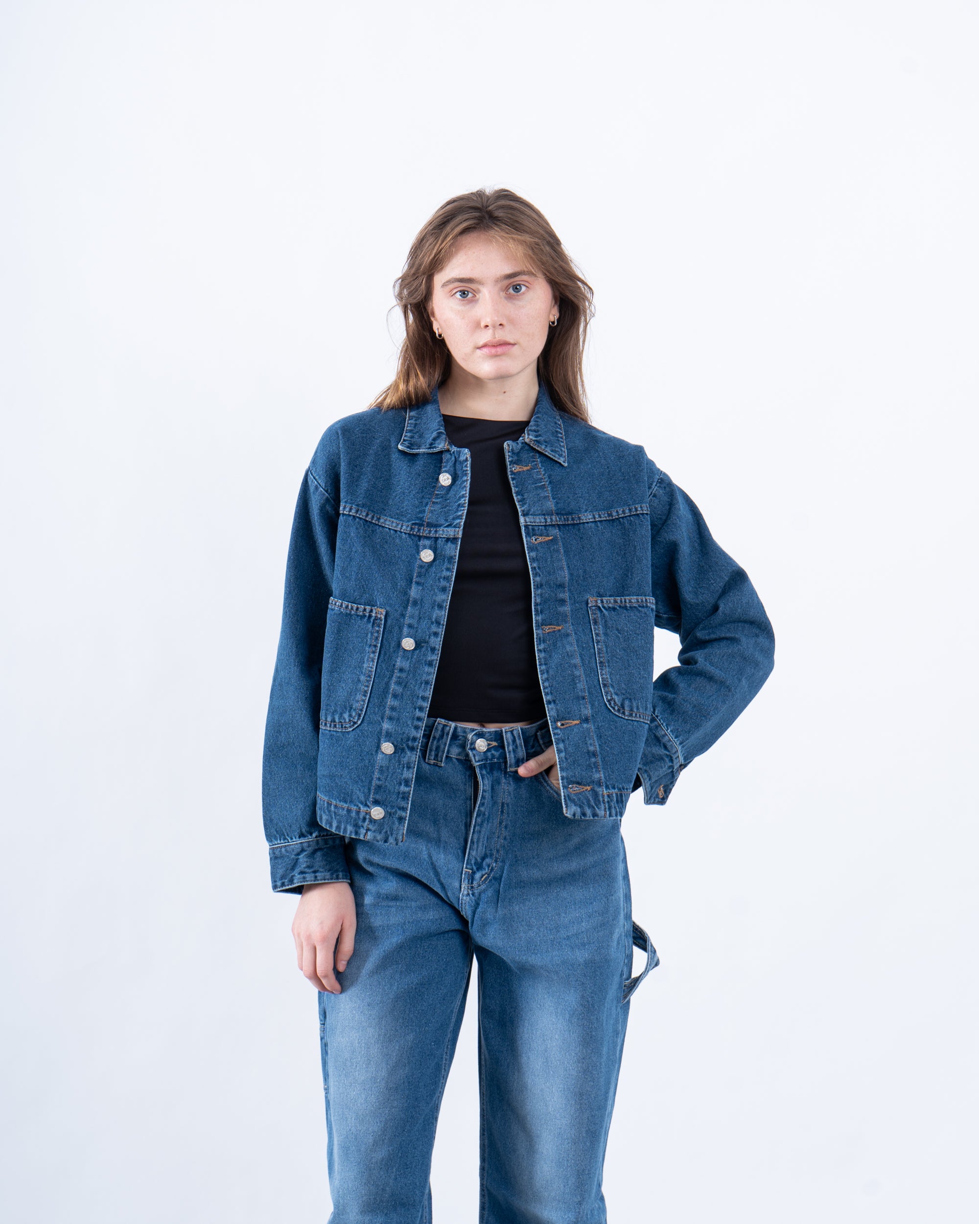 Effortlessly cool and versatile, this oversized denim jacket is a wardrobe staple. With a relaxed fit and classic detailing, it’s perfect for layering over your favorite basics or pairing with matching denim for a statement look.