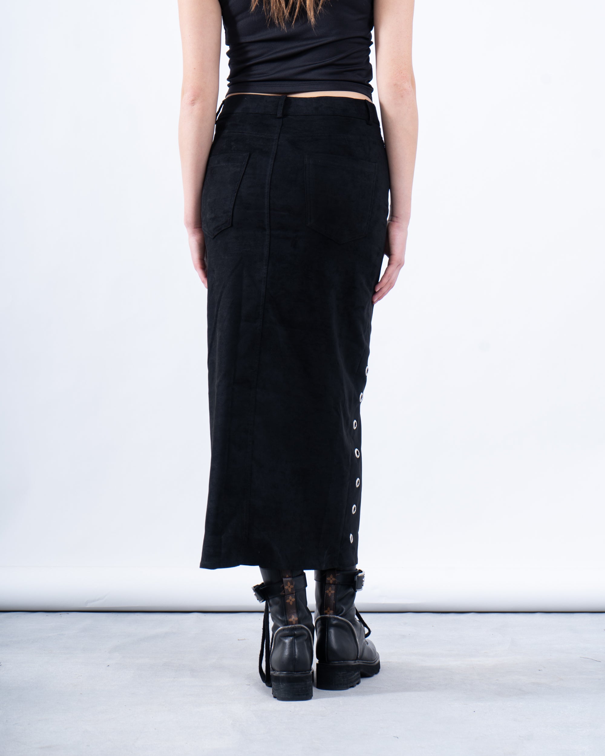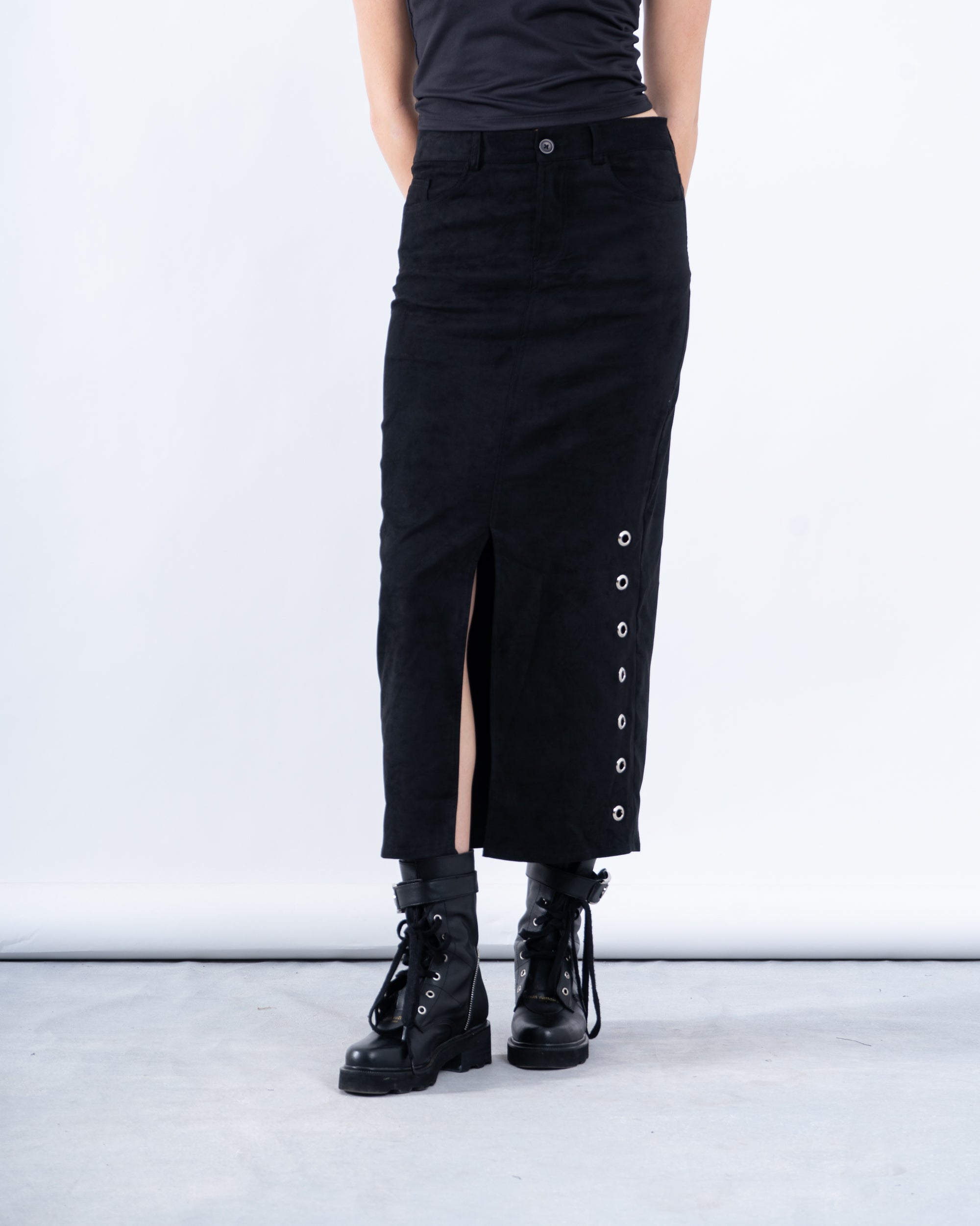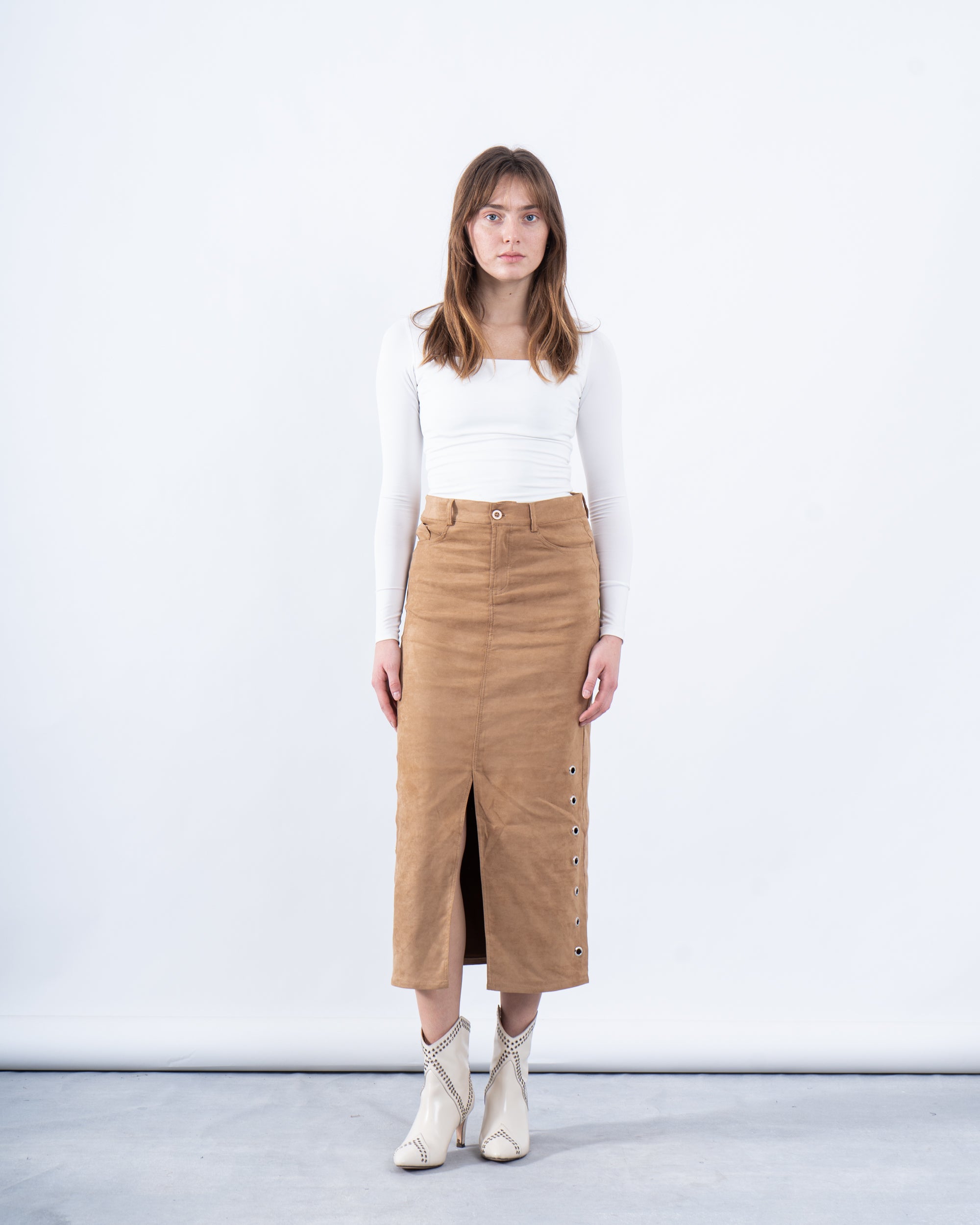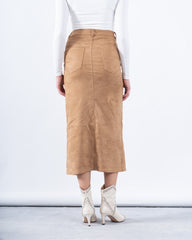 Sophisticated and timeless, this suede midi skirt is a versatile wardrobe essential. With its sleek design and luxurious texture, it’s perfect for both casual and formal looks.