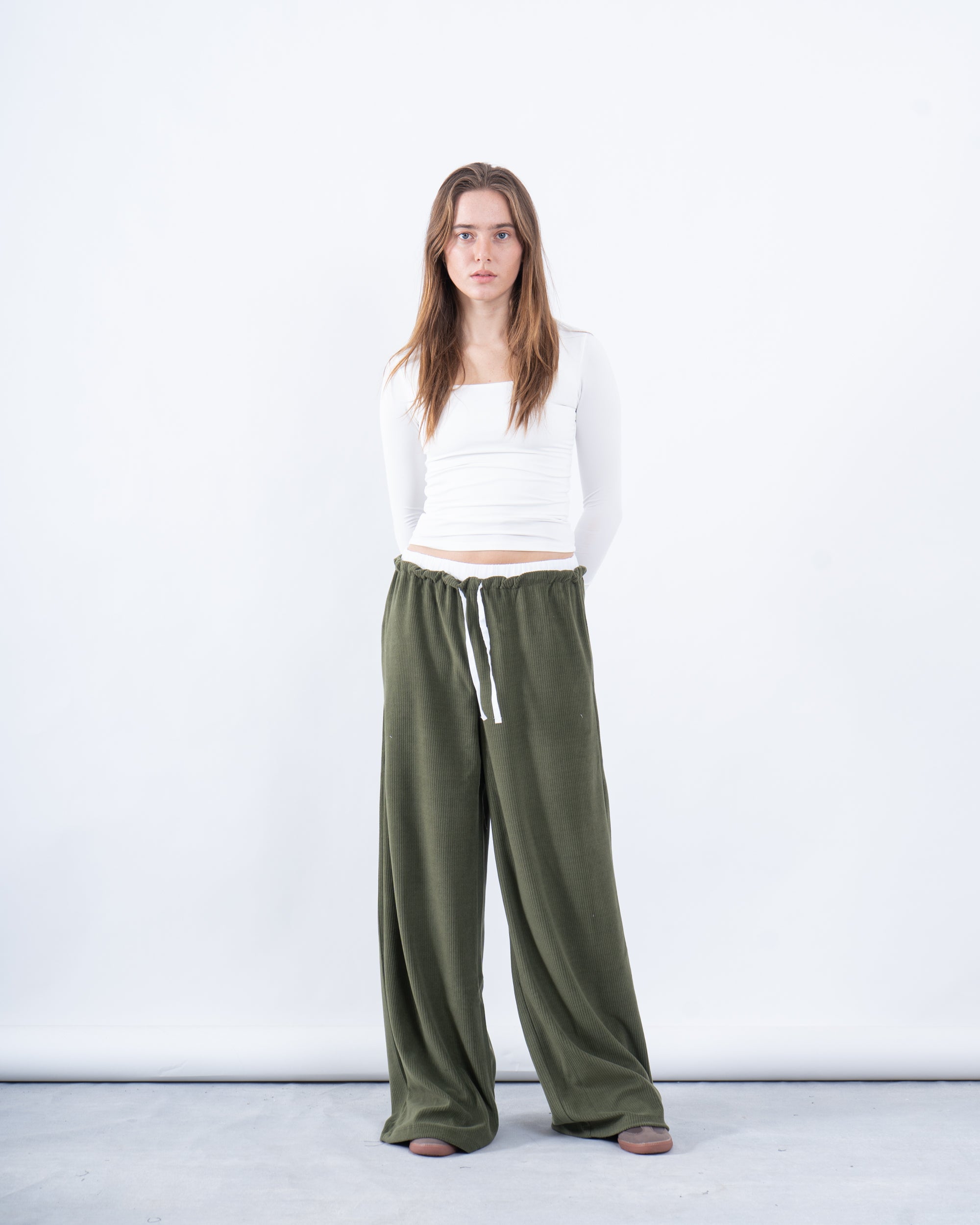 • Fit: Wide-leg silhouette with an elastic drawstring waistband for a flexible fit
