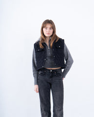 The ultimate layering piece for a cool and modern look. This quilted cropped vest combines style and function, featuring a boxy, cropped silhouette and soft quilted texture. Designed to be versatile, it’s perfect for adding warmth without sacrificing style.