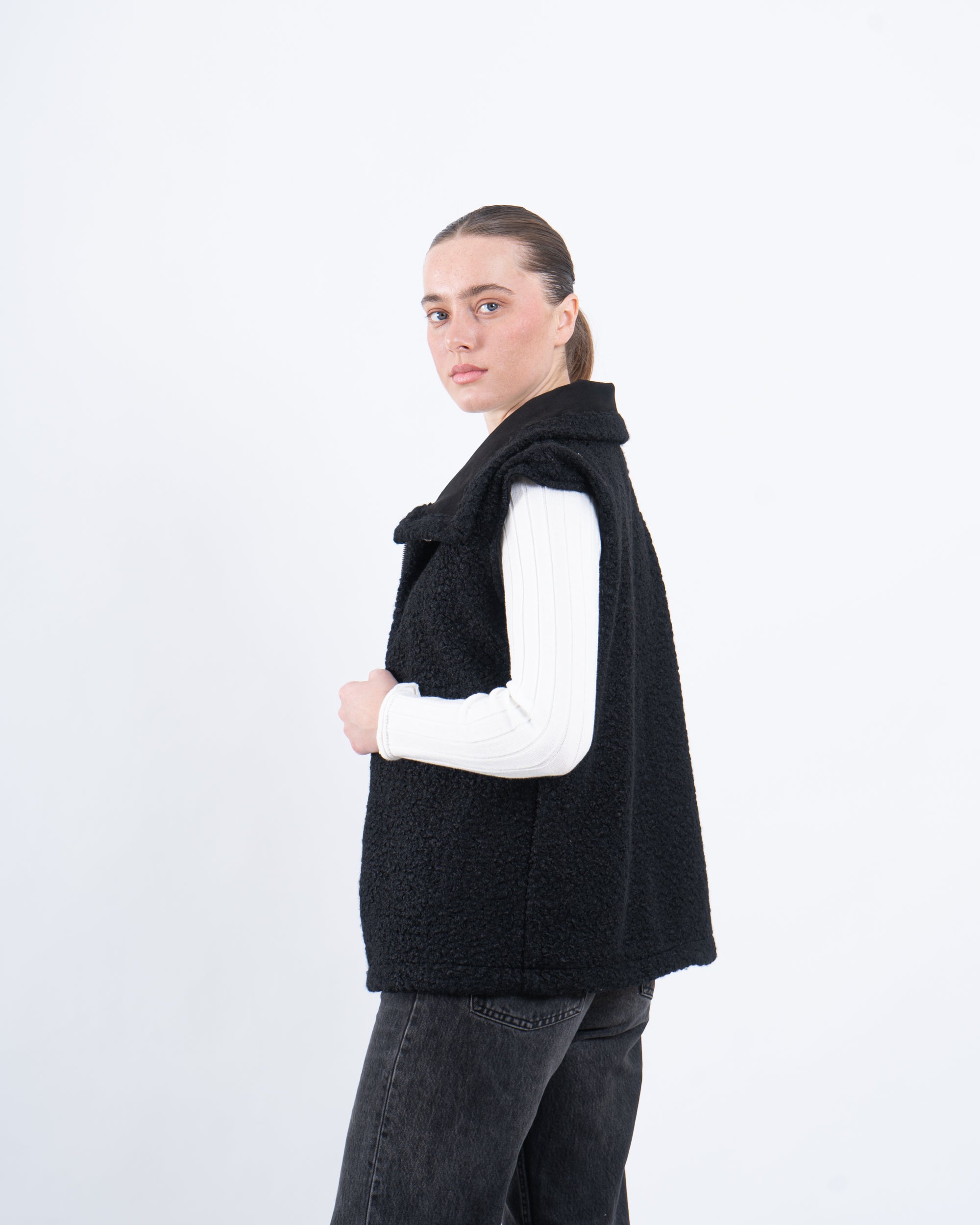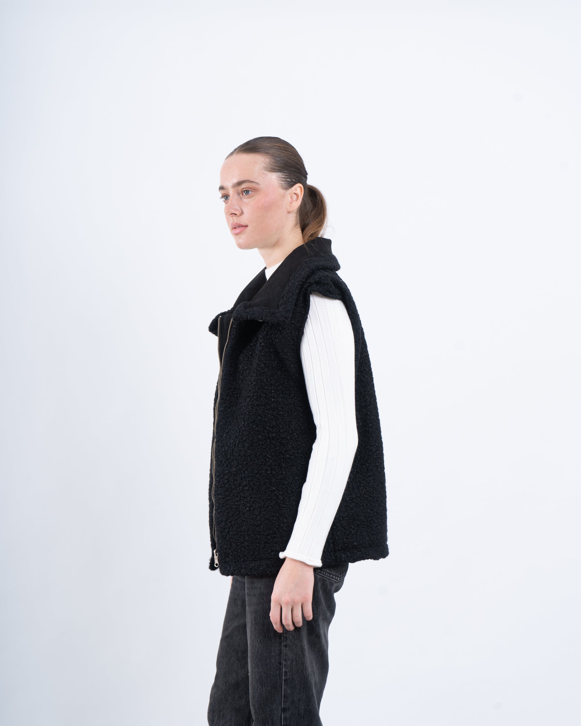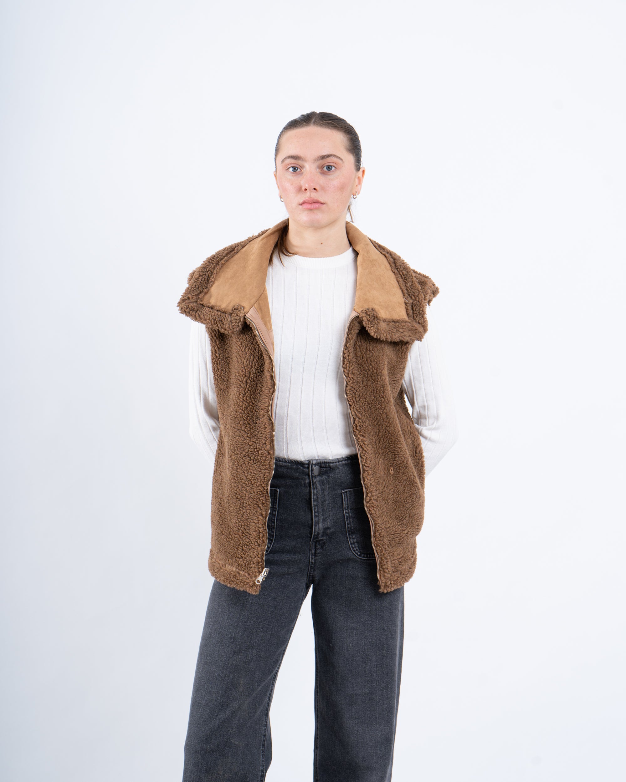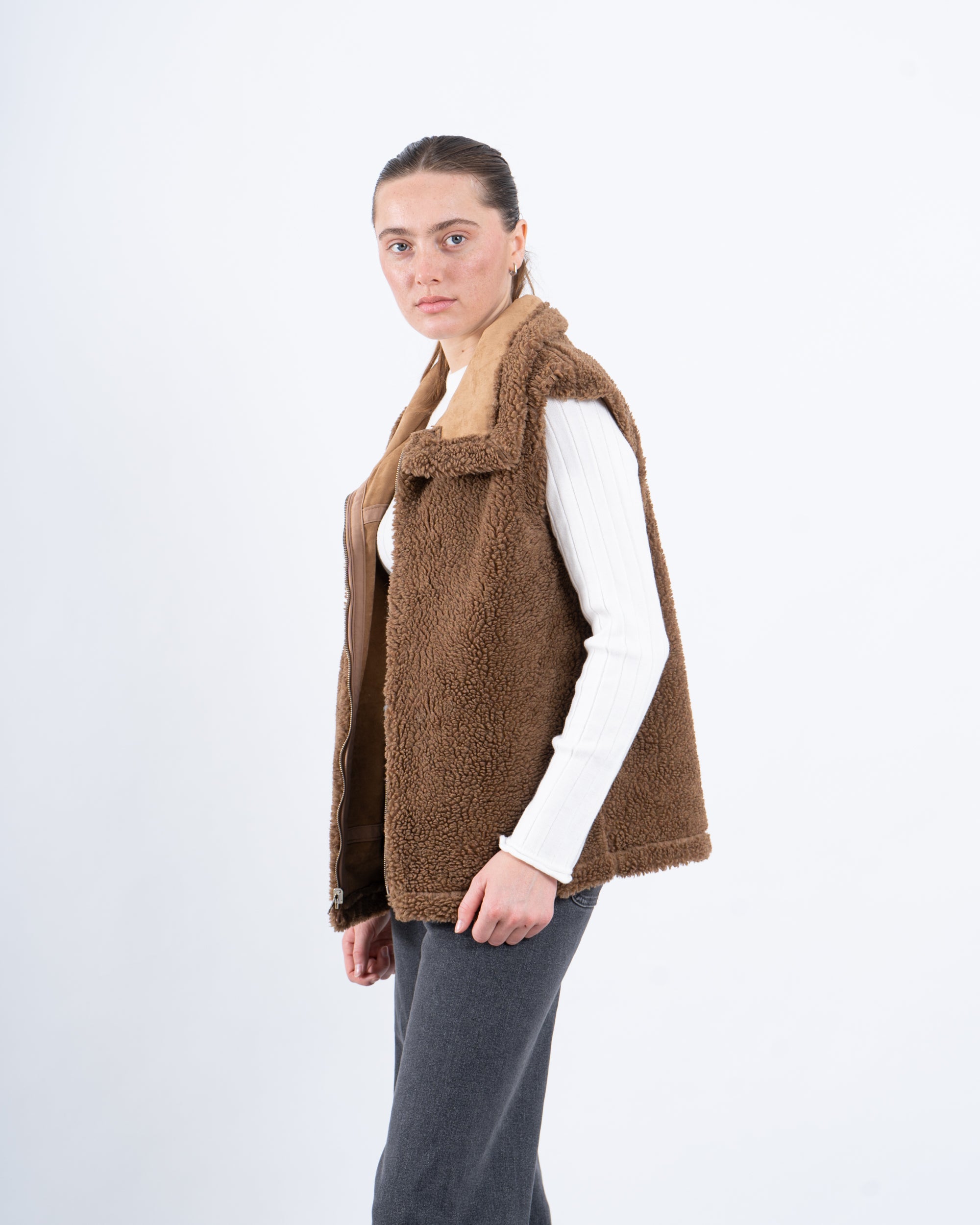 This versatile double-face faux shearling vest is the ultimate layering piece for transitional seasons. With a cozy shearling interior and a smooth faux suede or textured exterior, it offers two stylish looks in one. Featuring a zip-up front, wide lapel collar, and functional side pockets, this vest is perfect for adding warmth and texture to your outfits.
