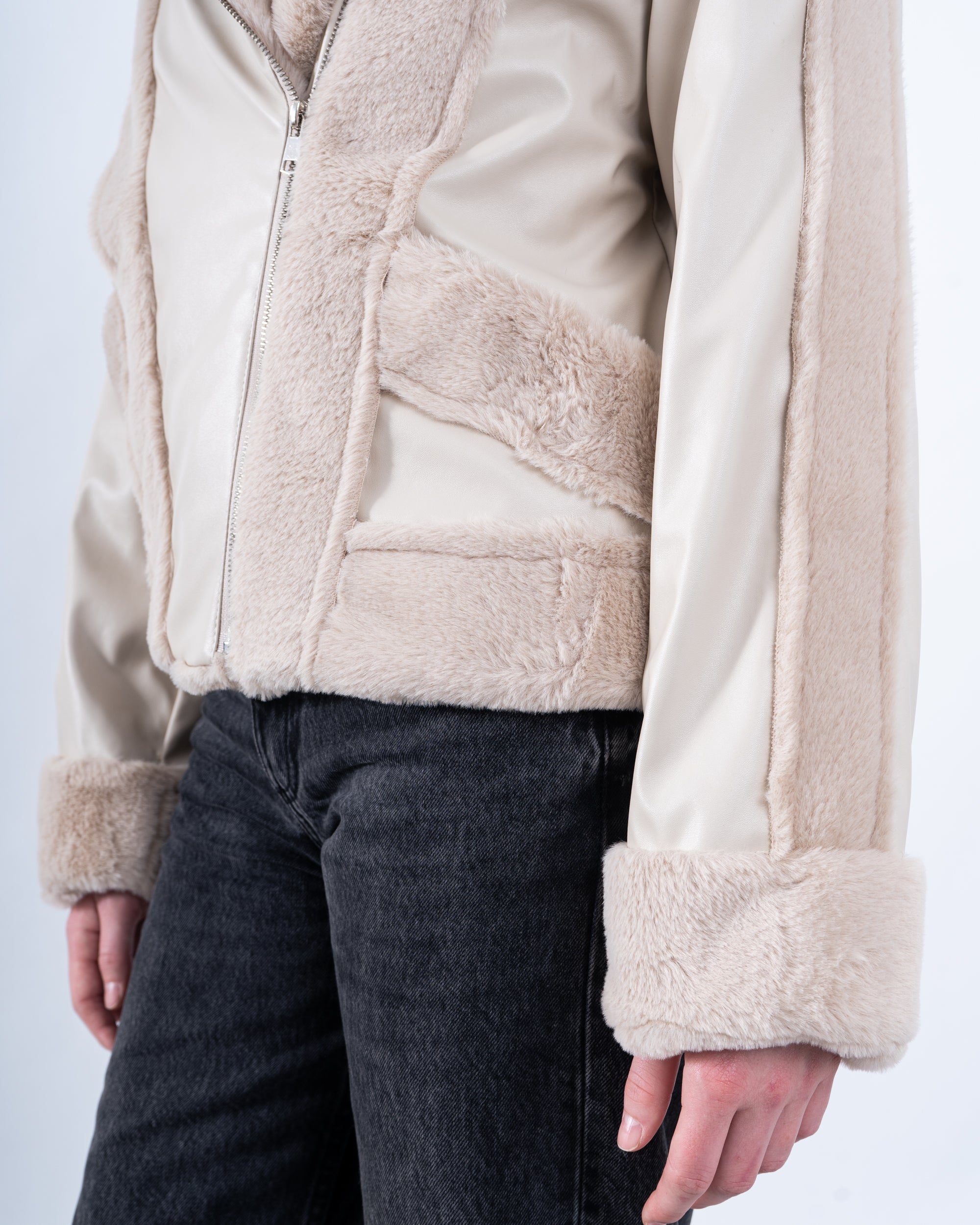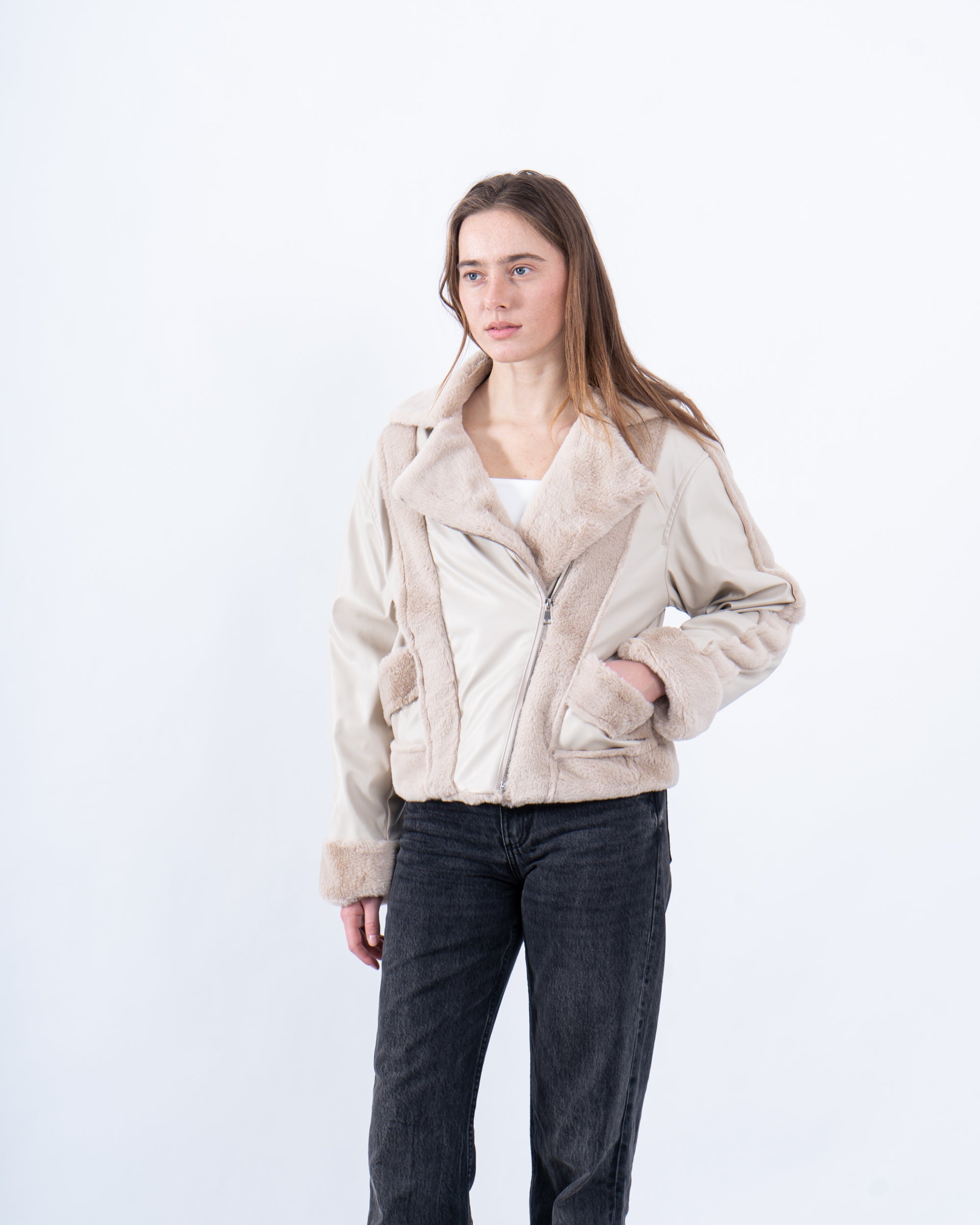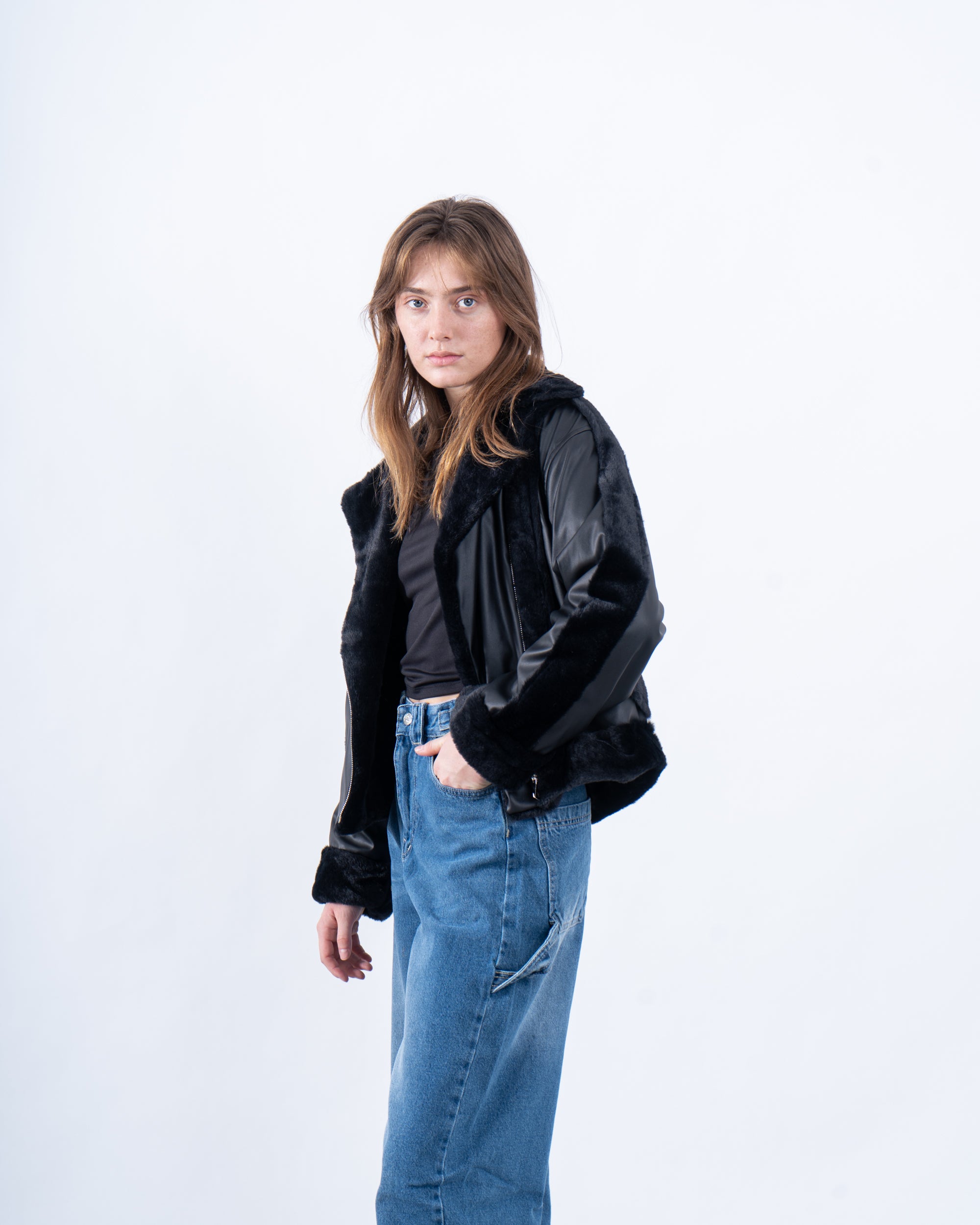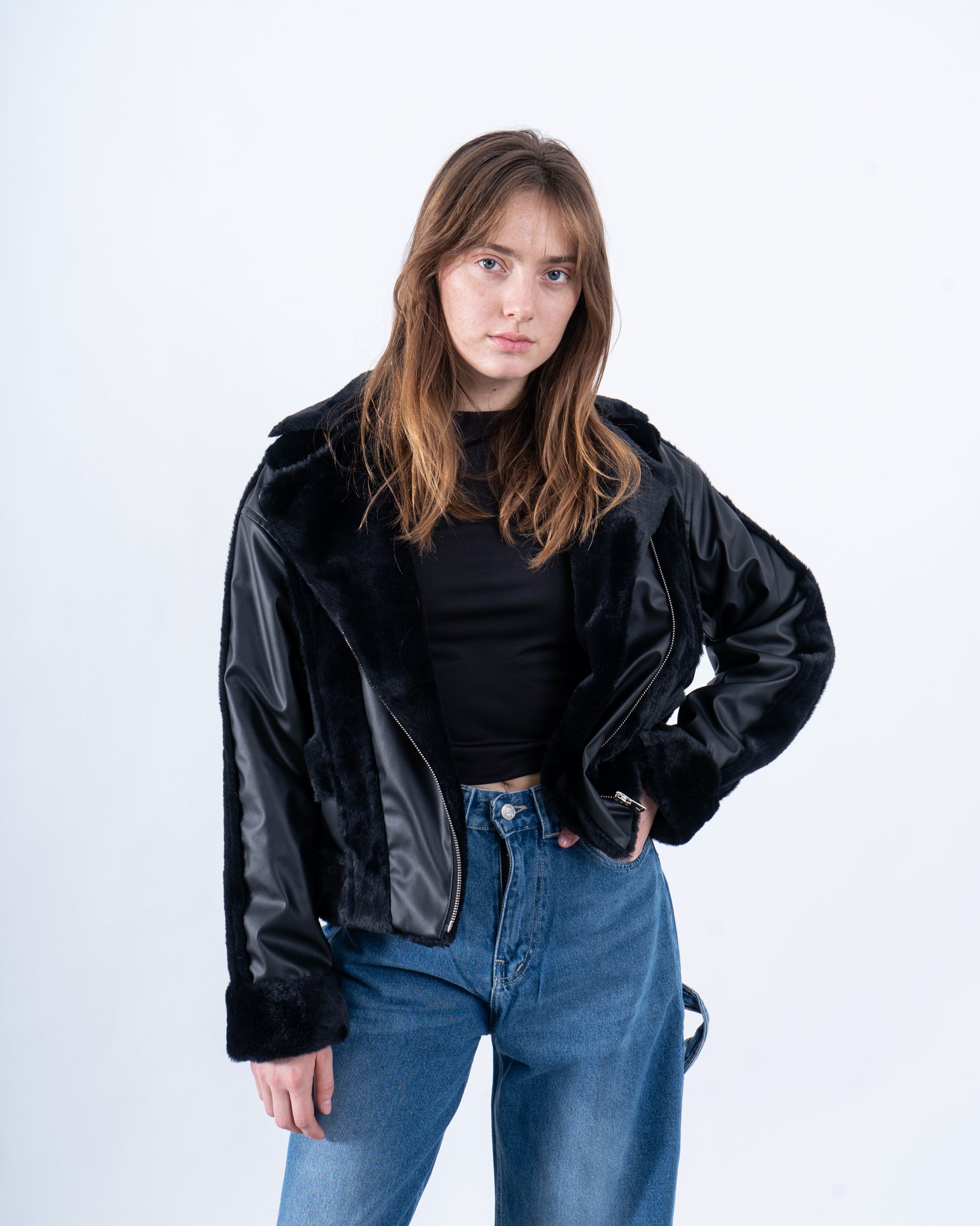 A timeless combination of leather and fur, this jacket is designed for style and warmth during cooler seasons. Its fur-lined interior ensures comfort, while the leather exterior offers a sleek, polished look.