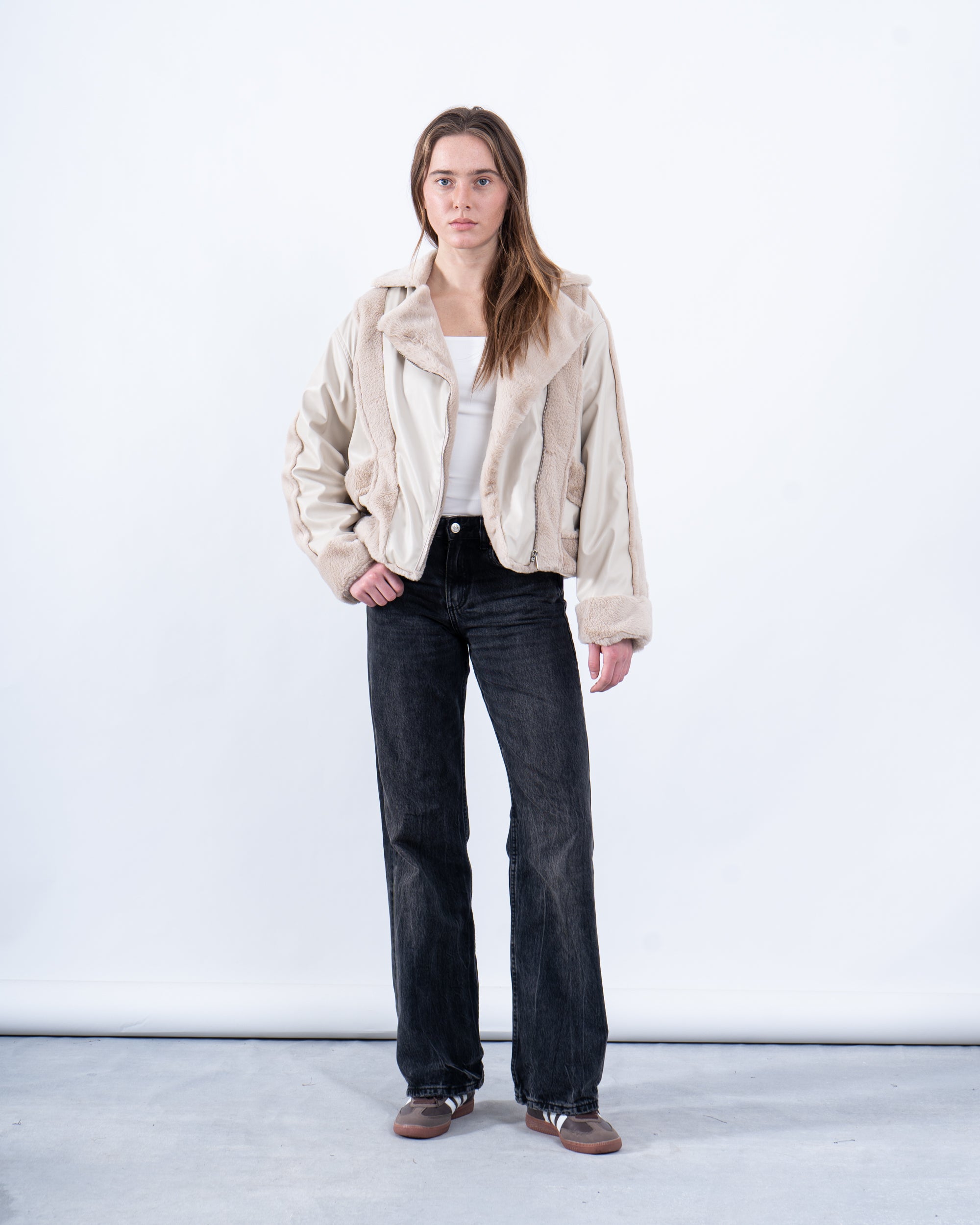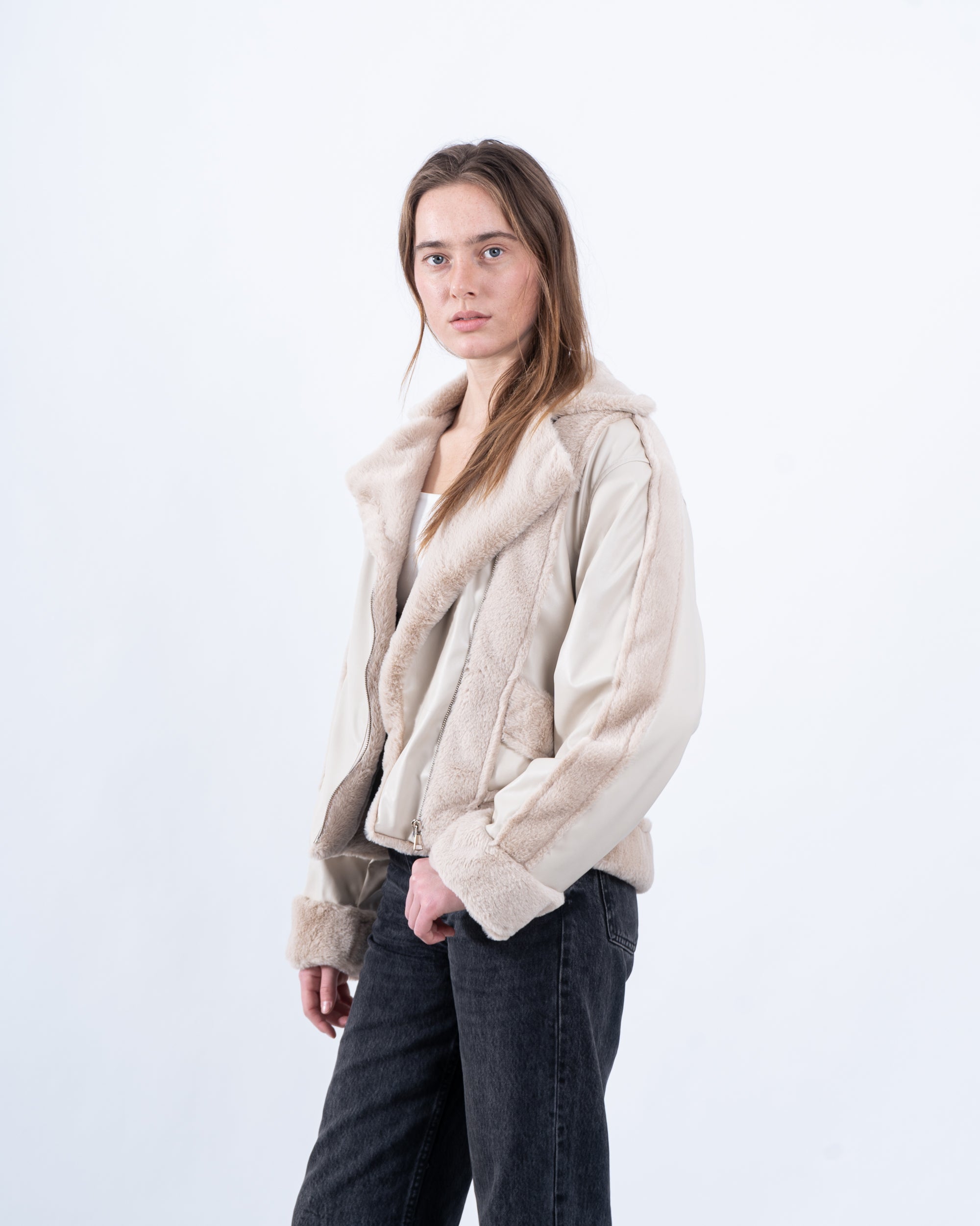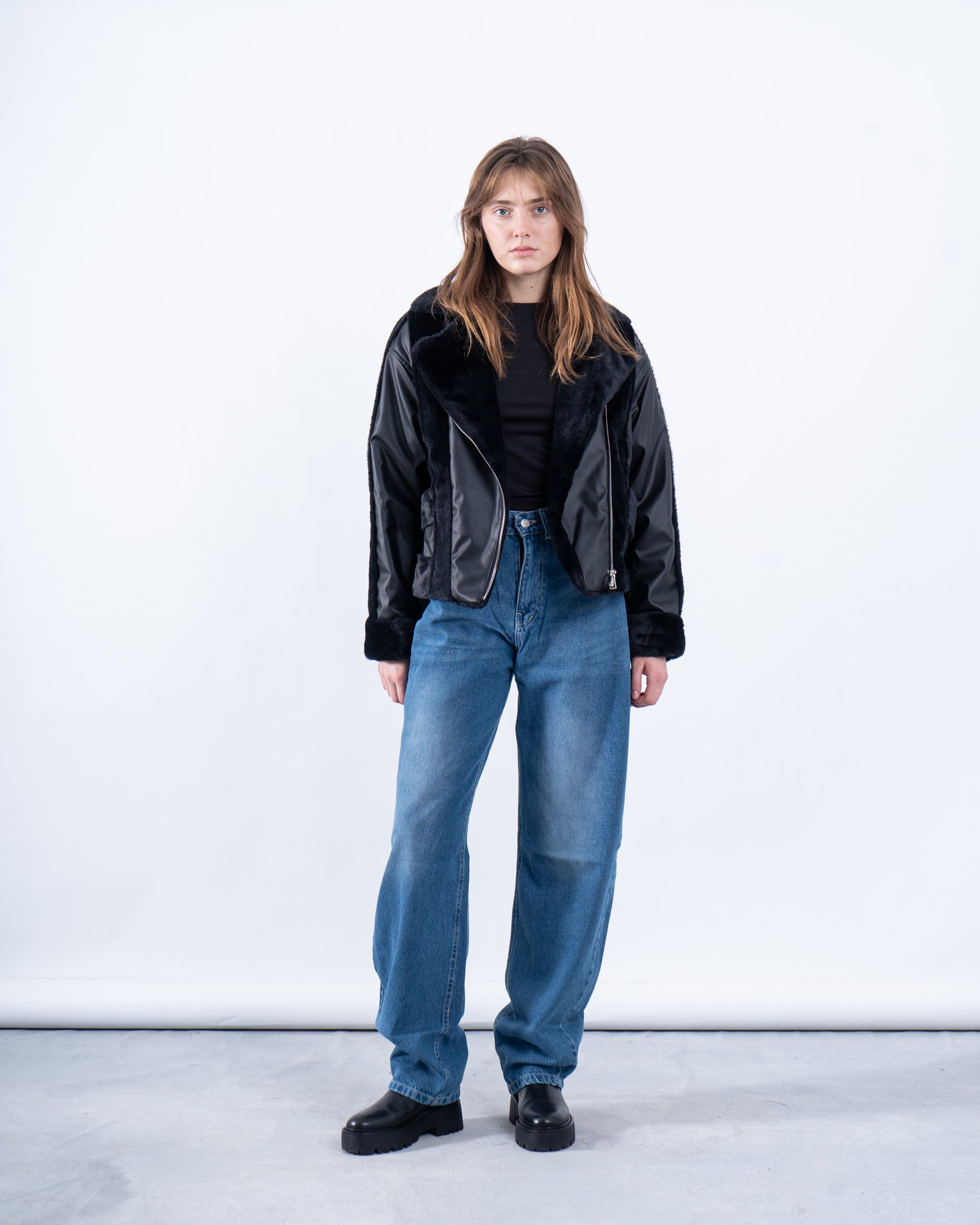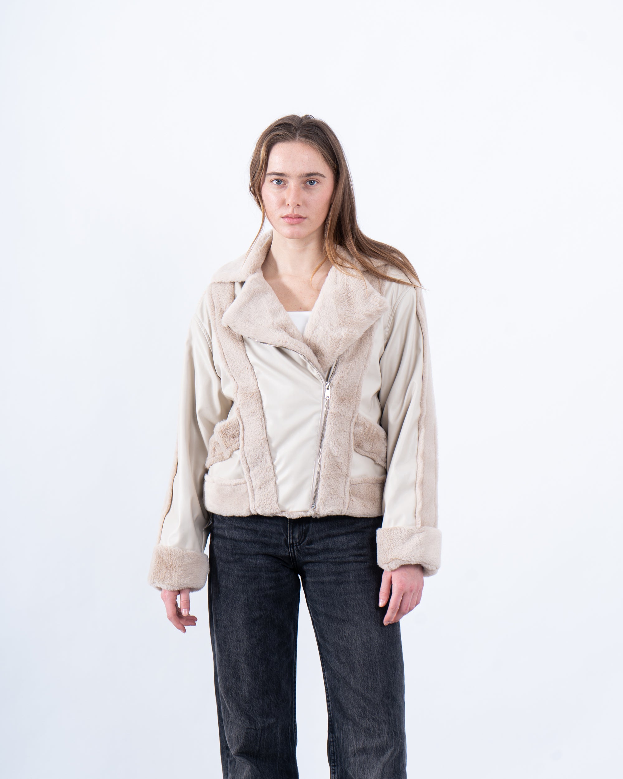 A timeless combination of leather and fur, this jacket is designed for style and warmth during cooler seasons. Its fur-lined interior ensures comfort, while the leather exterior offers a sleek, polished look.