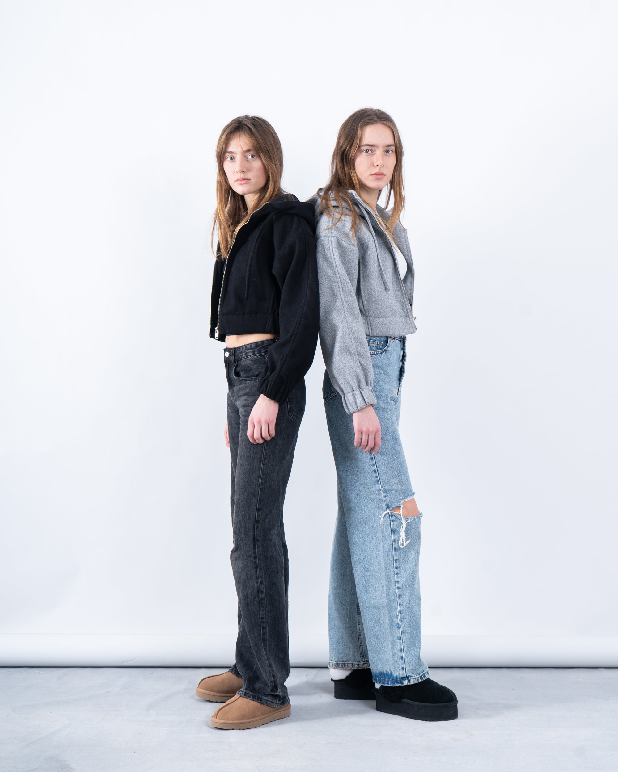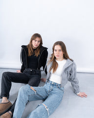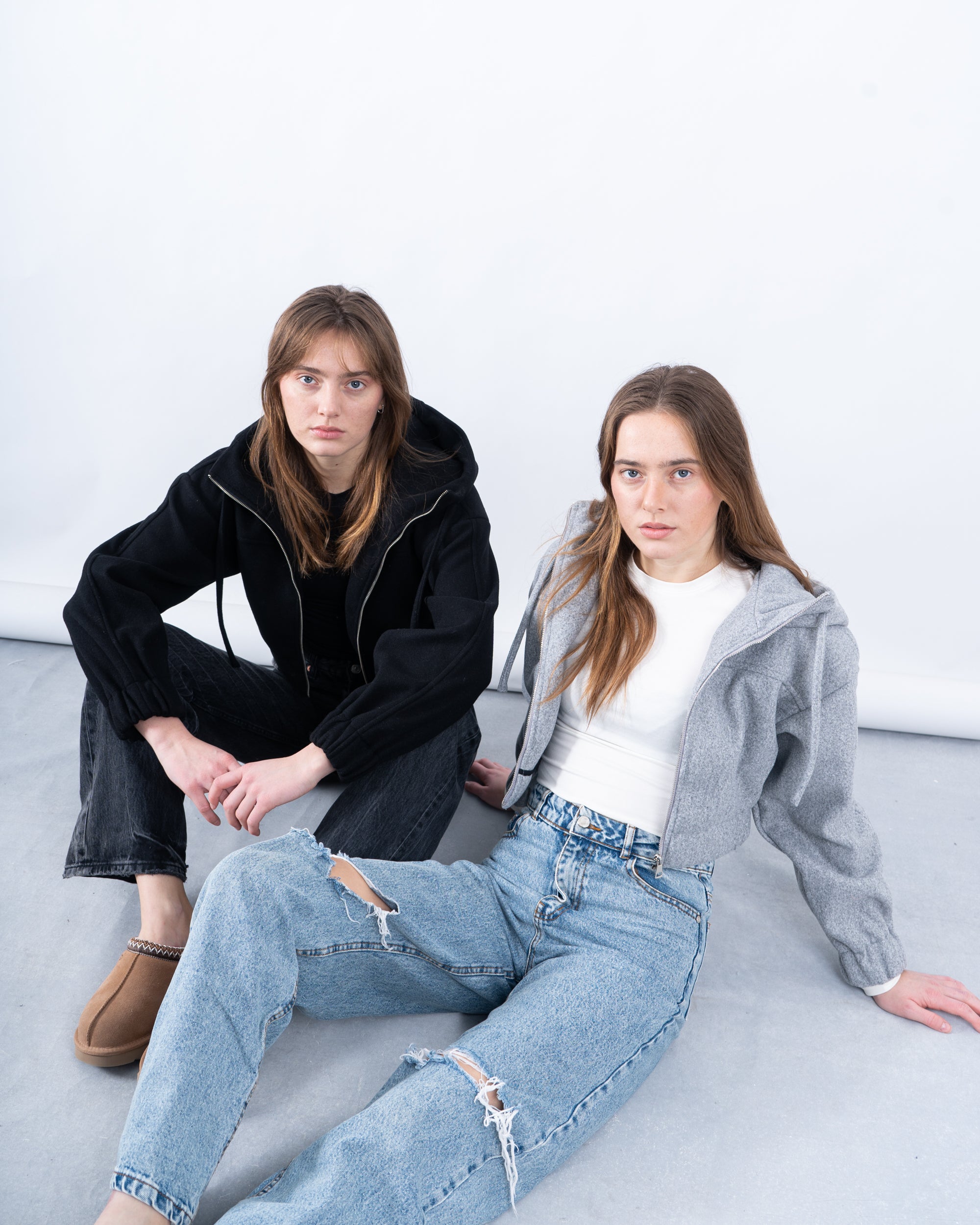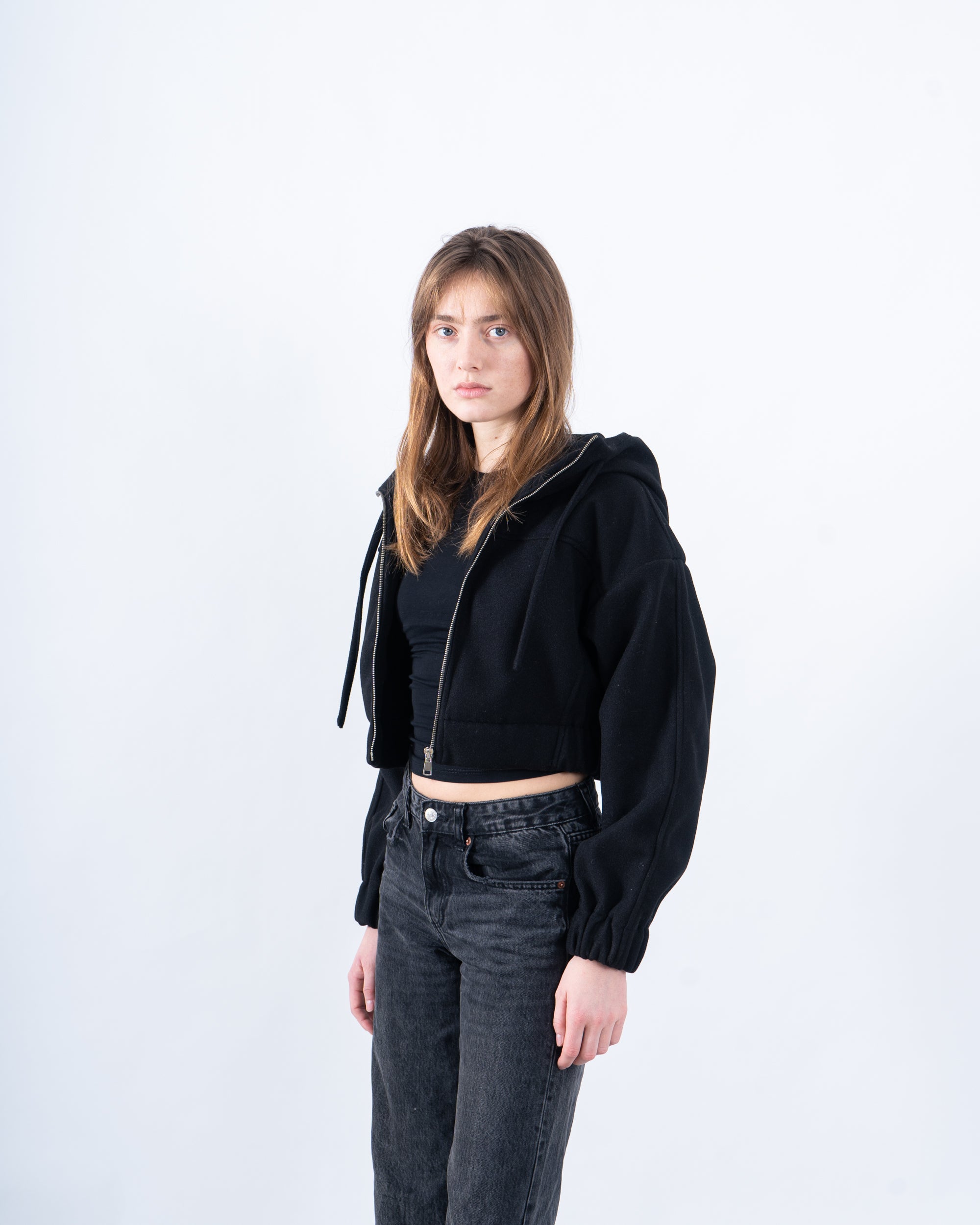 Stay cozy and stylish with this cropped zip-up hoodie, perfect for layering or wearing on its own. A versatile essential for casual, everyday looks.