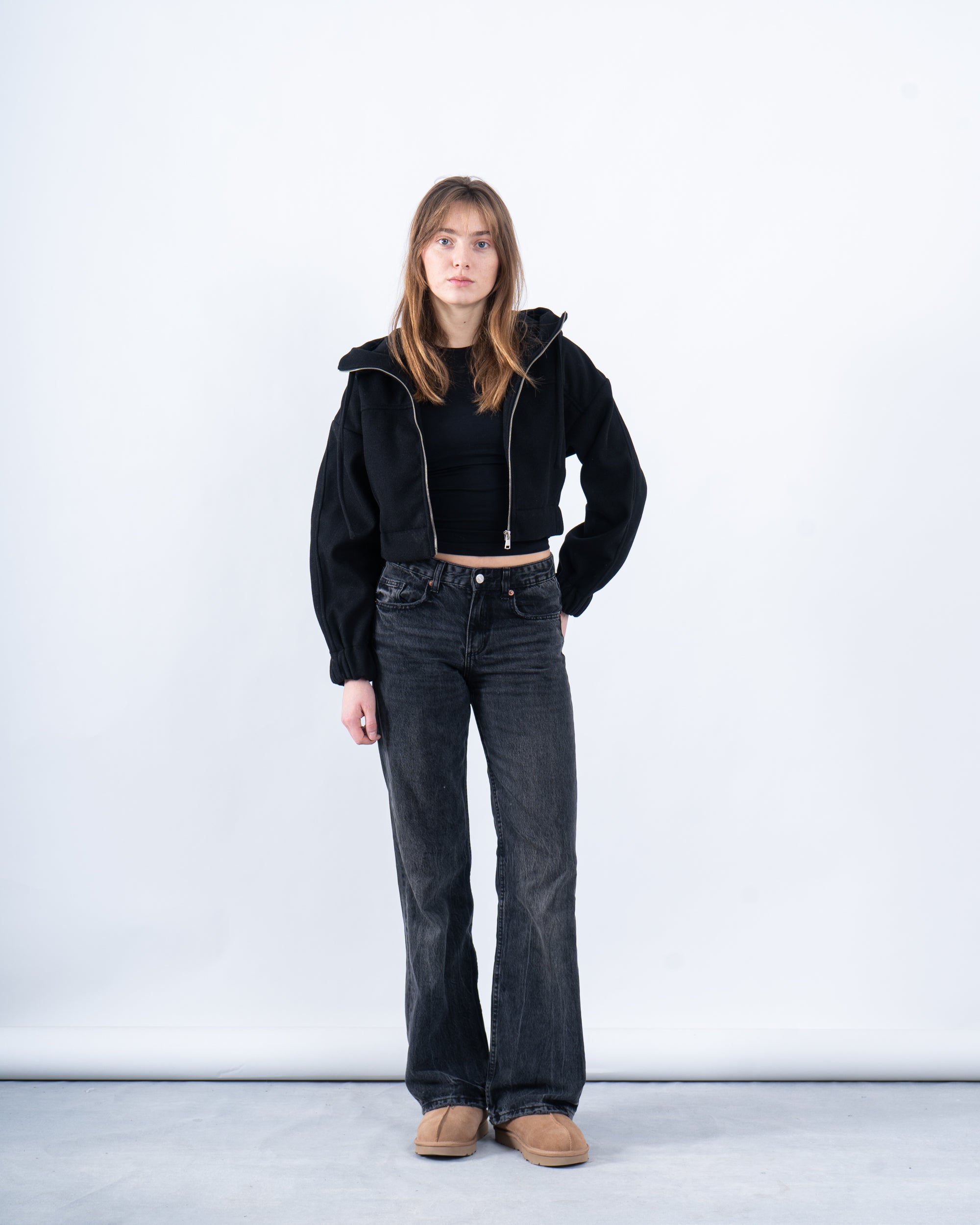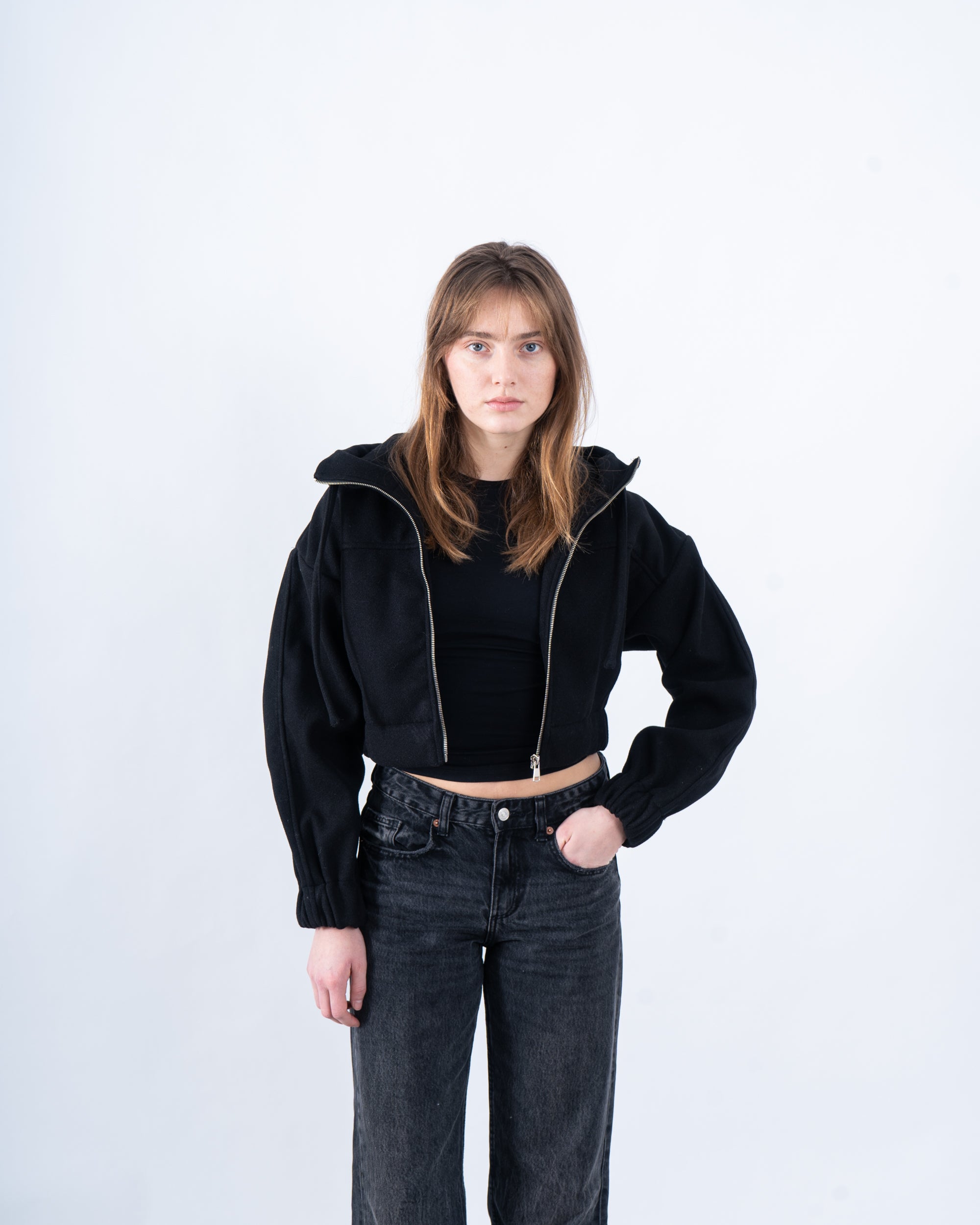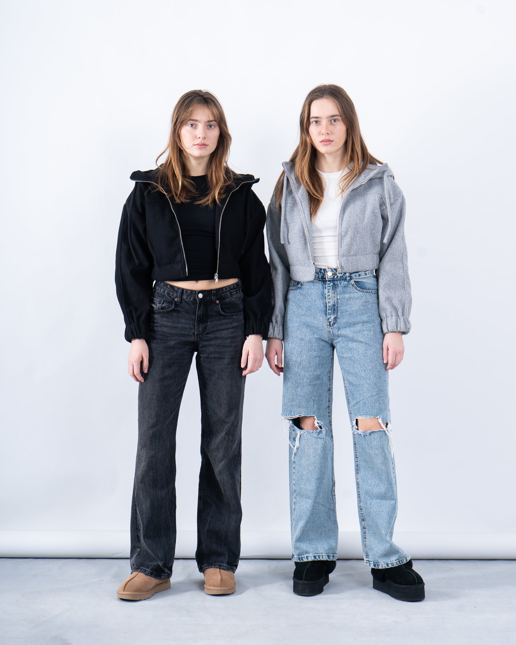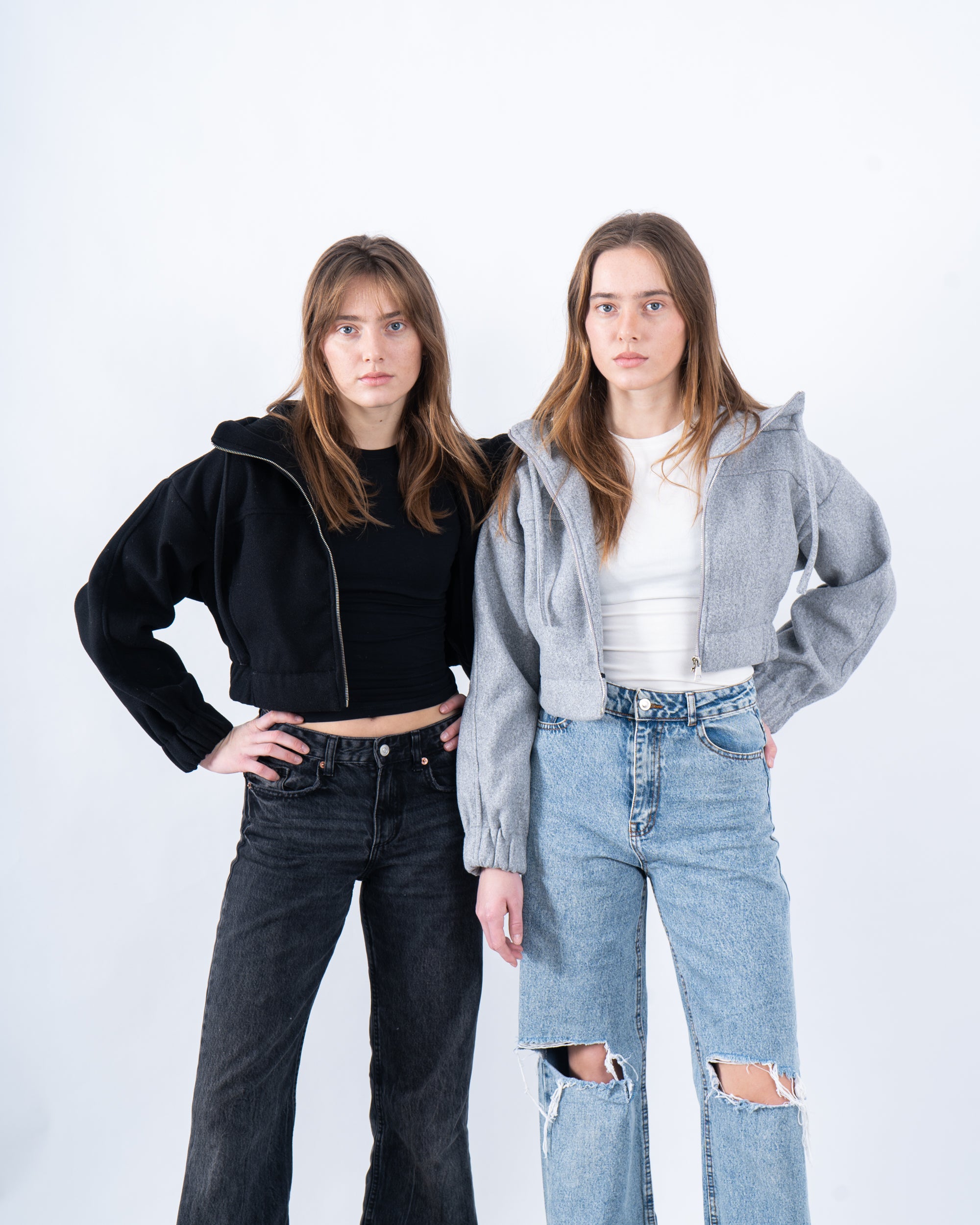 Stay cozy and stylish with this cropped zip-up hoodie, perfect for layering or wearing on its own. A versatile essential for casual, everyday looks.