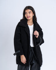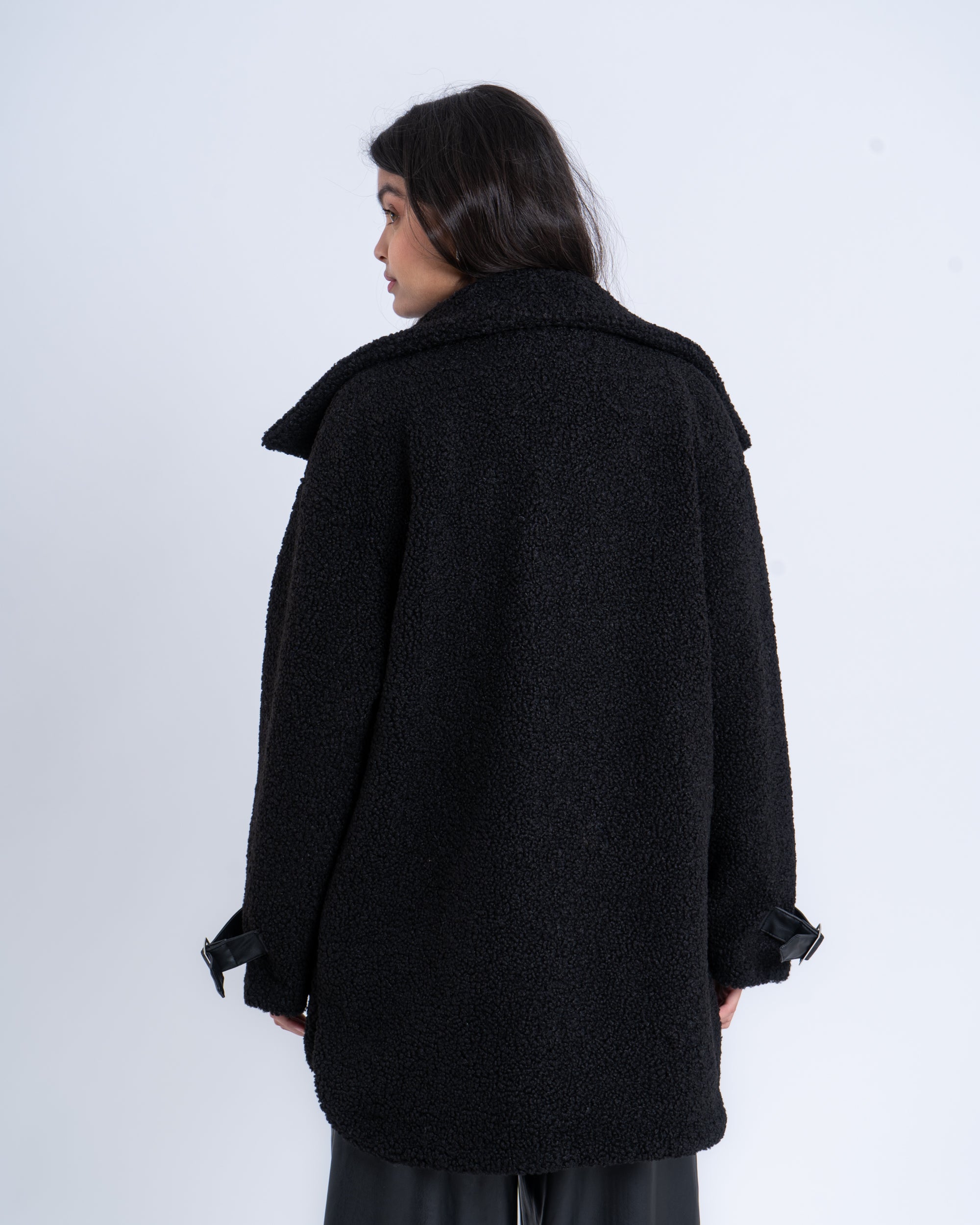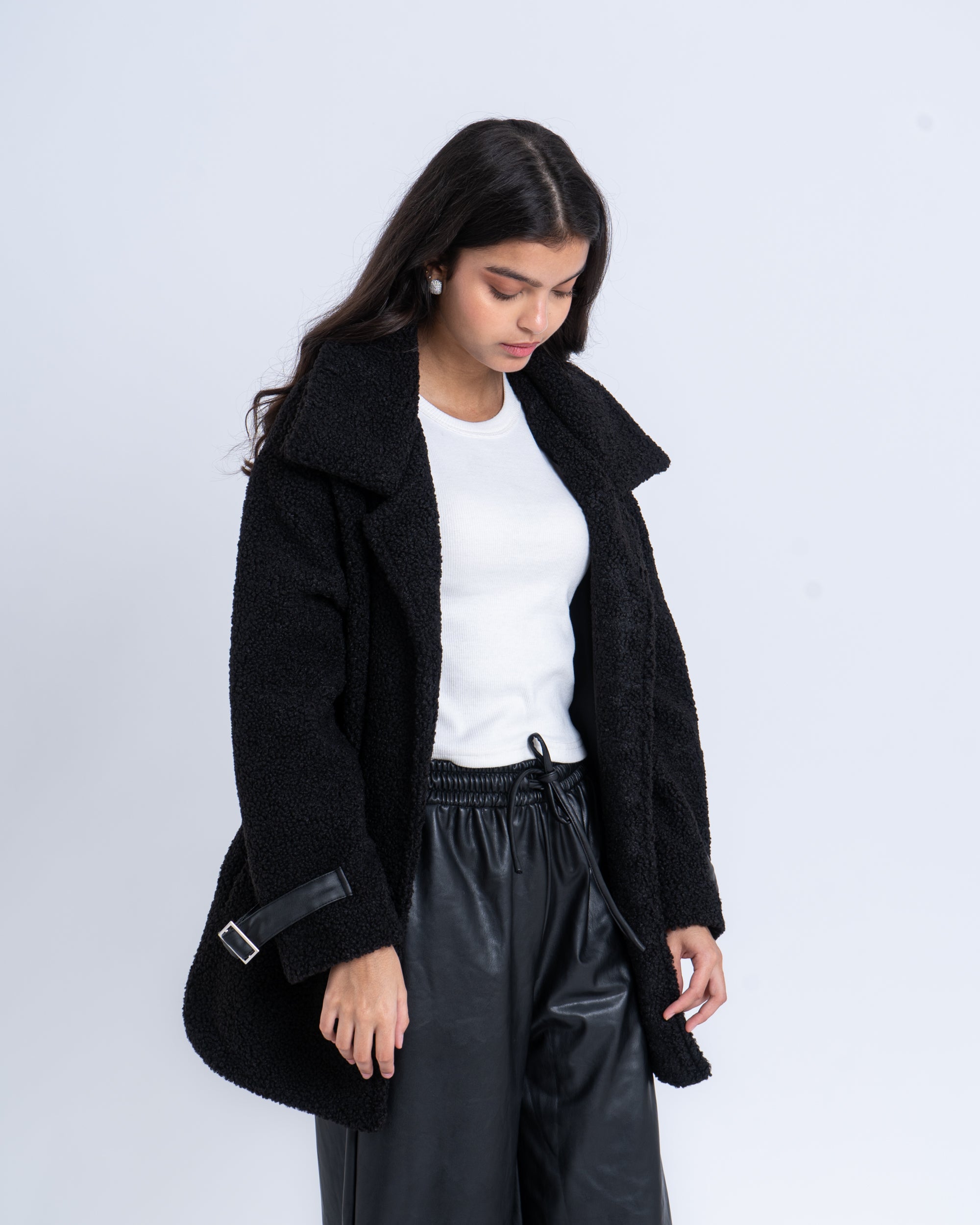 Wrap yourself in cozy warmth with this oversized teddy coat, available in classic black and chic camel. Made from ultra-soft teddy fabric, this coat provides both comfort and style, perfect for chilly days. The oversized fit and large lapel collar give it a fashionable, relaxed look, while the front pockets add practicality.