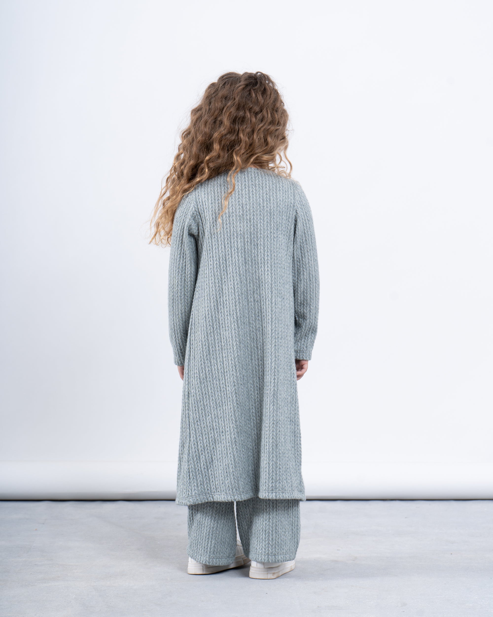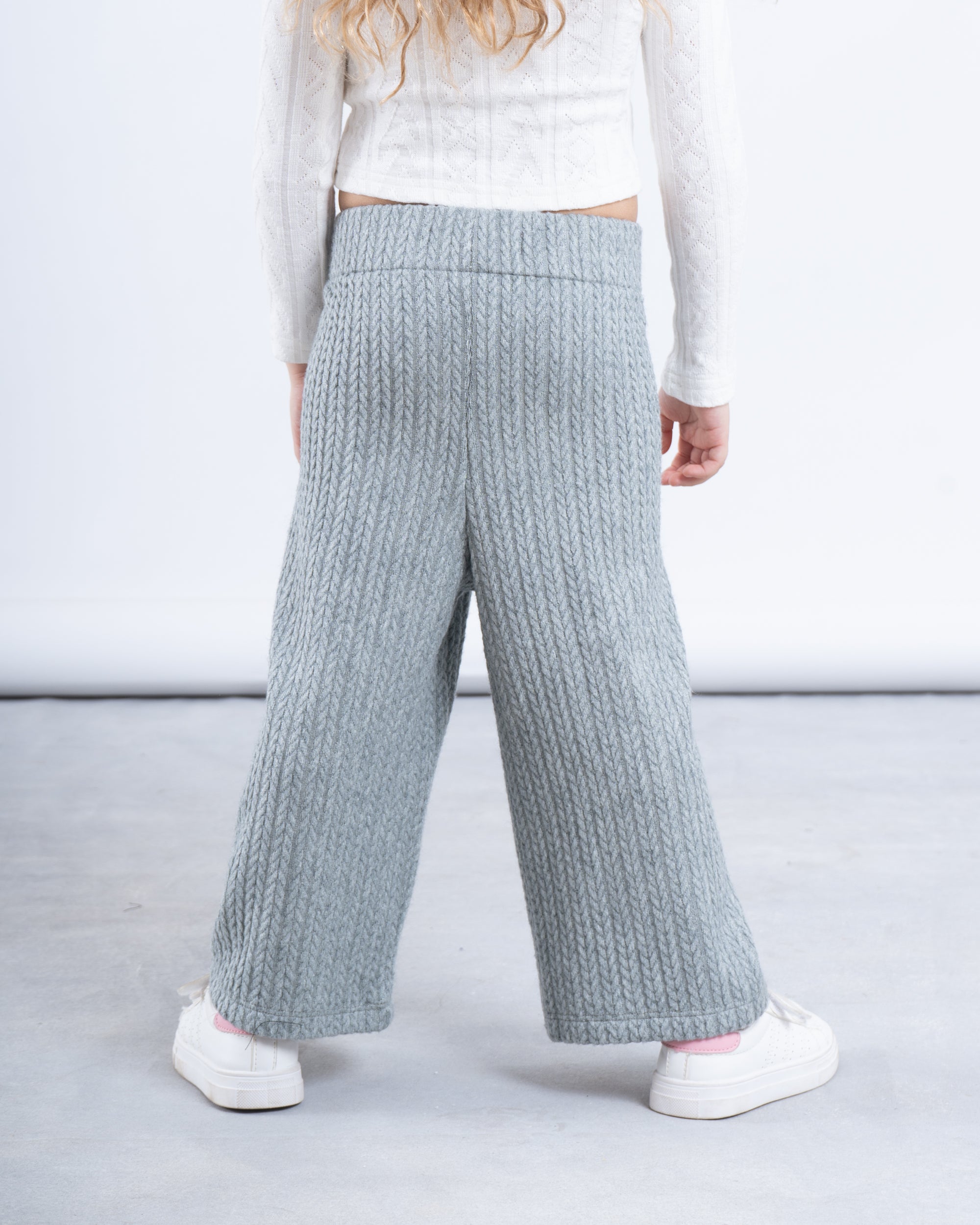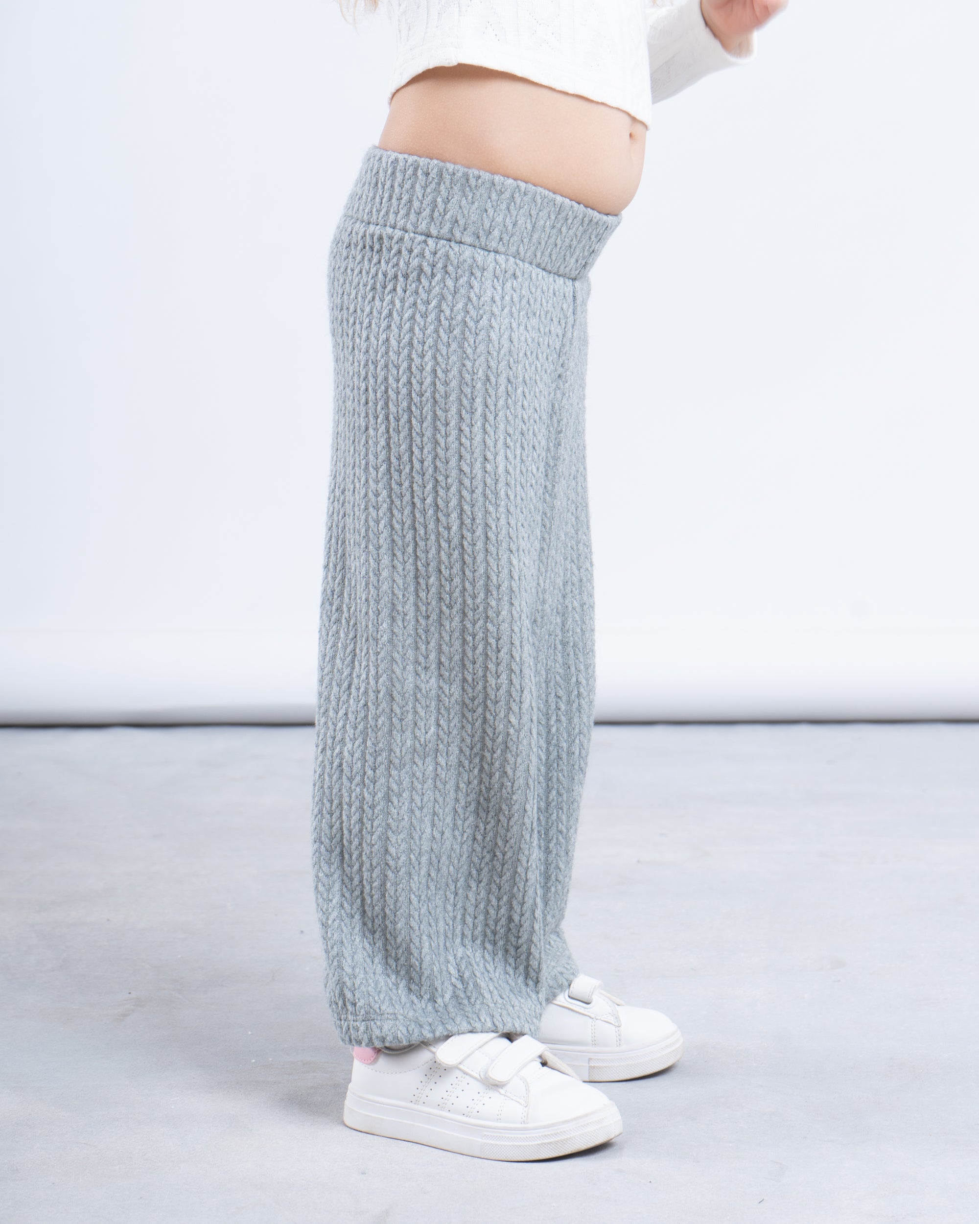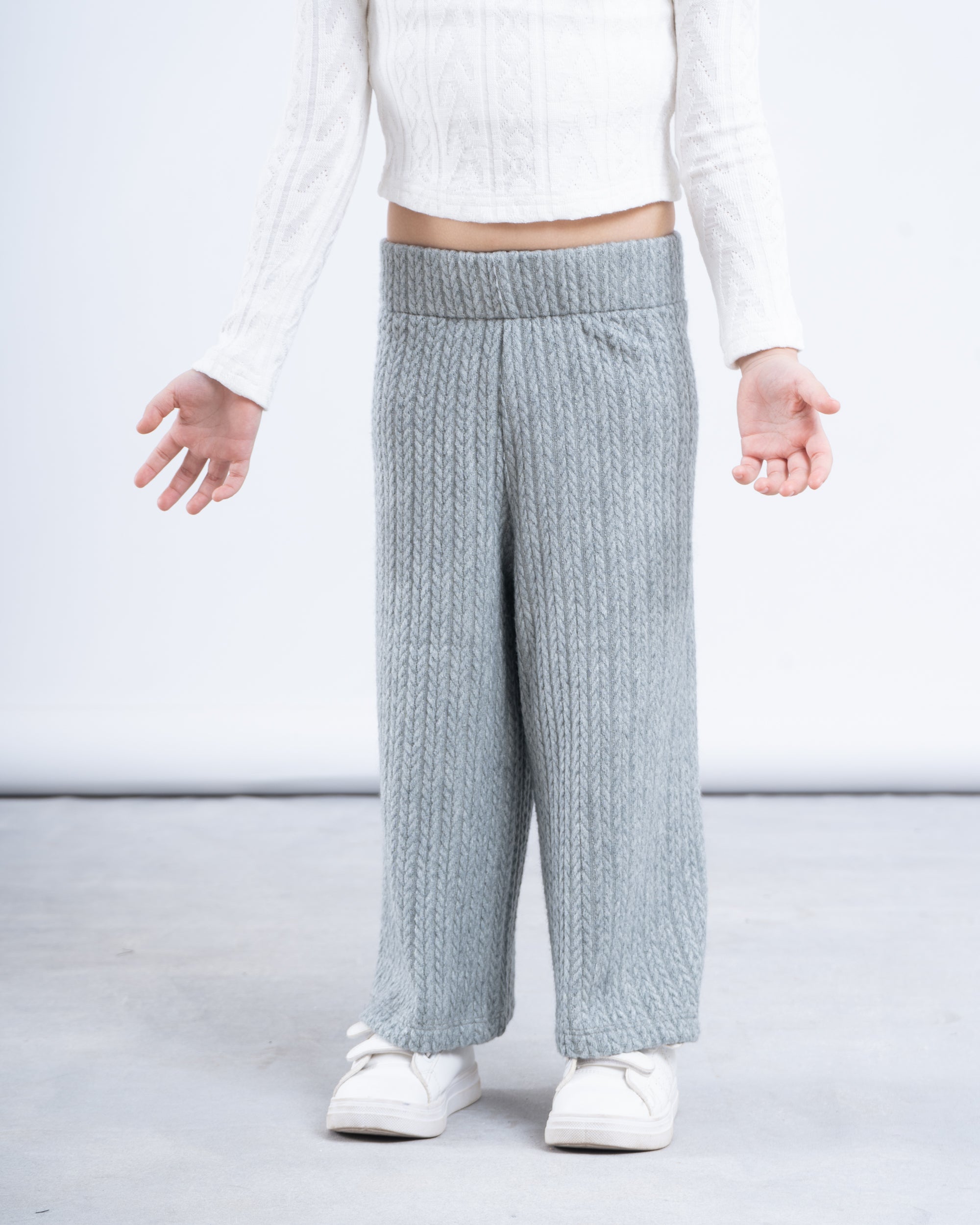 These ribbed knit wide-leg pants are a cozy and stylish choice for kids. Featuring a soft knit texture and an elastic waistband for all-day comfort, these pants are versatile enough to be styled with matching pieces or standalone looks. Pair with the matching crop top and longline cardigan for a coordinated outfit that exudes effortless charm.