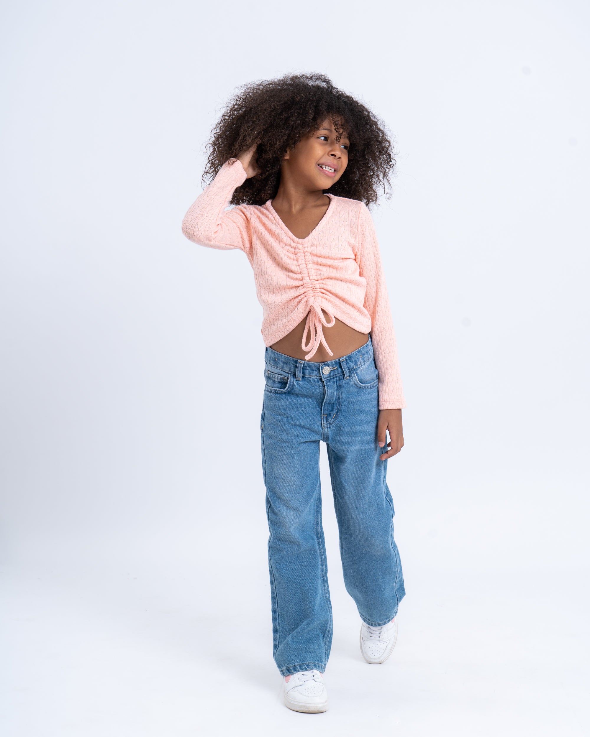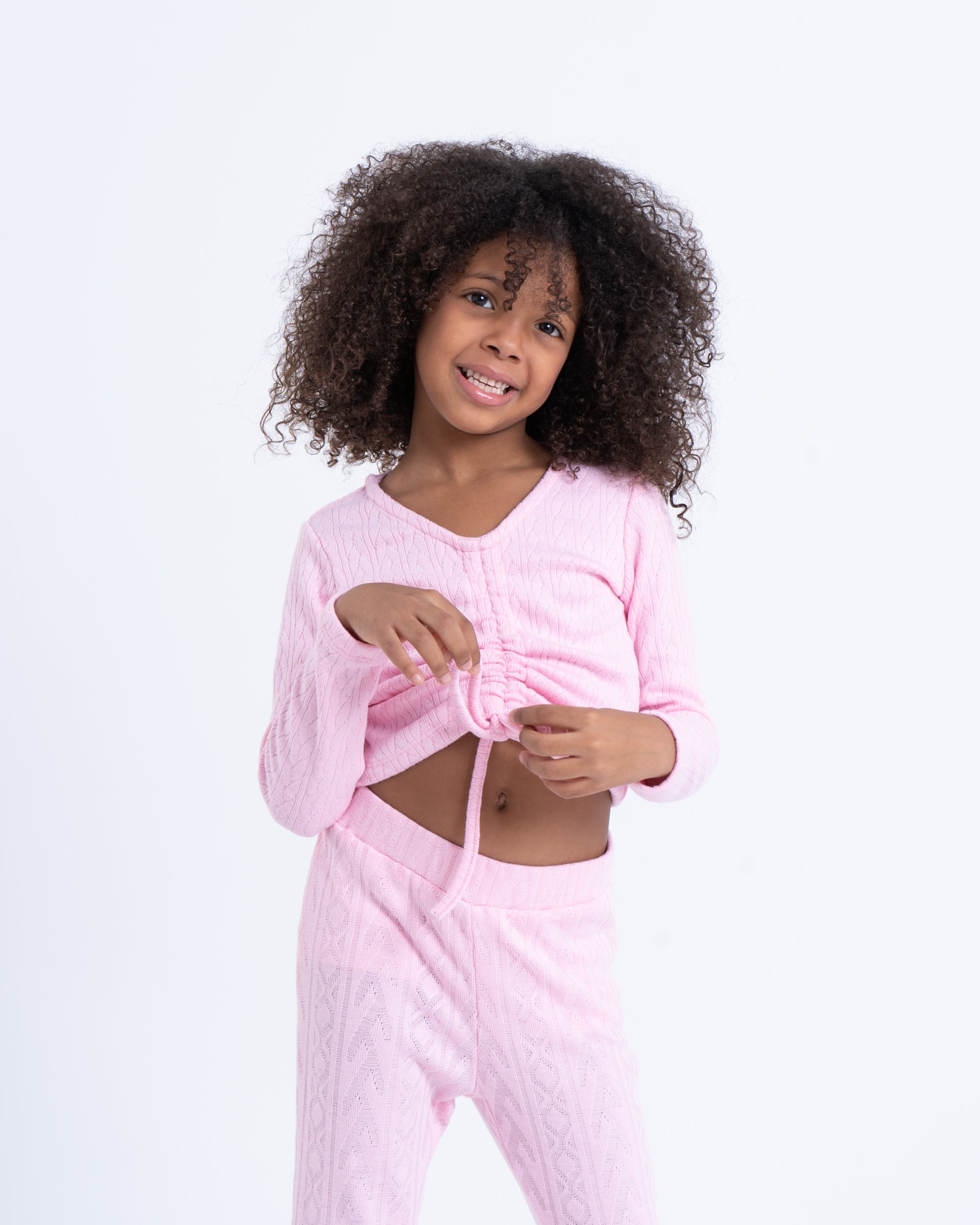 This stylish knit top features an adjustable drawstring that creates a flattering ruched effect, adding a modern twist to a classic piece. The soft, stretchy fabric ensures a comfortable fit while the colors makes it easy to pair with different styles. Perfect for a day of play or a casual outing, this top brings versatility to your little one’s wardrobe.