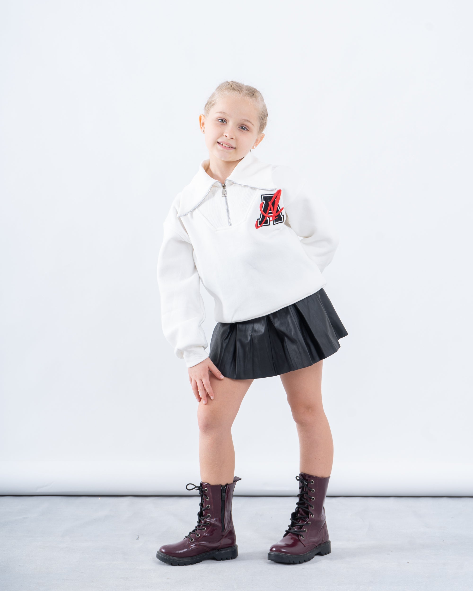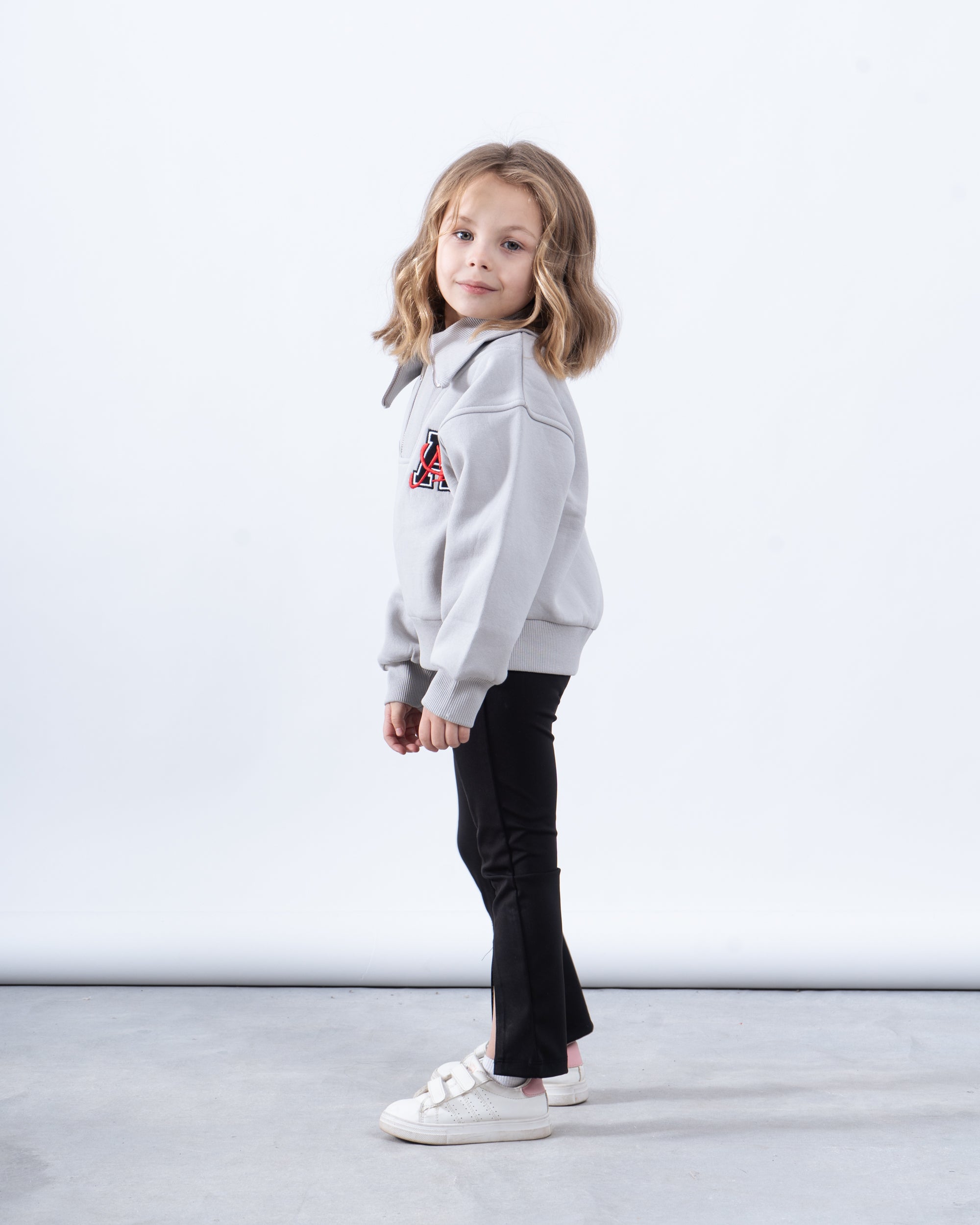 This trendy sweatshirt features a ribbed oversized collar and a half-zip front, combining casual comfort with a stylish edge. The embroidered patch detail adds a bold statement, while the relaxed fit ensures ease of movement. Perfect for cooler days, this piece blends effortlessly with any wardrobe.