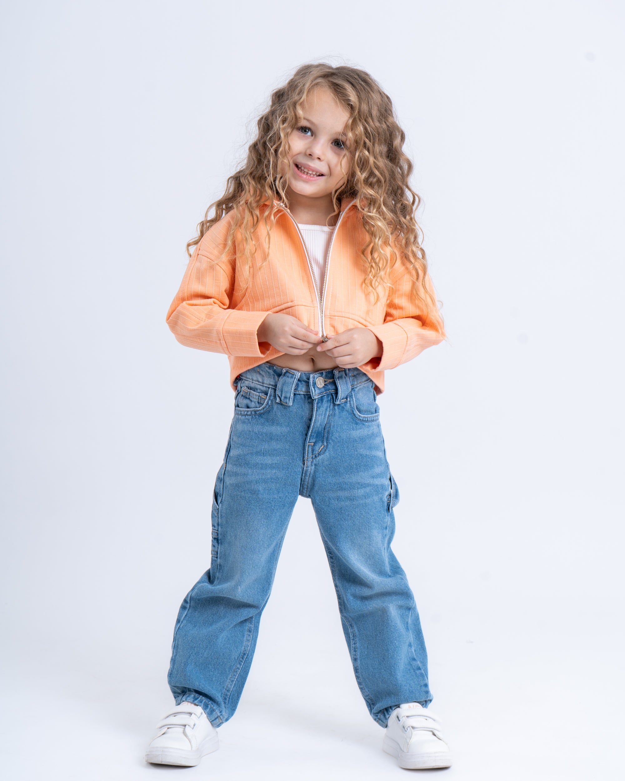 • Fabric & Fit: Made from soft ribbed fabric with a cropped, relaxed fit. The zip-up front allows for easy on and off, perfect for kids on the go.