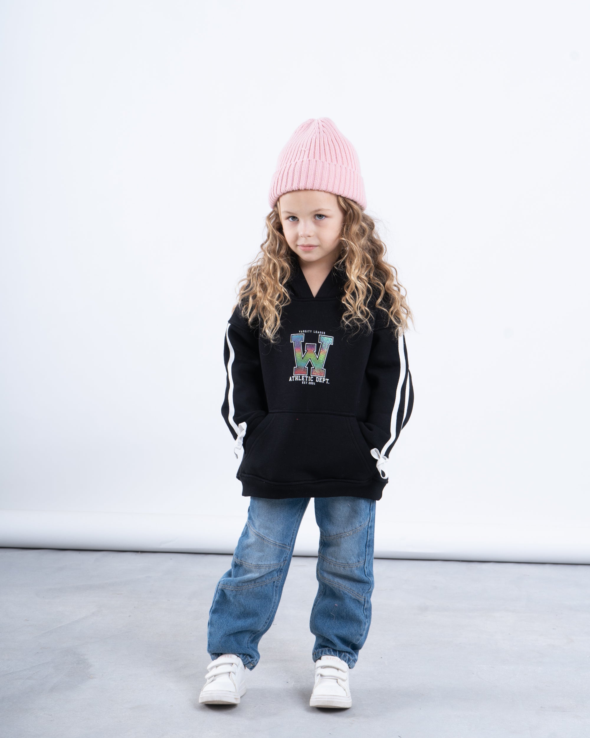 Bring sporty style to your little one’s wardrobe with this Athletic Stripe Graphic Hoodie. Designed with bold graphic lettering, contrast stripe details on the sleeves, and a relaxed hooded fit, it’s the ultimate combination of comfort and style. Perfect for staying cozy on casual days or layering up for outdoor adventures.