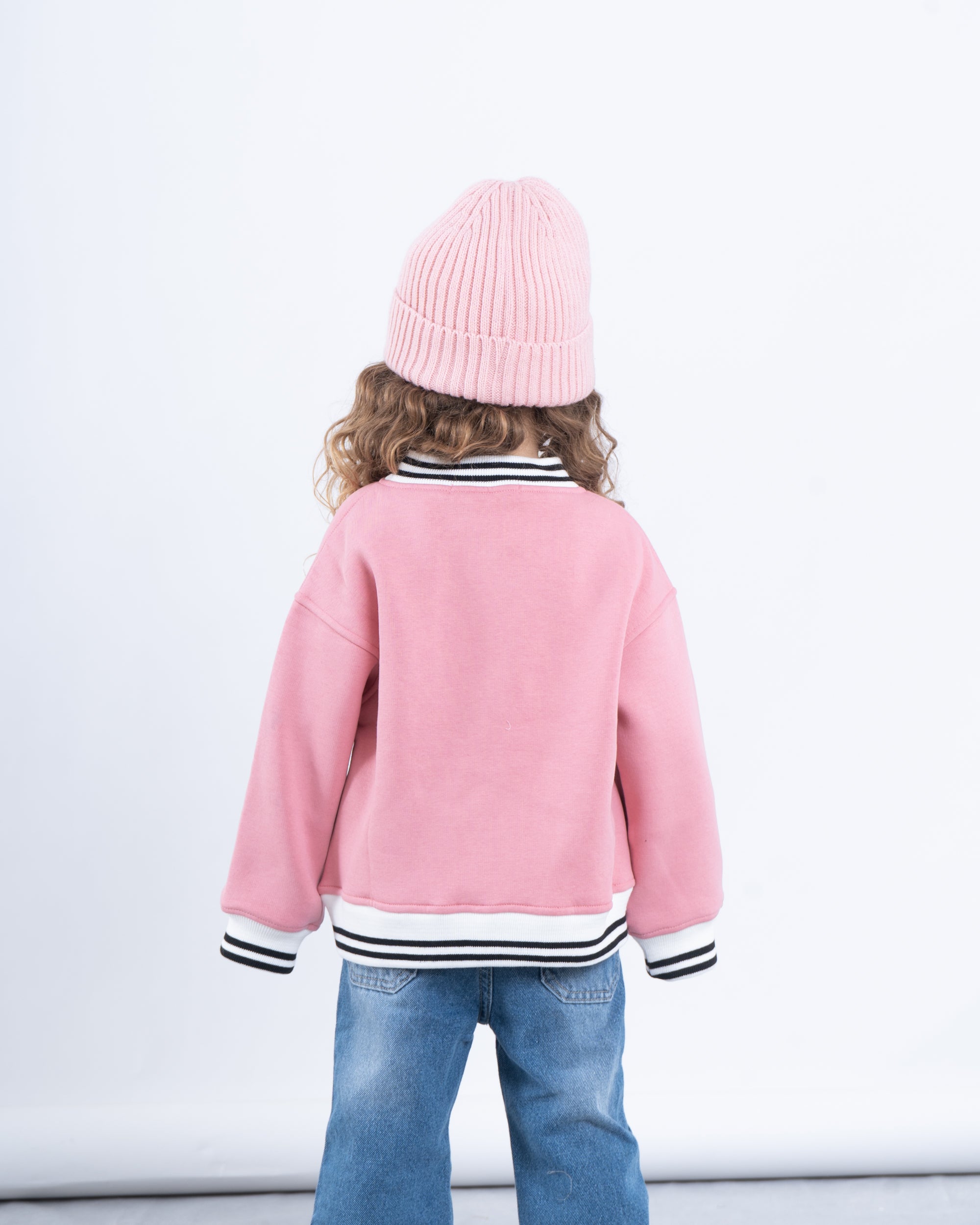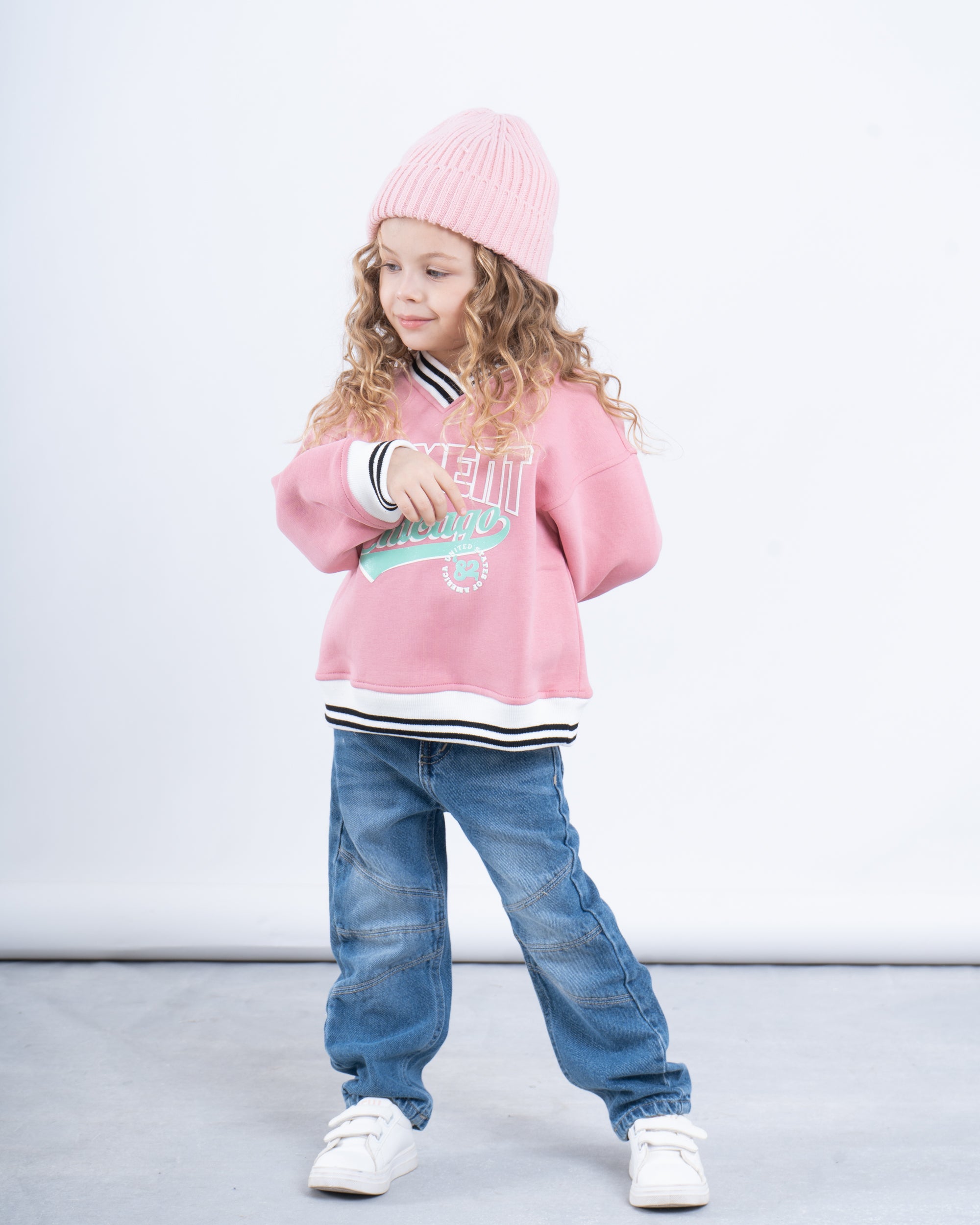Add a pop of sporty charm to their wardrobe with this varsity graphic sweatshirt. Designed with a relaxed, oversized fit, bold graphic lettering, and contrast stripe details, it’s the perfect mix of comfort and style. Crafted from soft fabric, this sweatshirt keeps your little one warm while looking effortlessly cool.