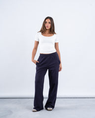 These wide-leg cotton pants offer a blend of comfort and relaxed style, perfect for any casual setting.