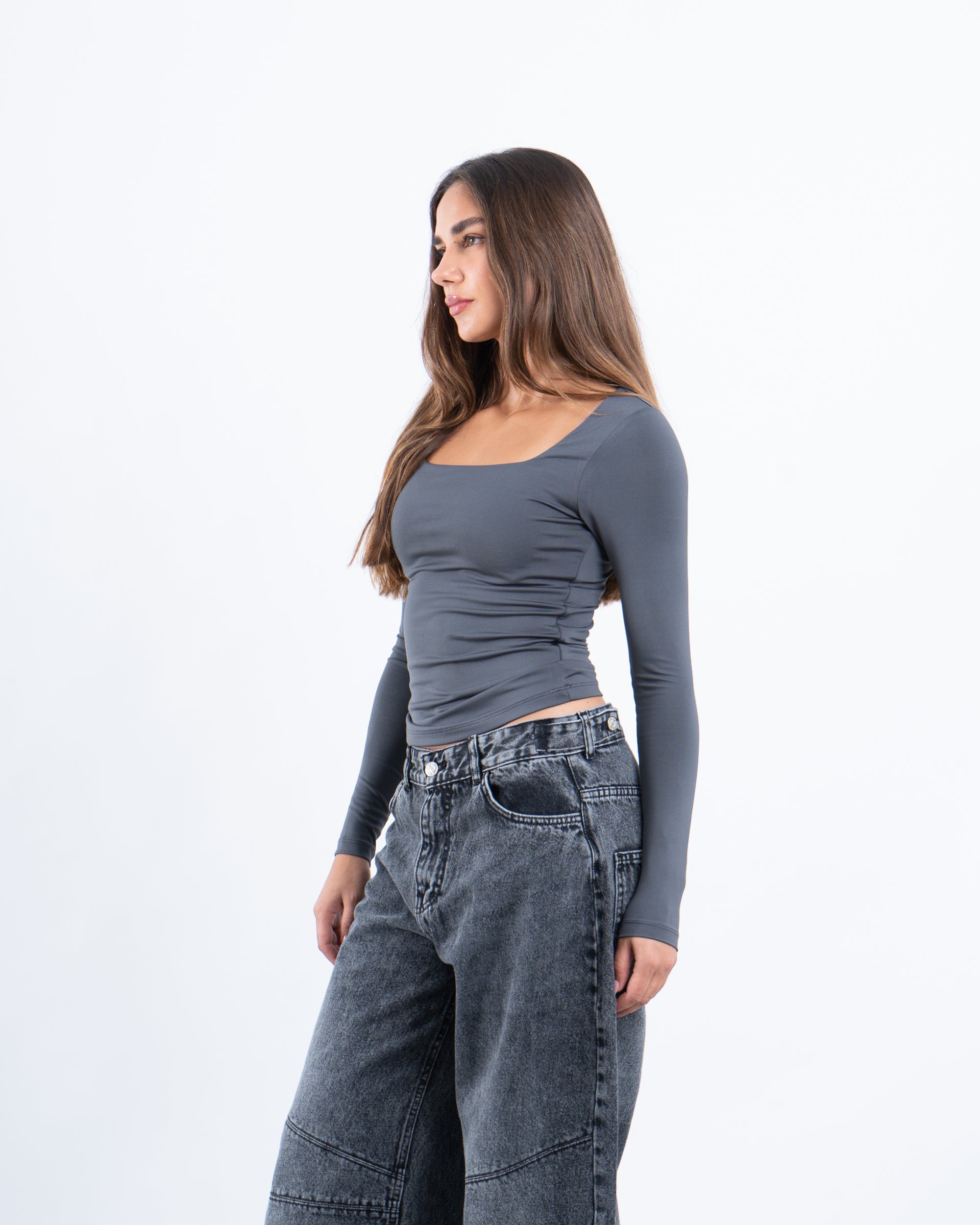 Elegantly designed with a modern square neckline, this top is a stylish essential for any wardrobe.