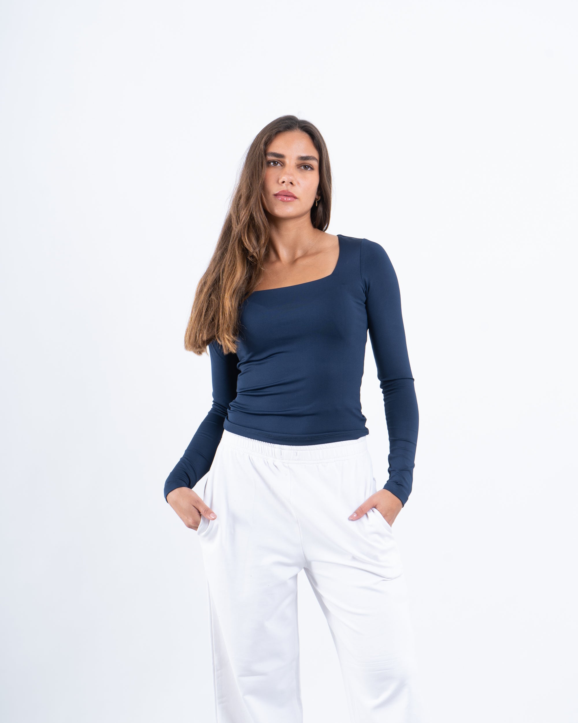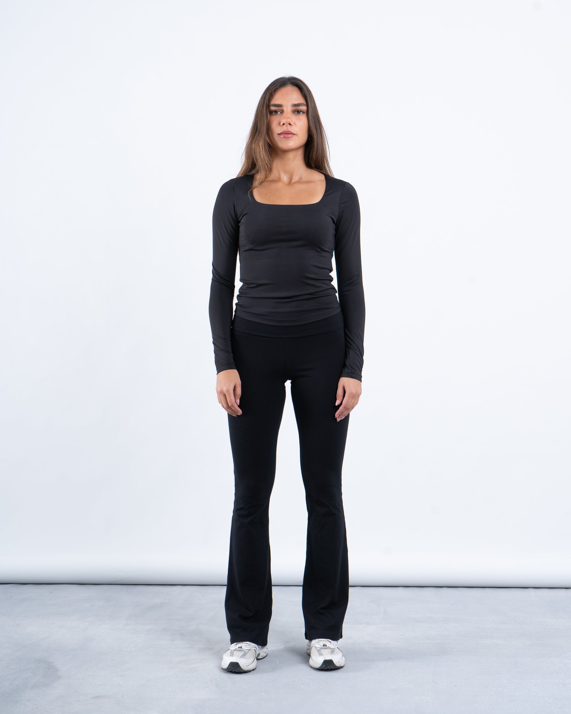 • Fit: Fitted silhouette with a flattering square neck and long sleeves, enhancing the neckline and shape.