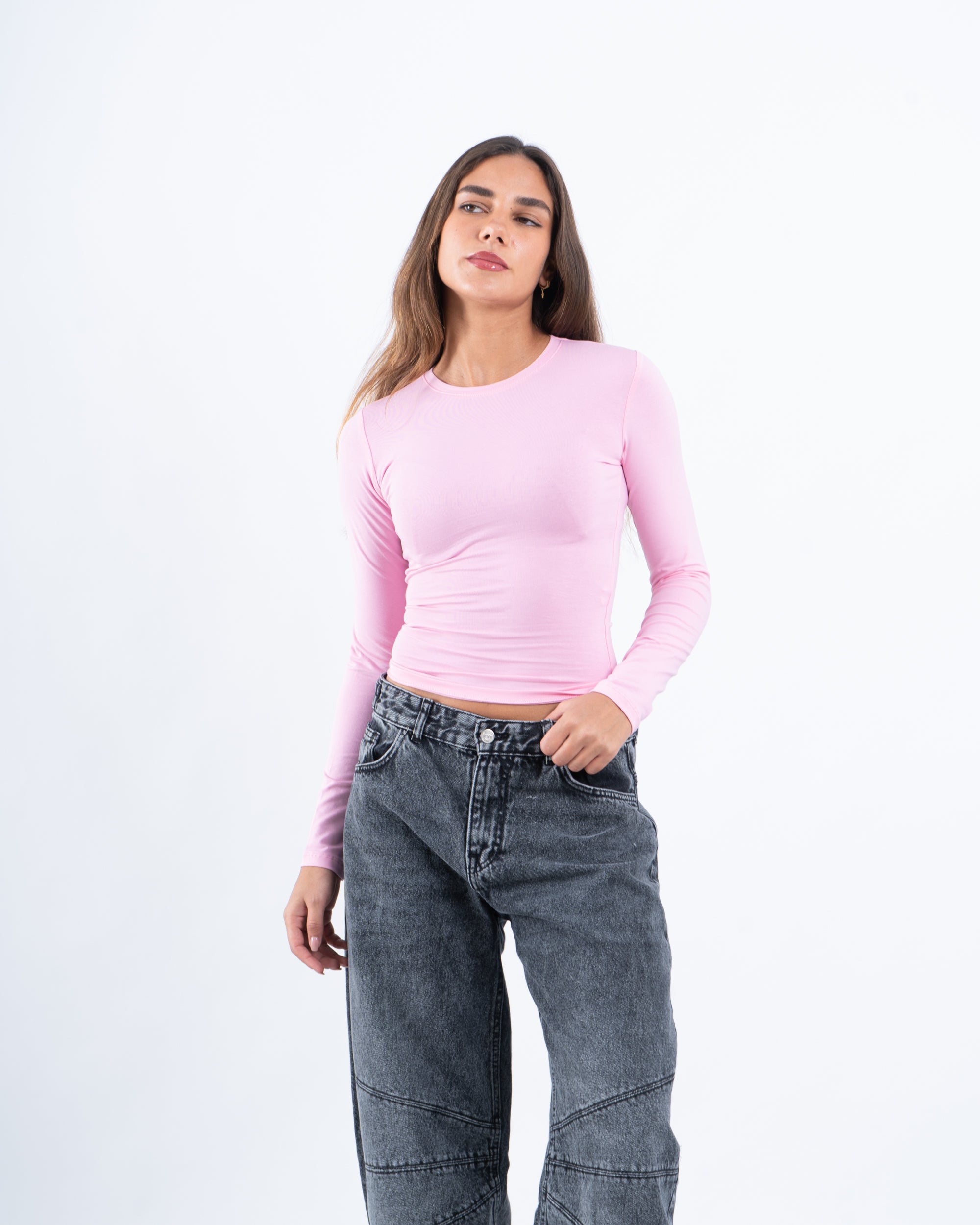 • Fit: Slim fit with a classic crew neckline and long sleeves, offering a clean, streamlined look.