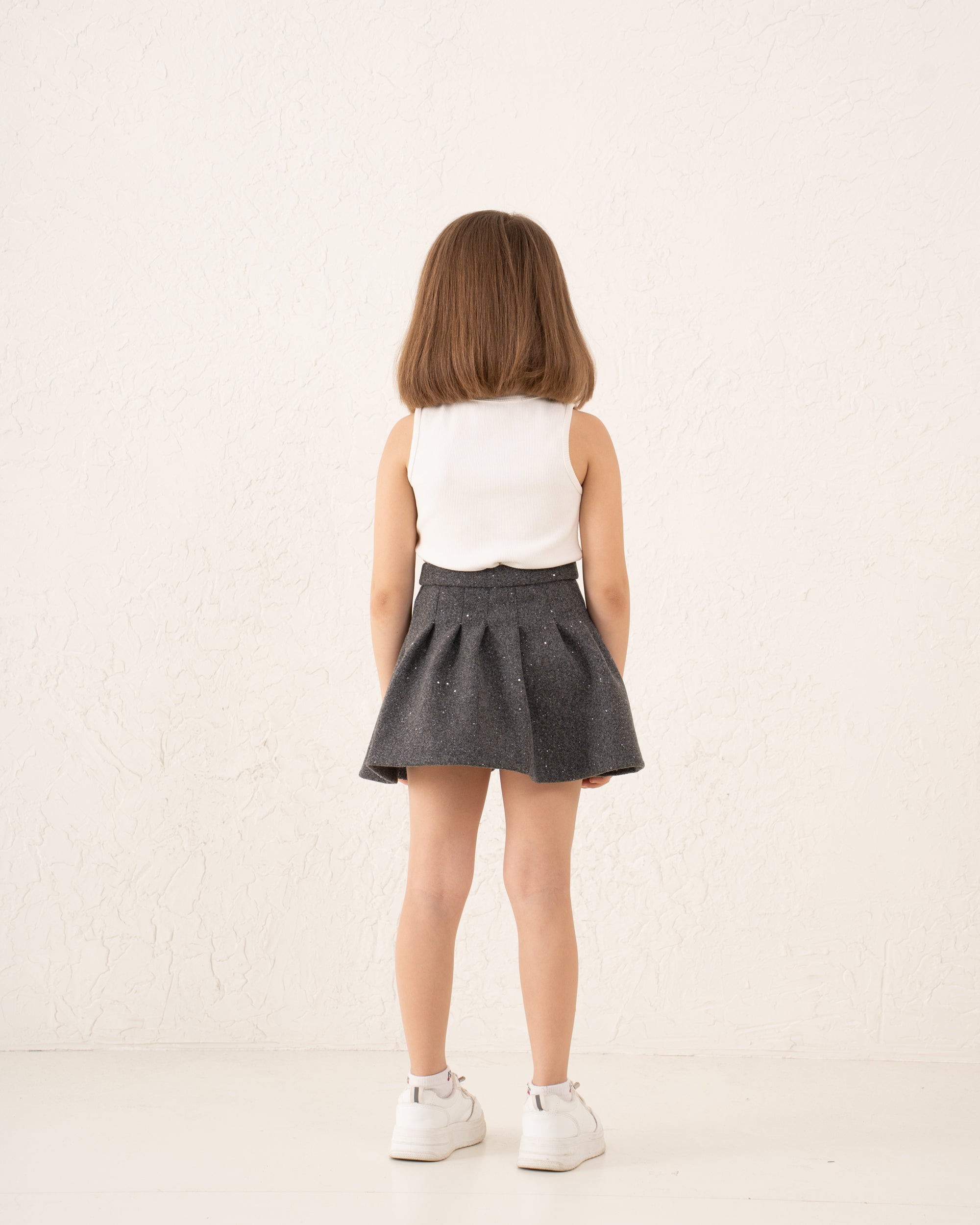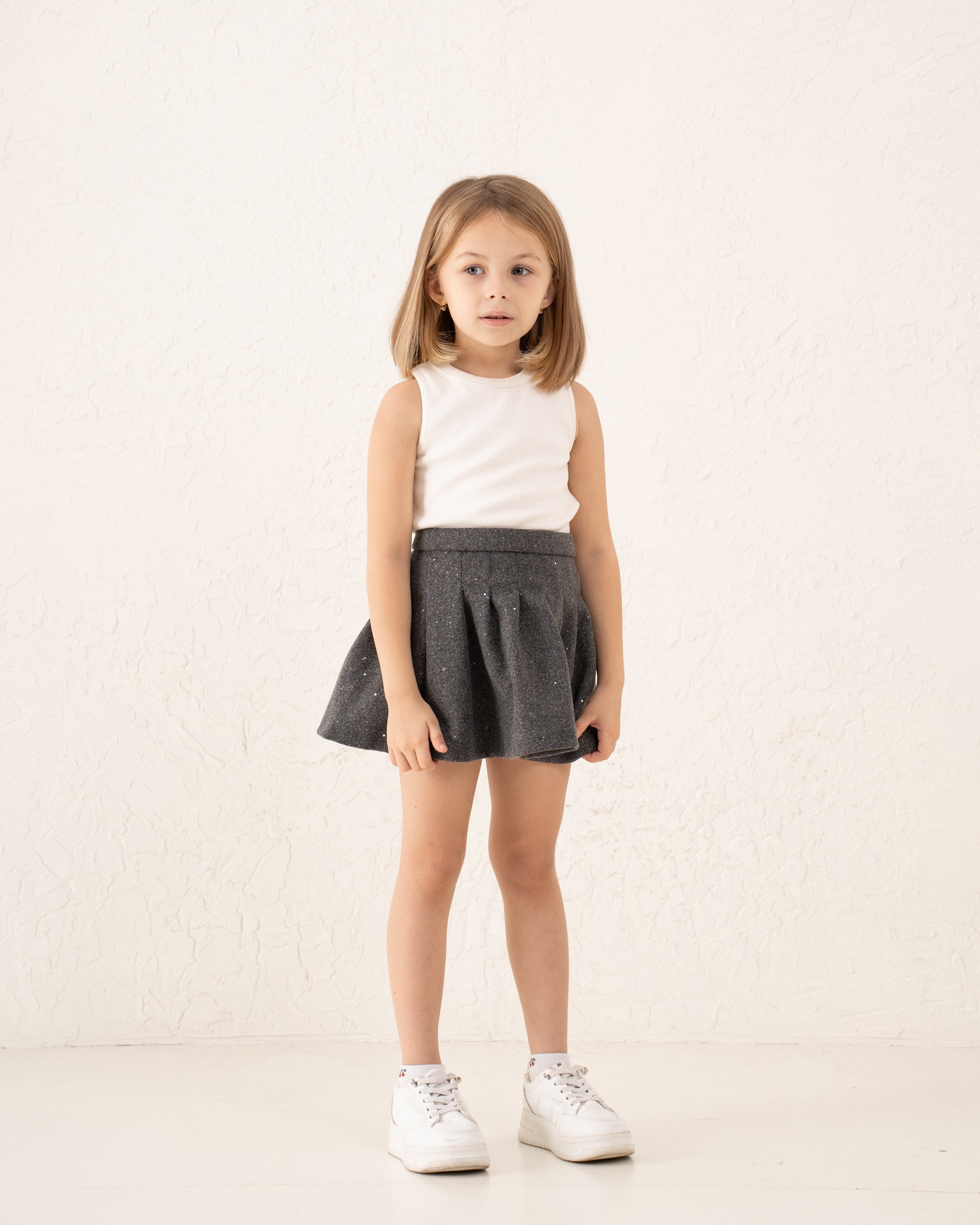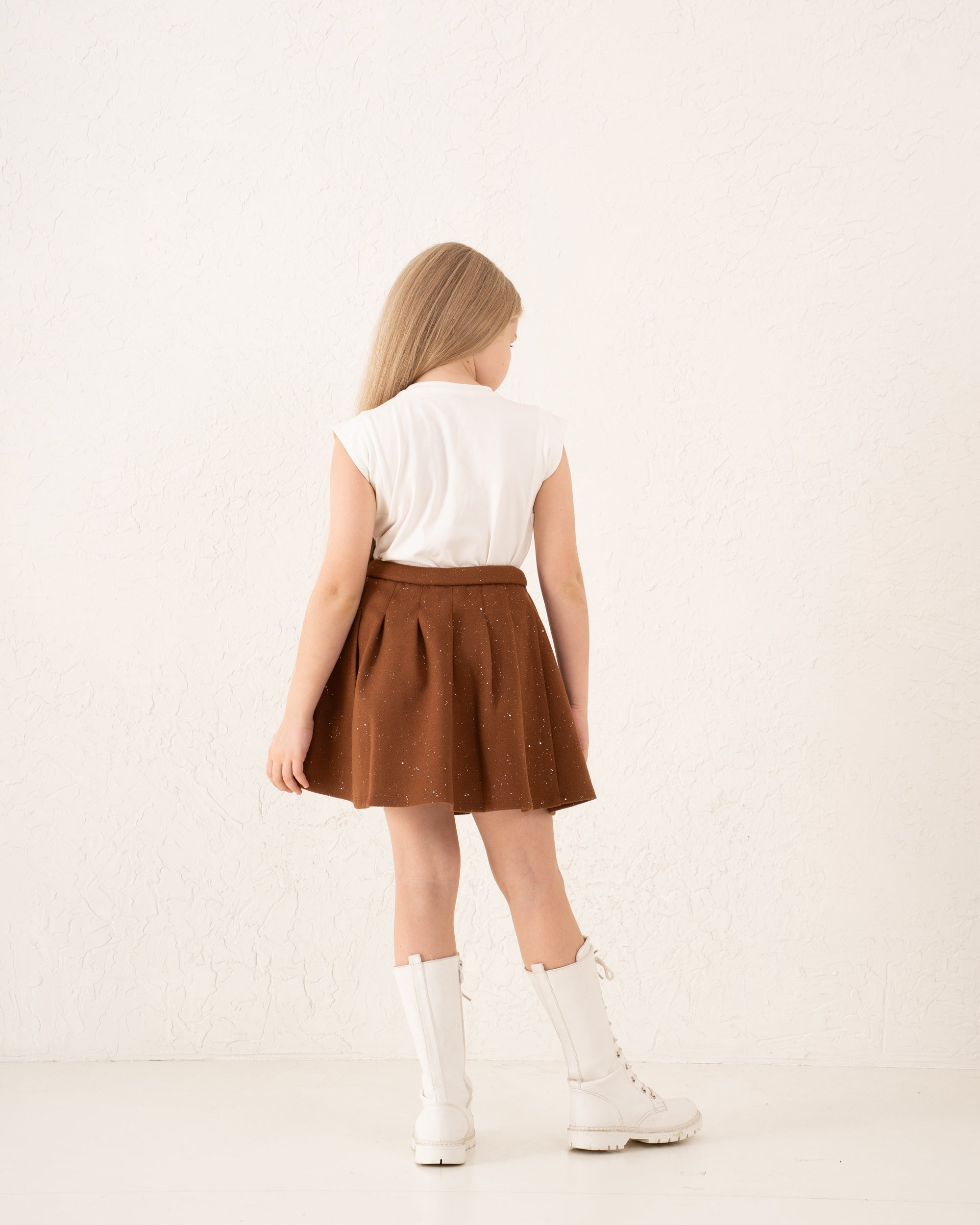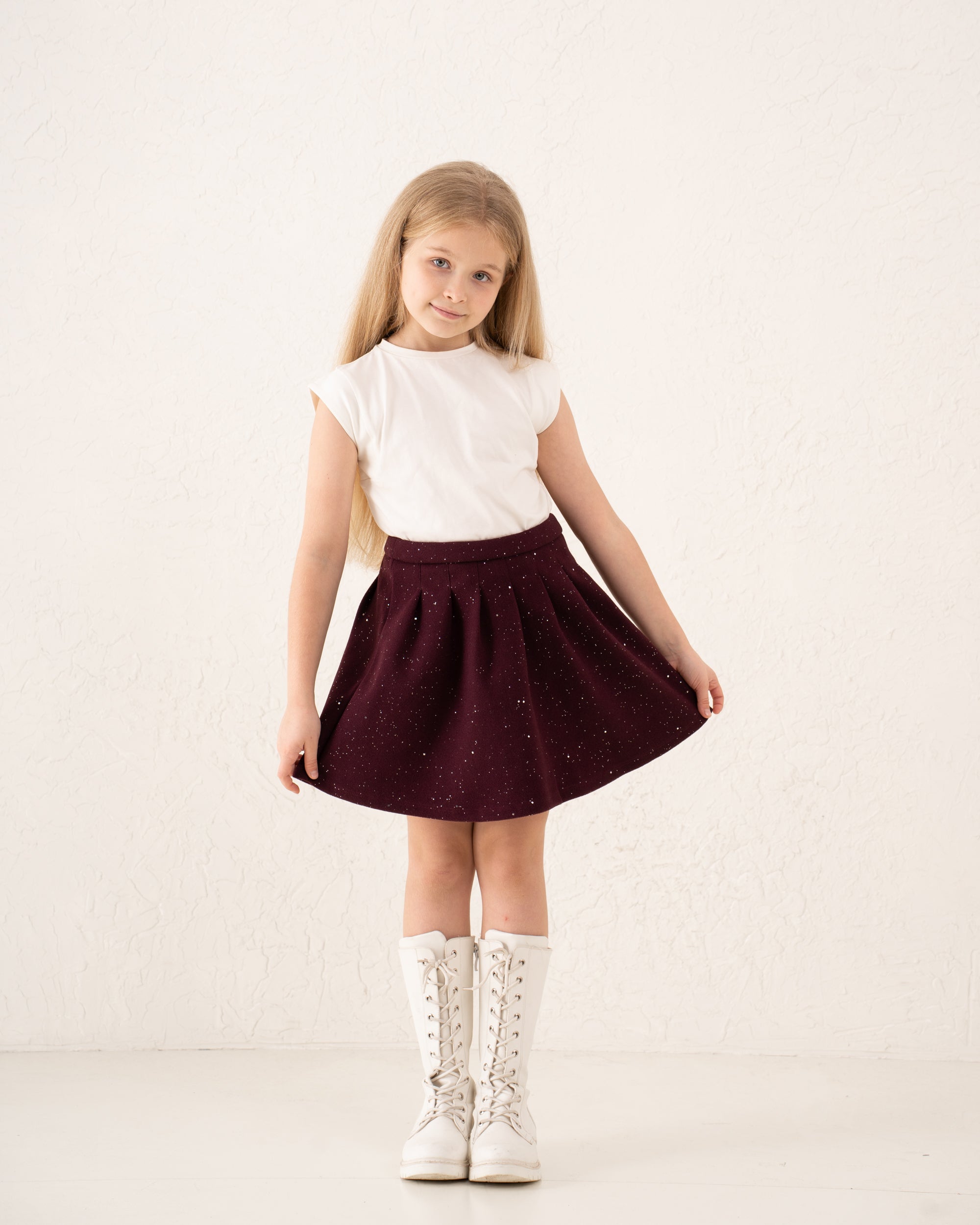 A chic skirt designed in a wool-like fabric with delicate sparkle for a polished, festive finish. Easy to style alone or as part of a coordinated set.