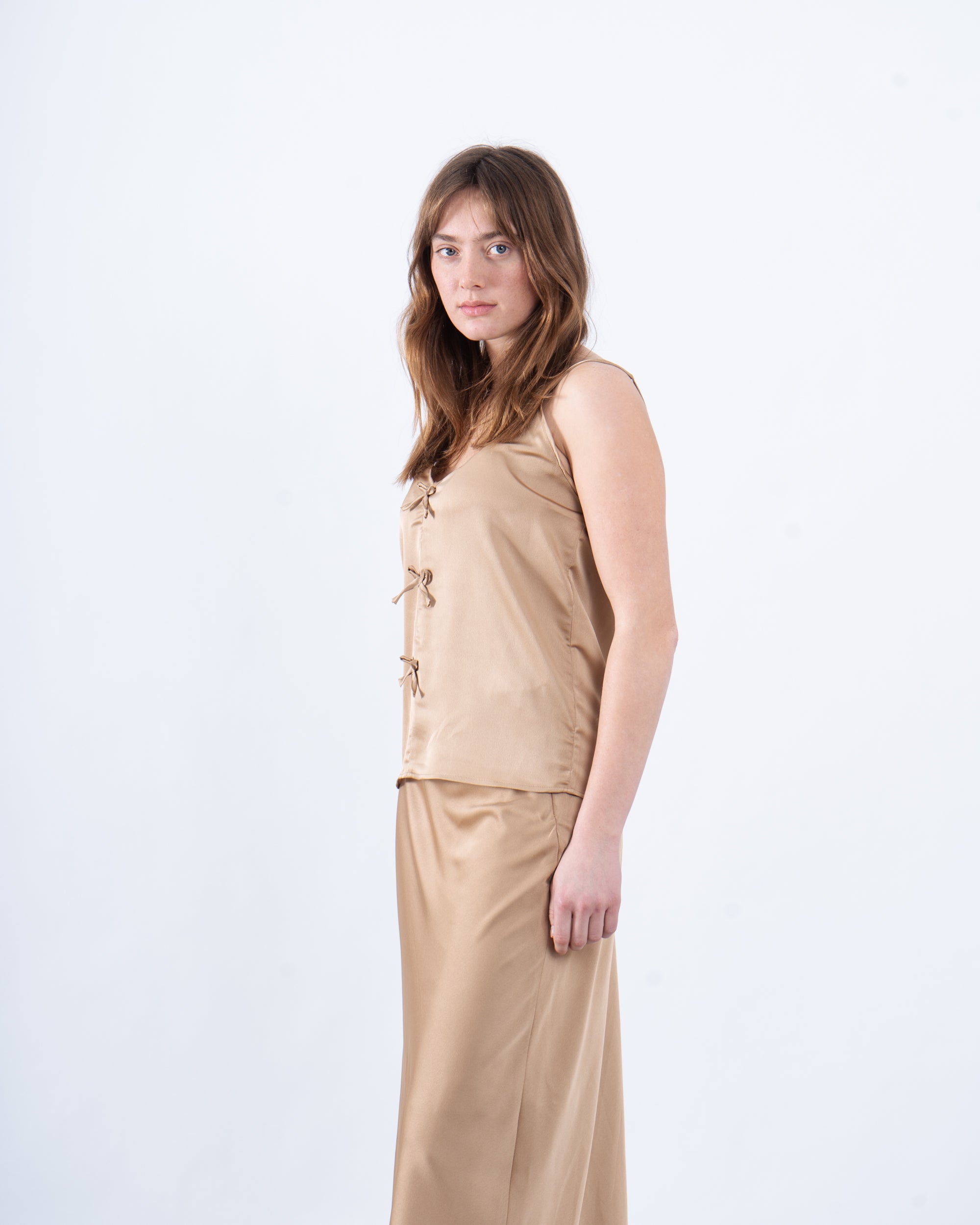 A delicate and chic separate, this cami top features subtle bow accents for an elegant touch.
