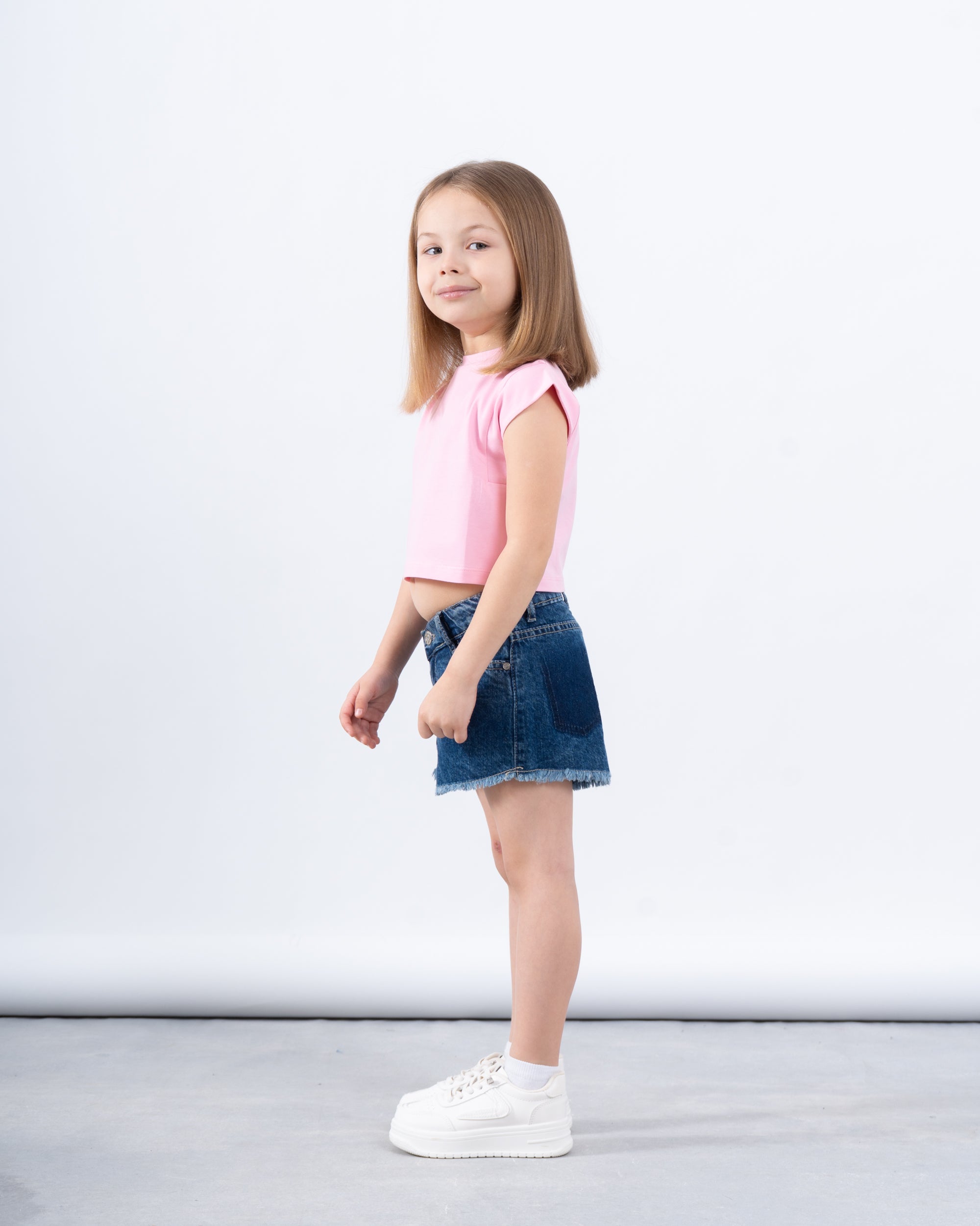 A clean and simple essential with a modern edge. This cropped top features structured cap sleeves and a sleek finish—perfect for everyday styling with shorts, skirts, or cargos.