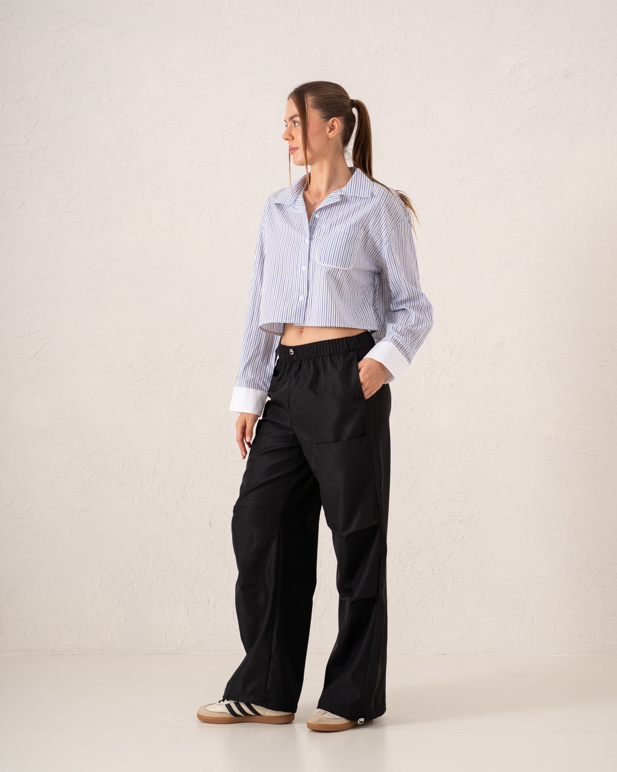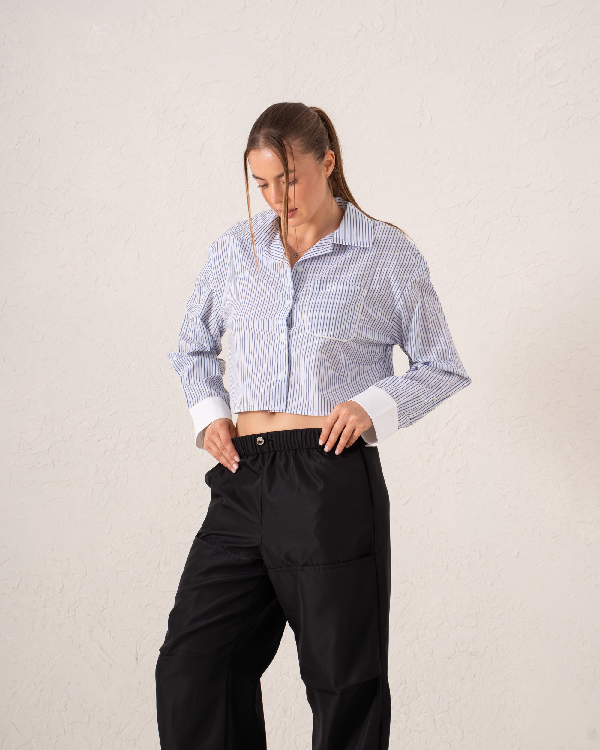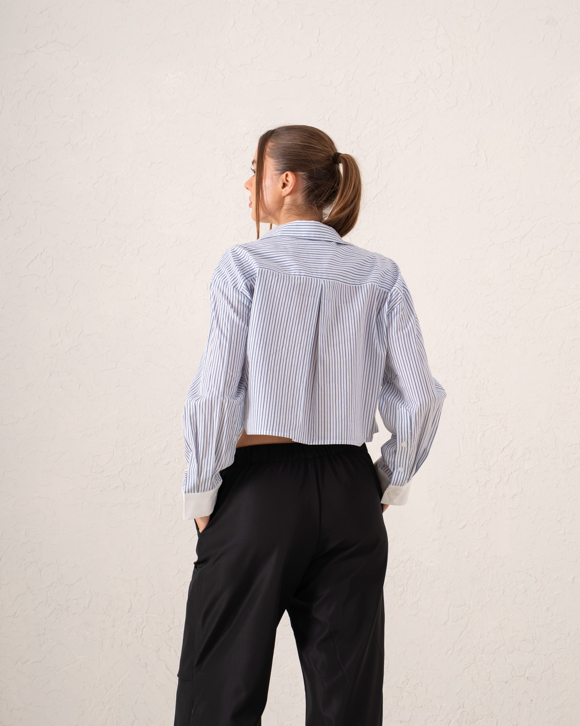 A modern take on the classic shirt — cropped and slightly boxy for a fresh, effortless look. Designed with fine pinstripes, crisp cuffs, and a chest pocket detail, it’s the perfect mix of tailored and relaxed.