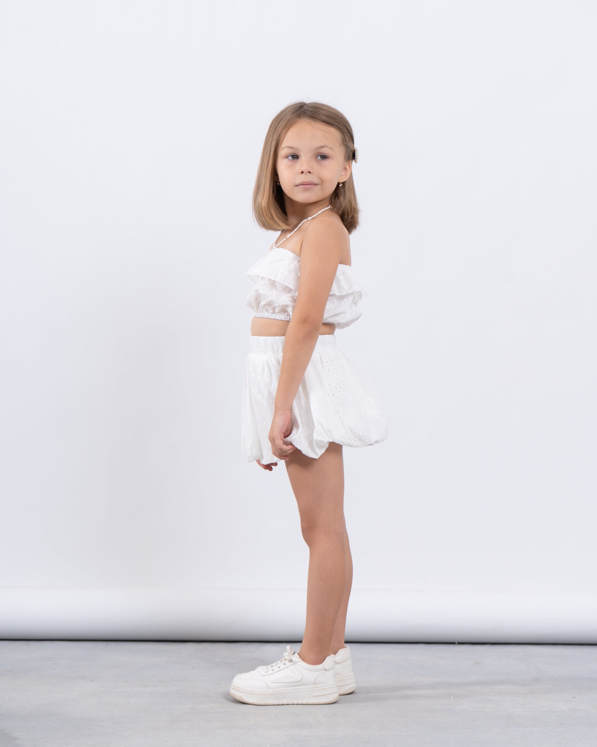 A breezy broderie skirt with a twirl-worthy silhouette, ideal for summer adventures.