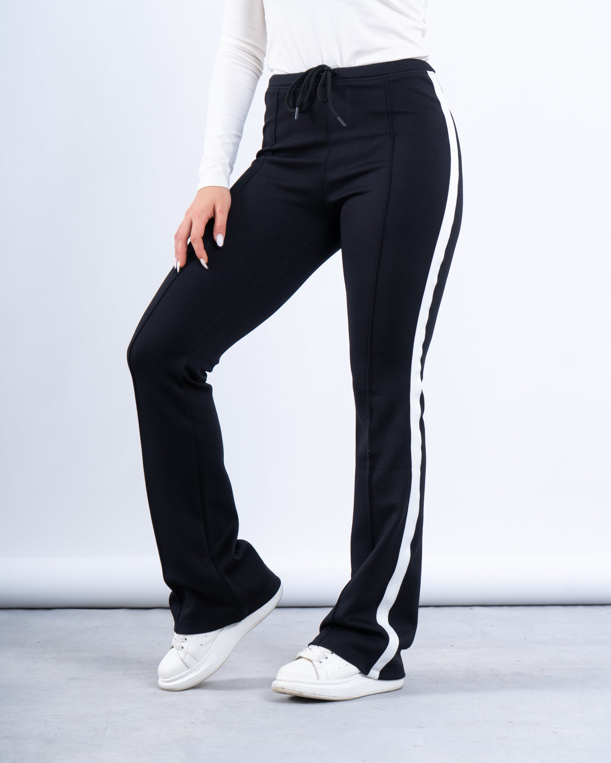 Effortlessly chic and comfortable, these stripe flare pants bring a sporty yet sleek touch to your casual wardrobe. Featuring a high-waisted fit and bold contrast side stripes, they elongate the silhouette while providing ultimate comfort. Crafted from a soft, stretchy fabric for a flattering, body-hugging fit.