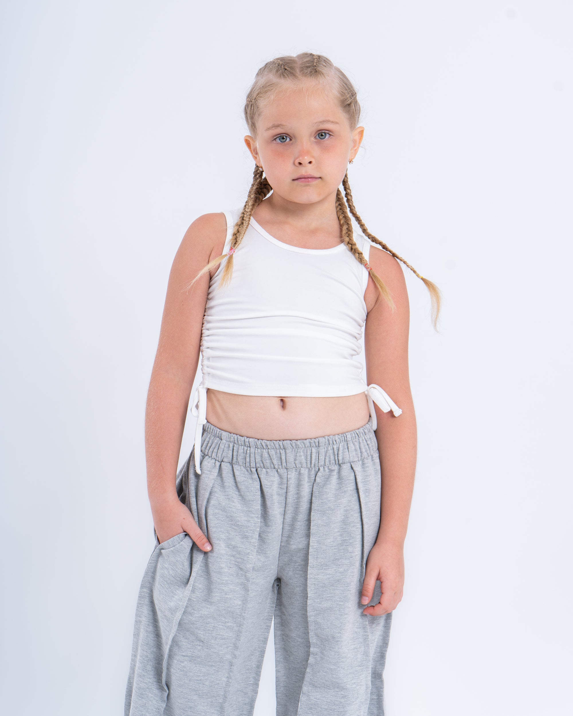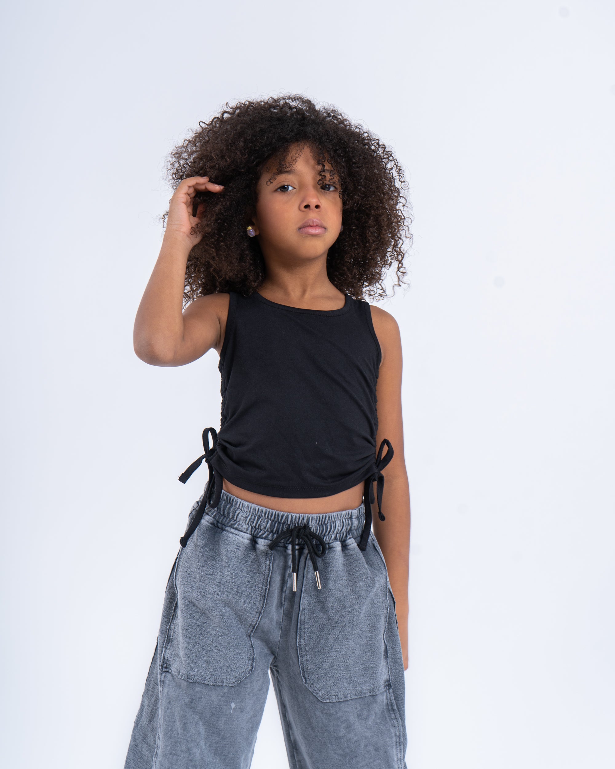 This drawstring crop top is a versatile piece that allows you to experiment with different looks, making it a fun and fashionable addition to any girl’s wardrobe.