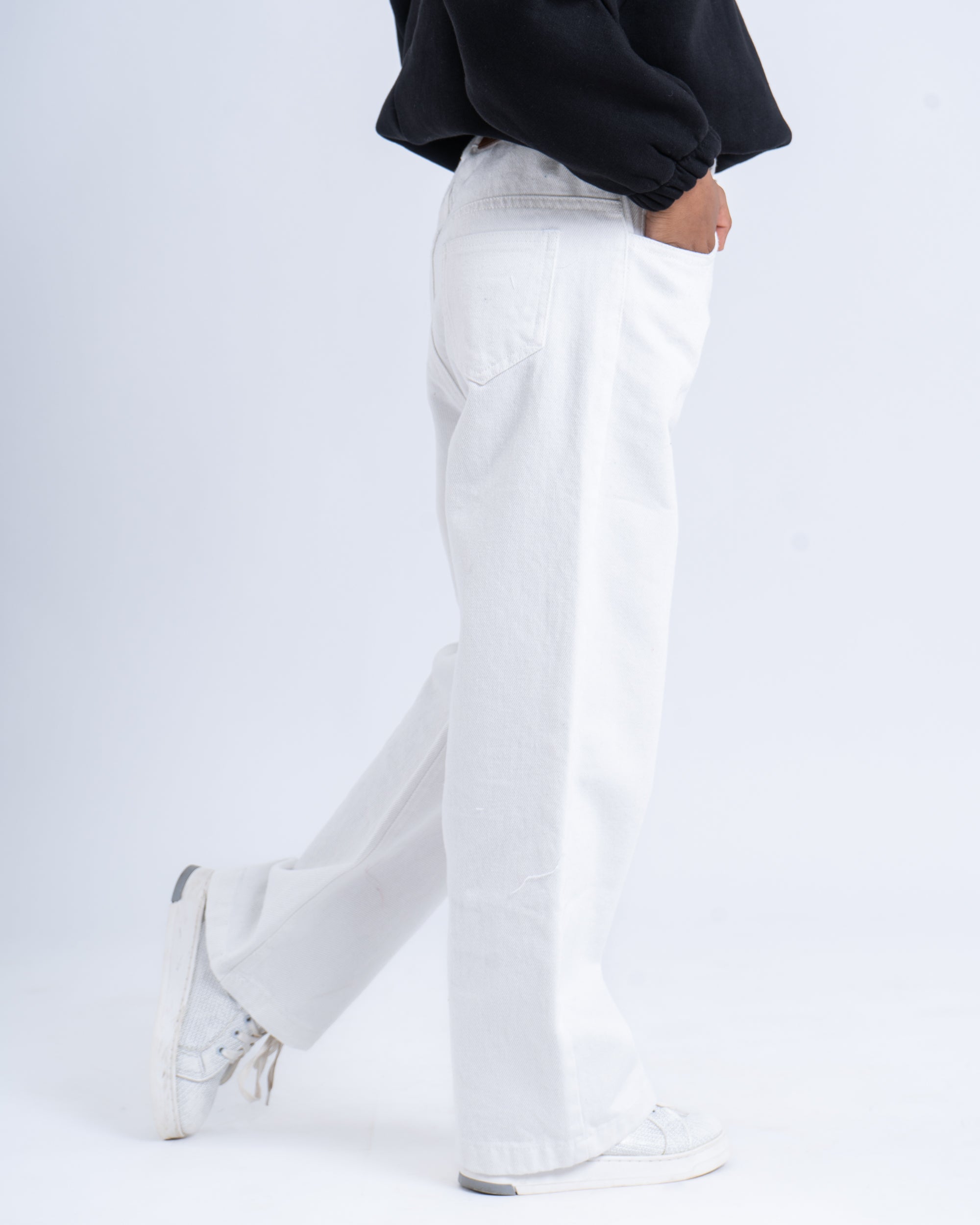 These classic wide-leg denim pants combine style and comfort with a modern silhouette. Featuring a high-waisted design, these pants offer a relaxed, oversized fit that flows beautifully with movement. Crafted from durable cotton denim, they provide both structure and flexibility, making them perfect for all-day wear. The clean solid color adds a fresh, versatile touch that pairs effortlessly with any top or jacket for a laid-back yet chic outfit.