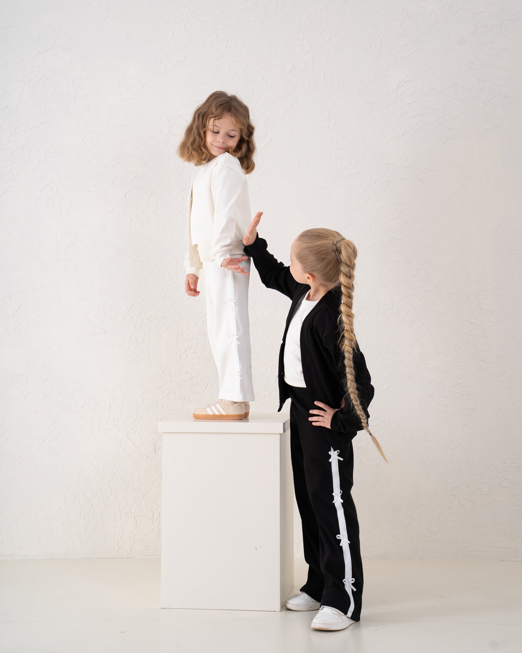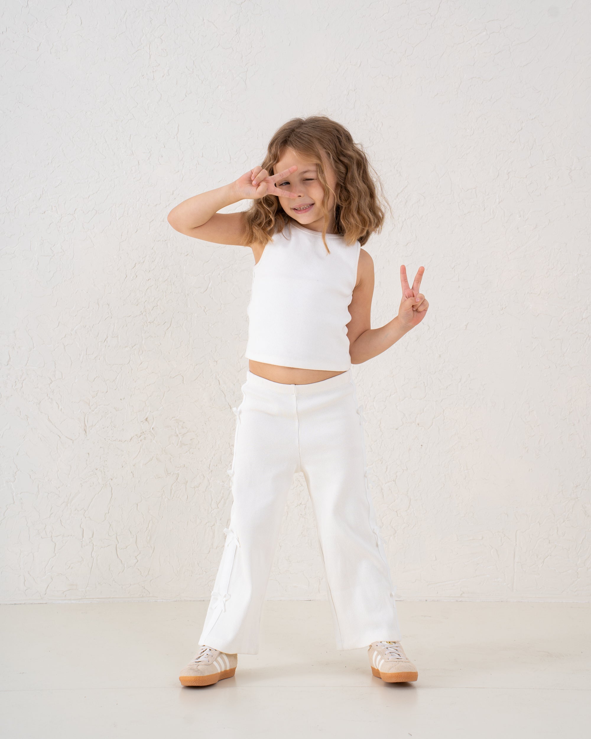 Comfortable ribbed wide-leg pants adorned with bow trims down the sides. A stylish statement piece that brings...