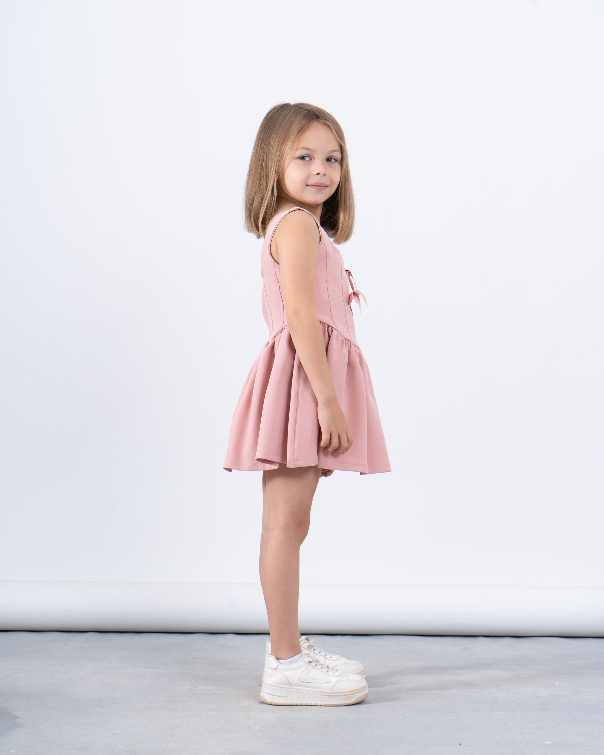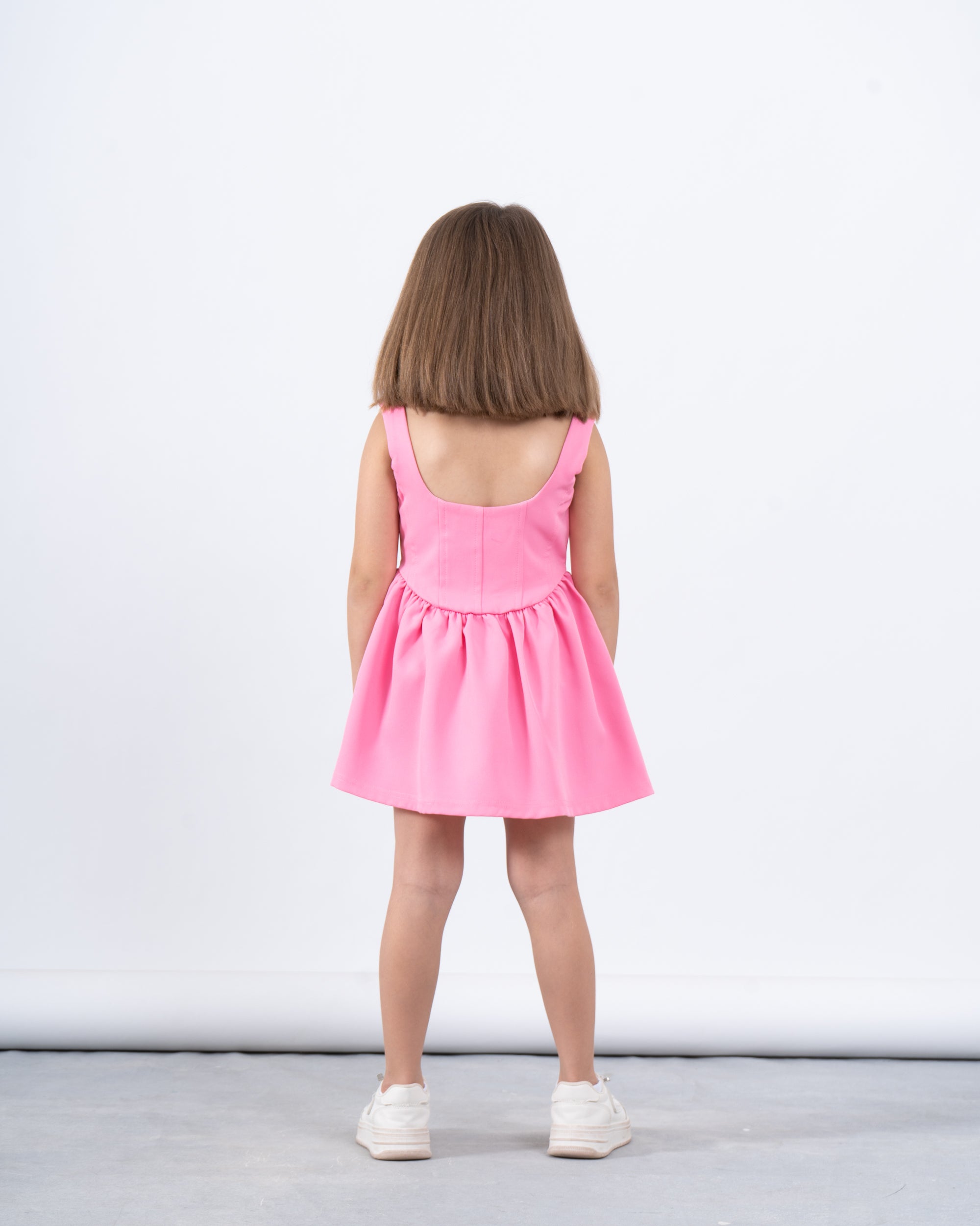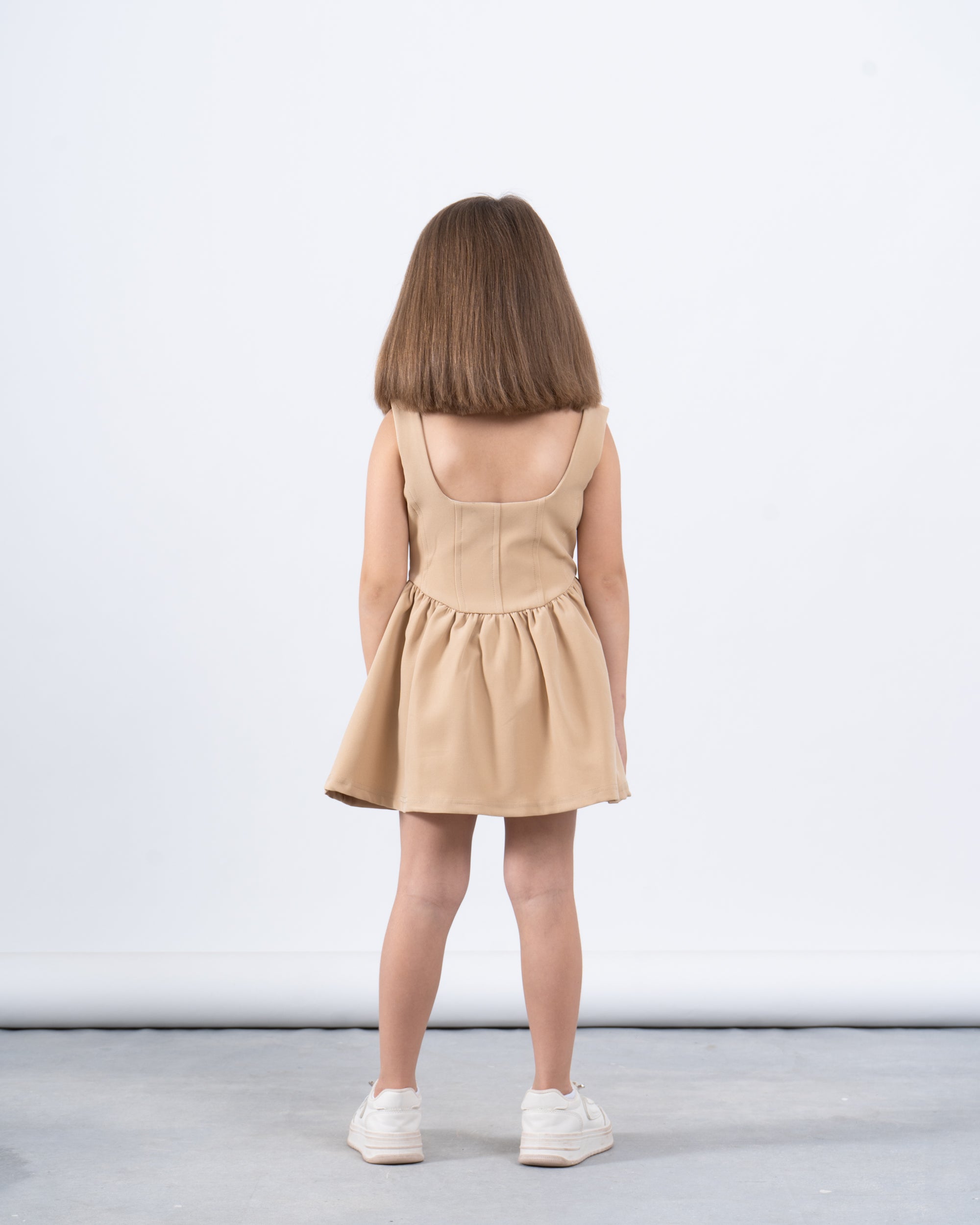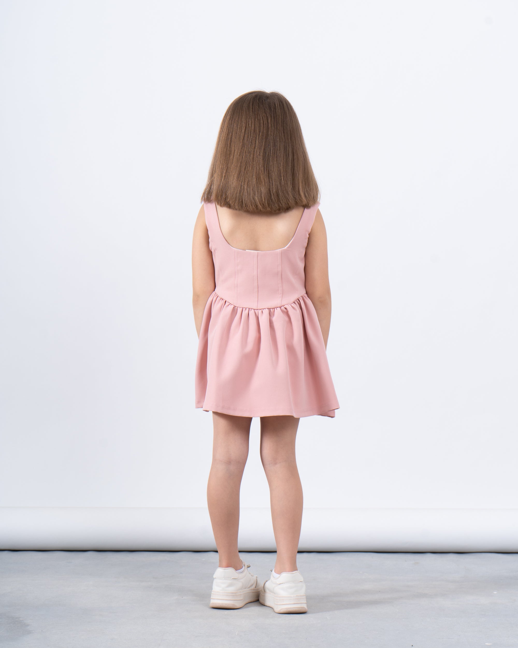 A playful yet polished dress designed for little fashionistas. Featuring a soft corset-inspired bodice with delicate seams and a flared skirt, this piece combines charm with comfort for every occasion.