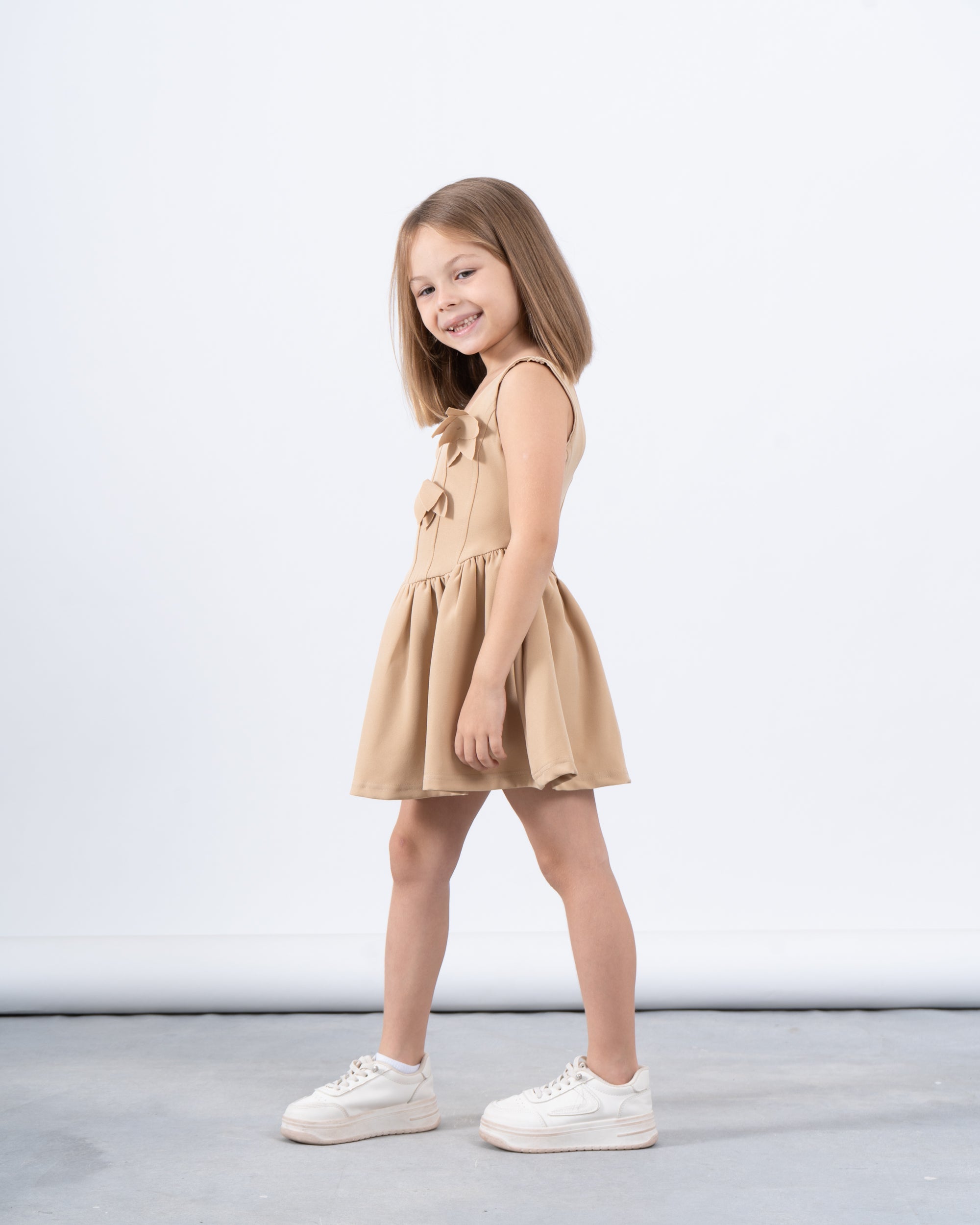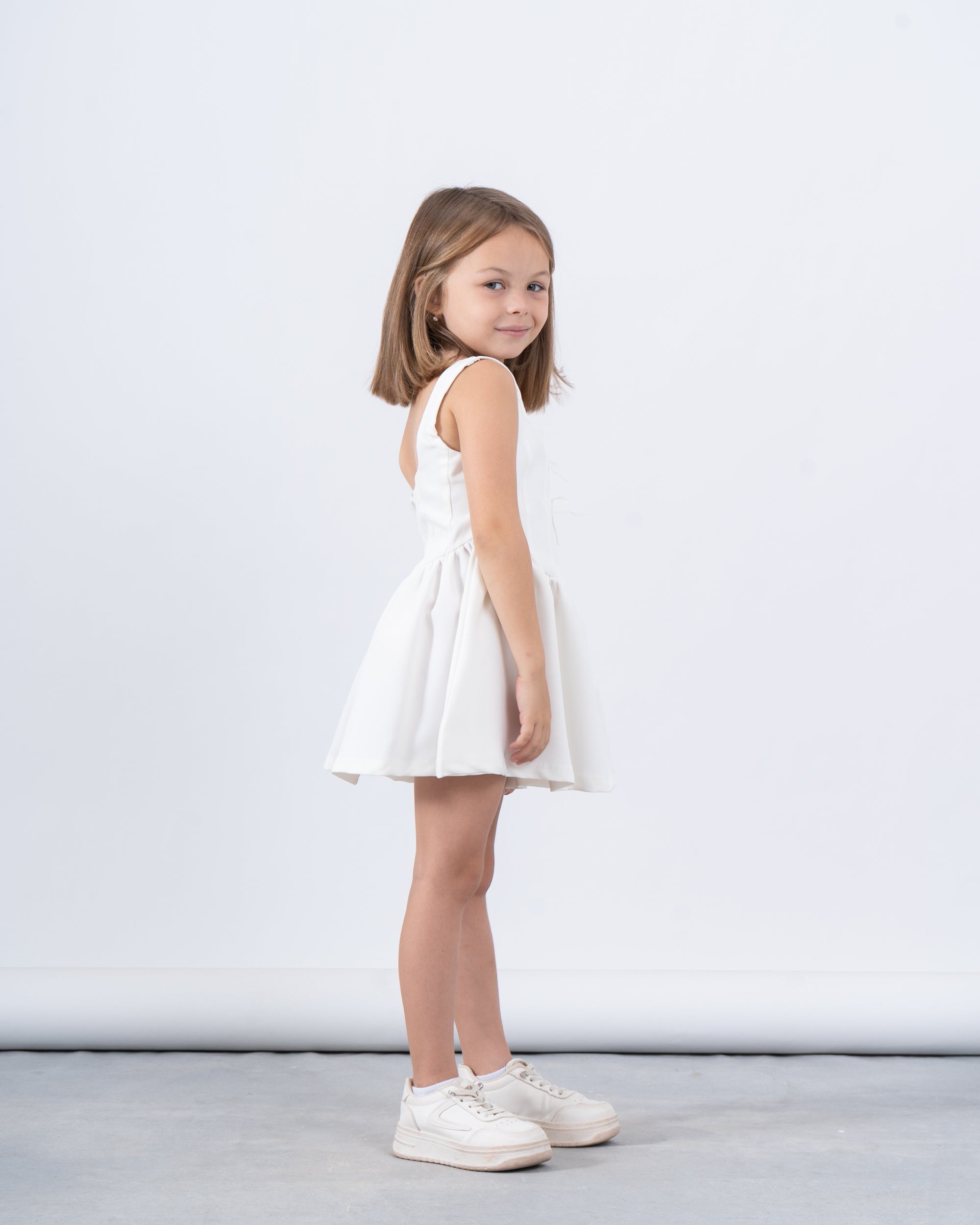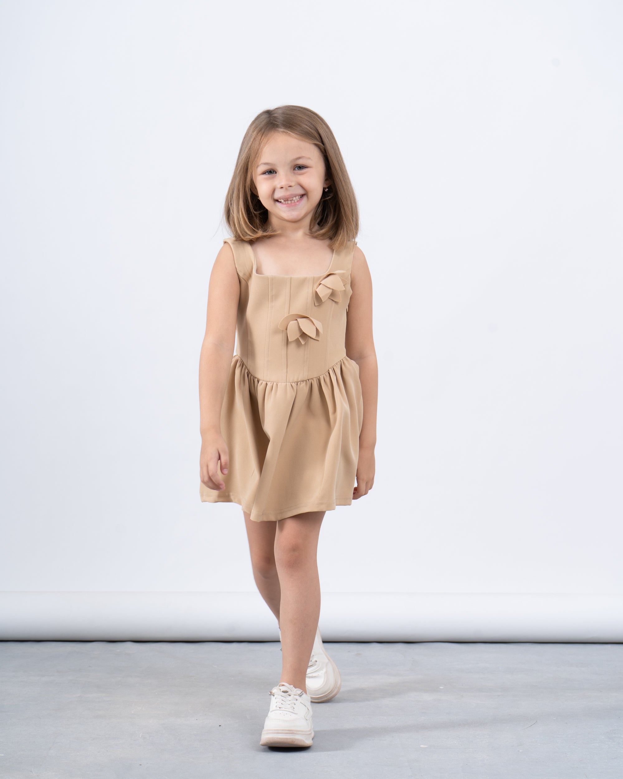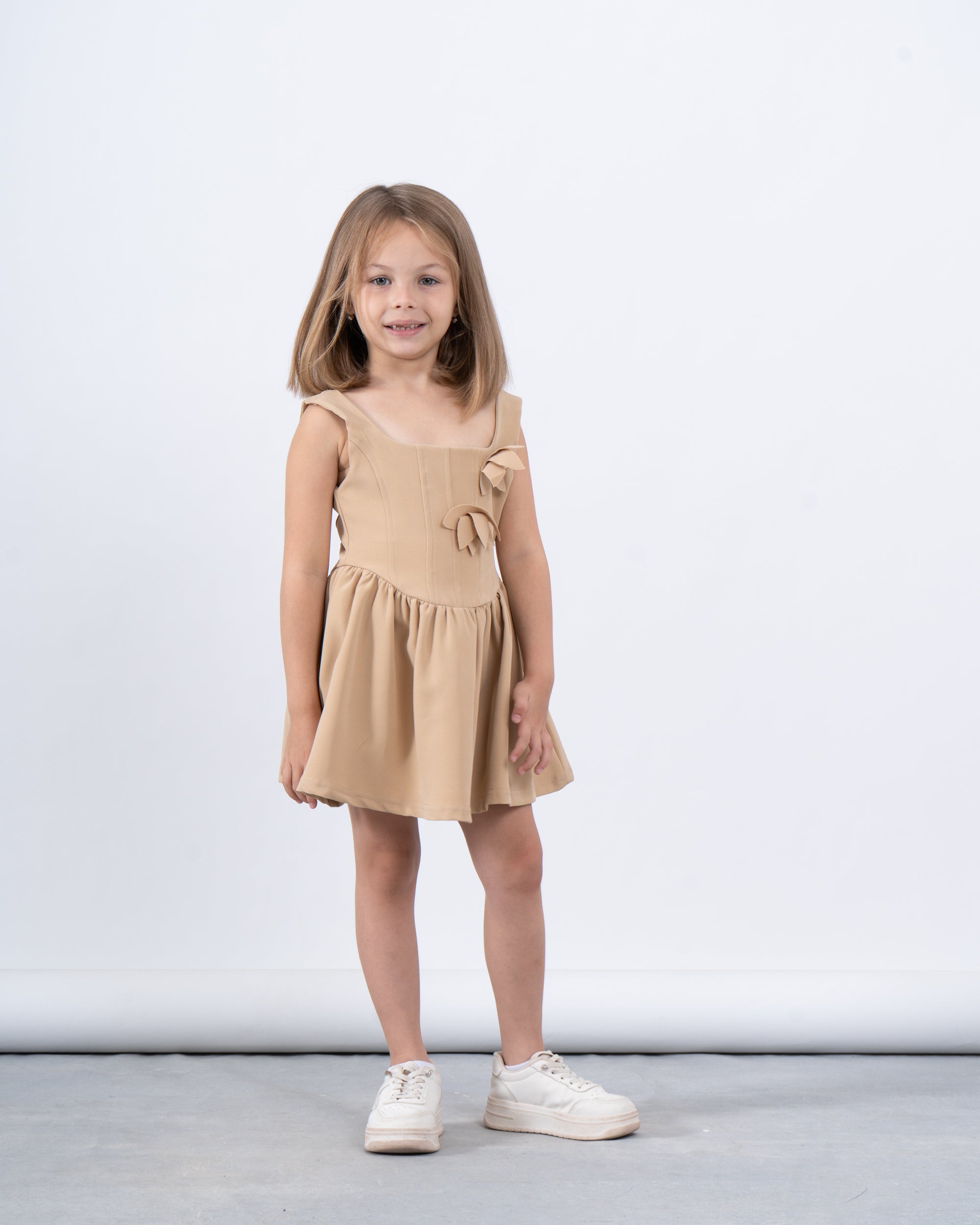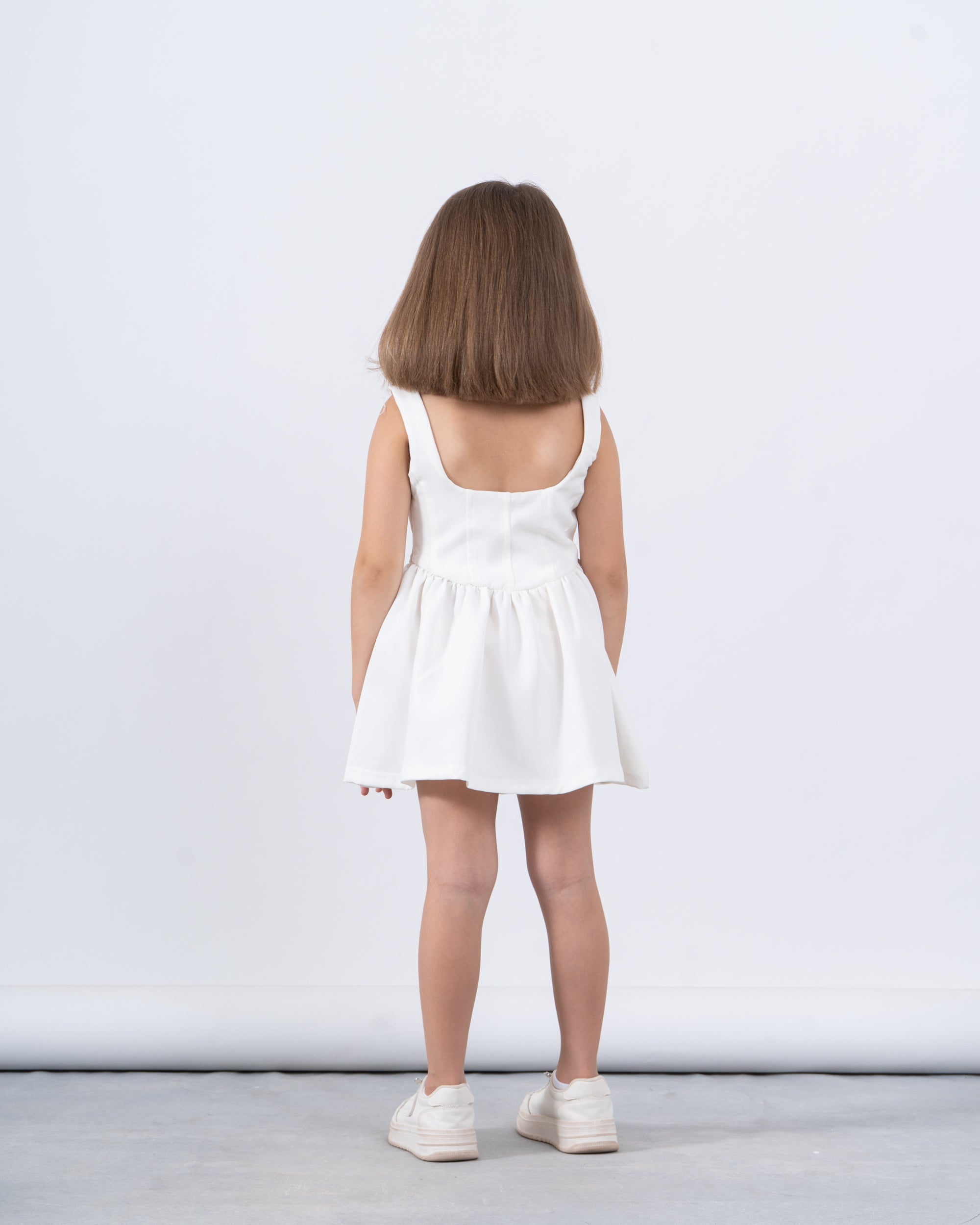 A playful yet polished dress designed for little fashionistas. Featuring a soft corset-inspired bodice with delicate seams and a flared skirt, this piece combines charm with comfort for every occasion.